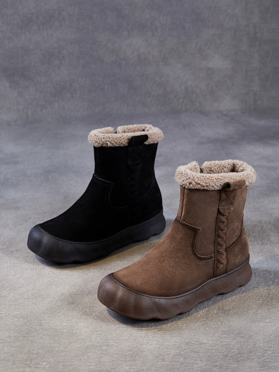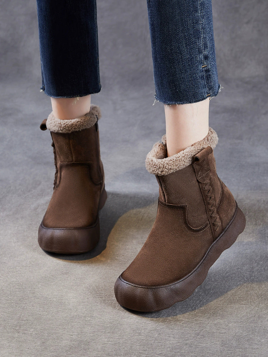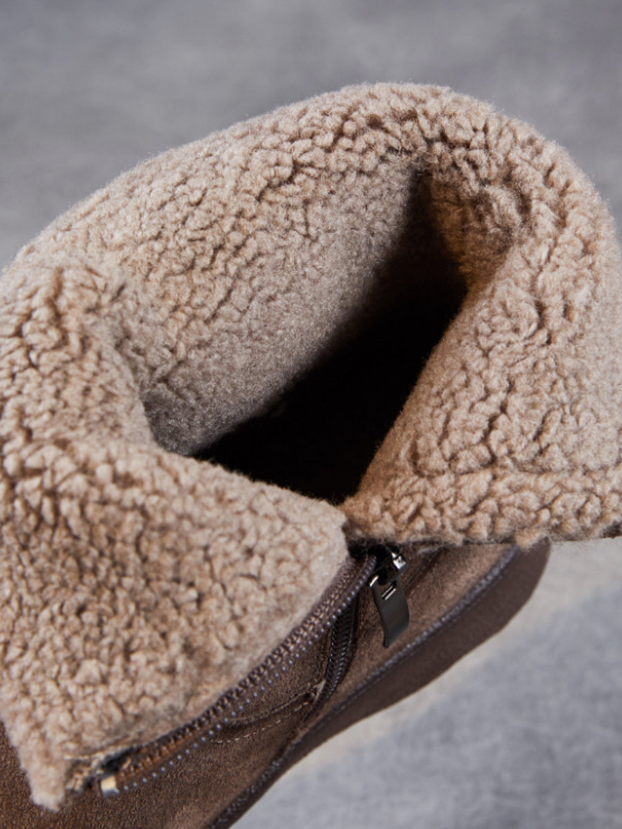 Botas de invierno vintage para mujer, de piel de ante con forro polar