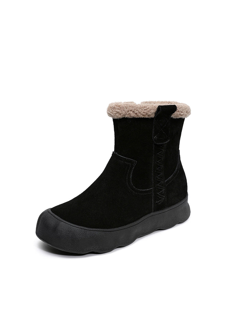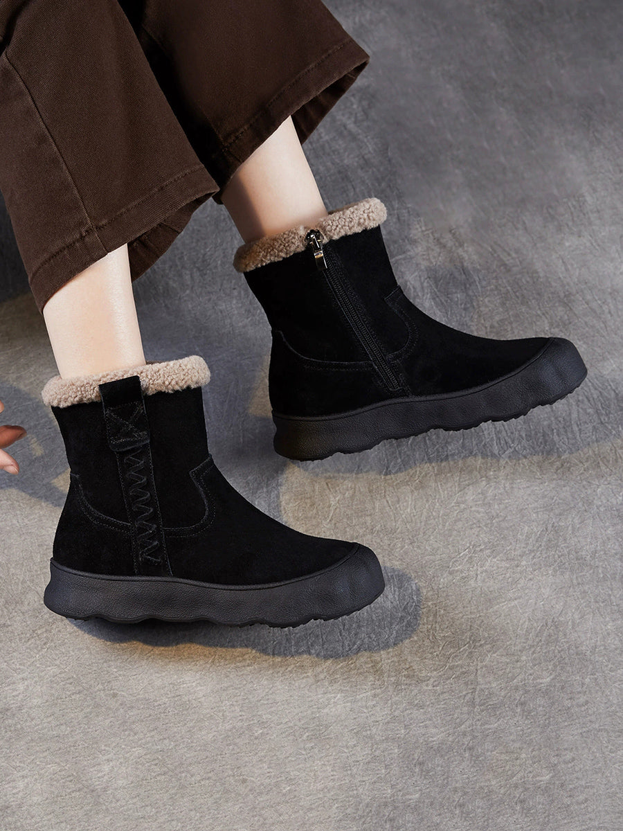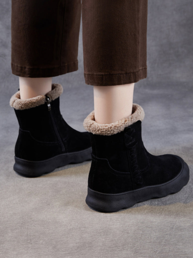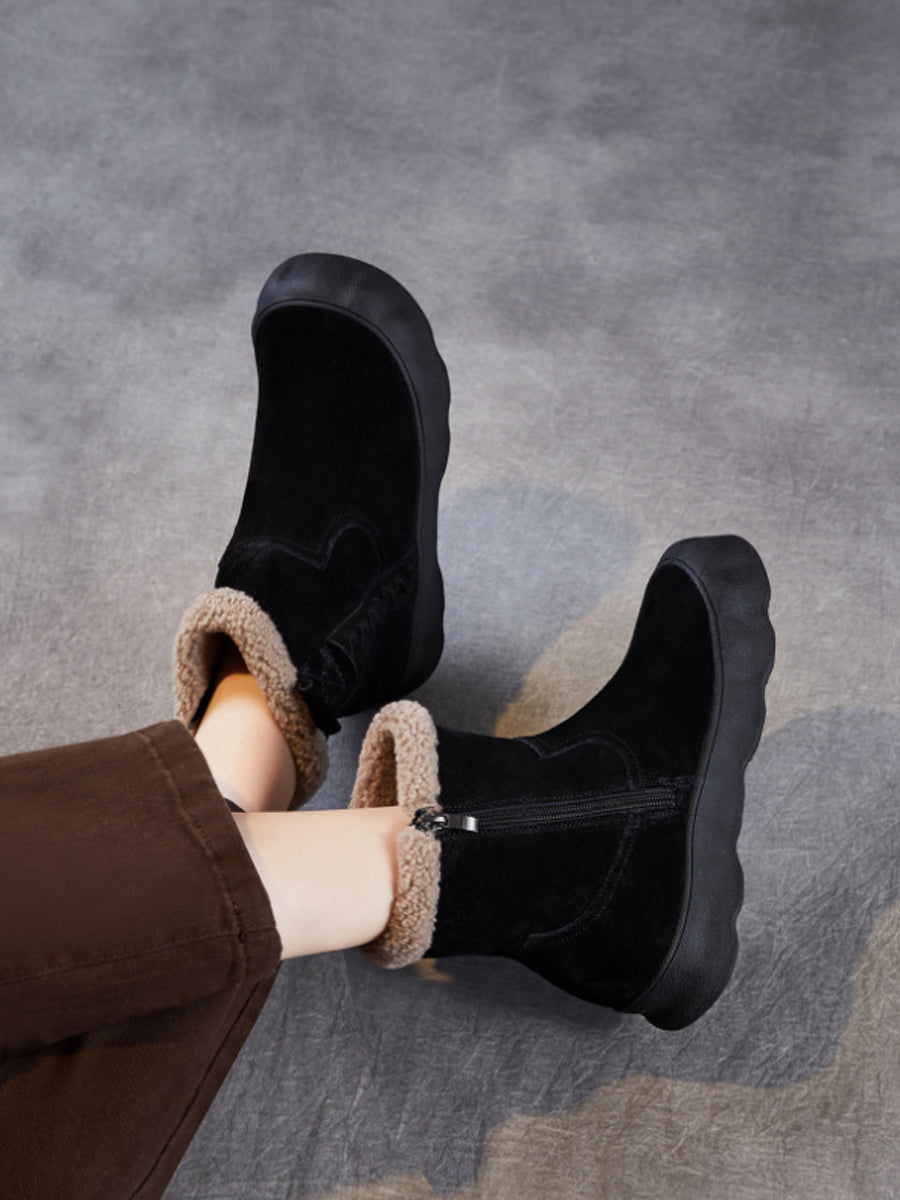 Botas de invierno vintage para mujer, de piel de ante con forro polar