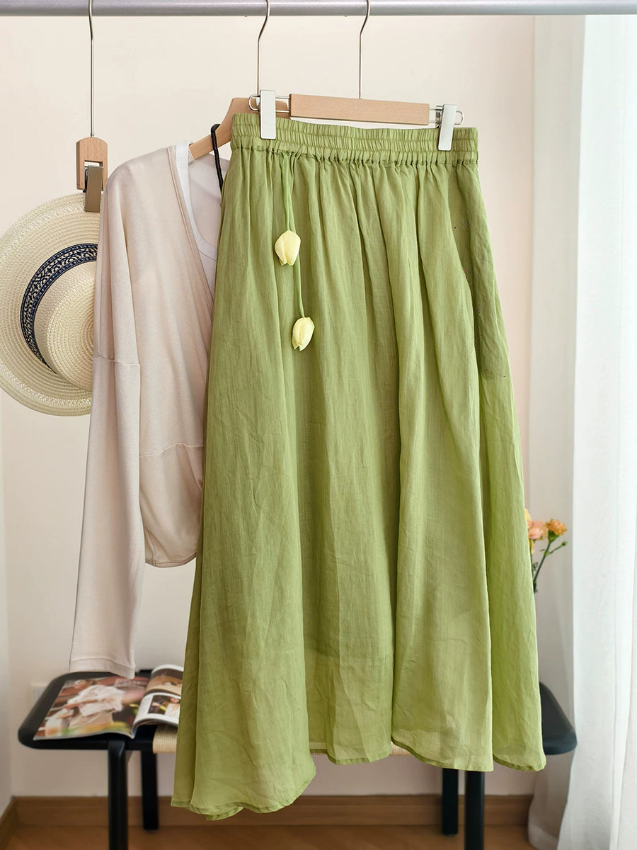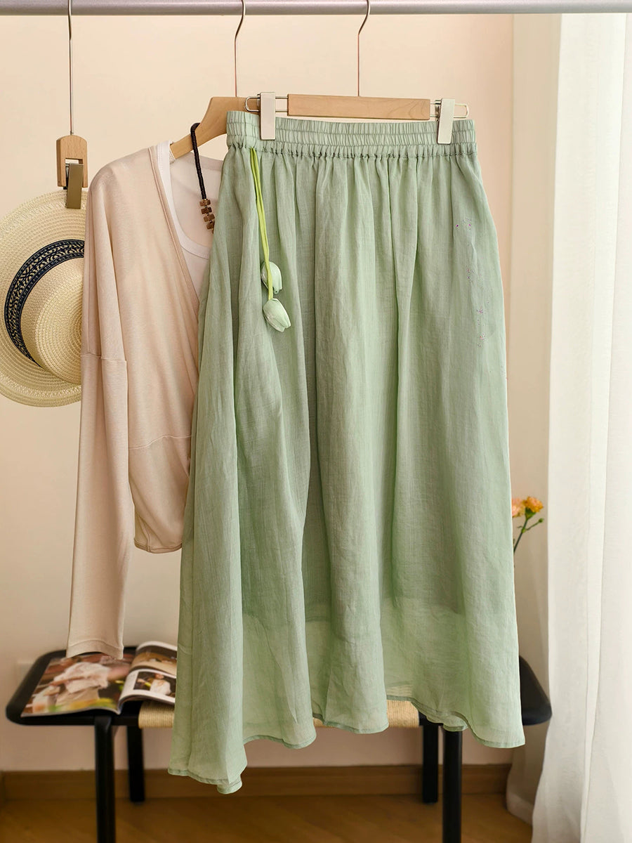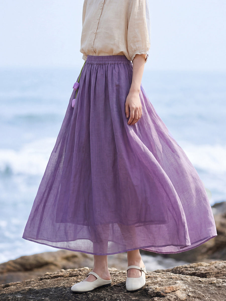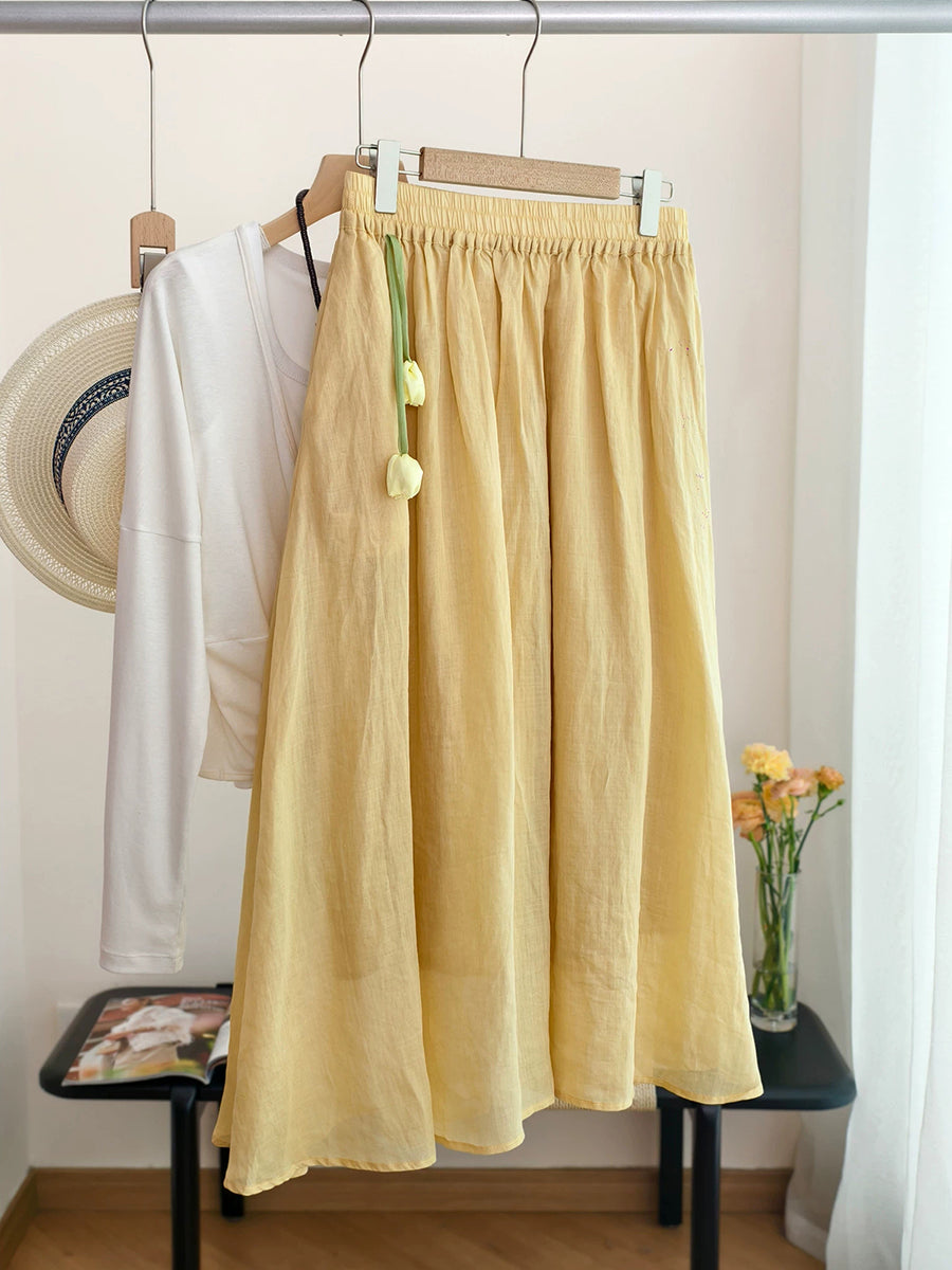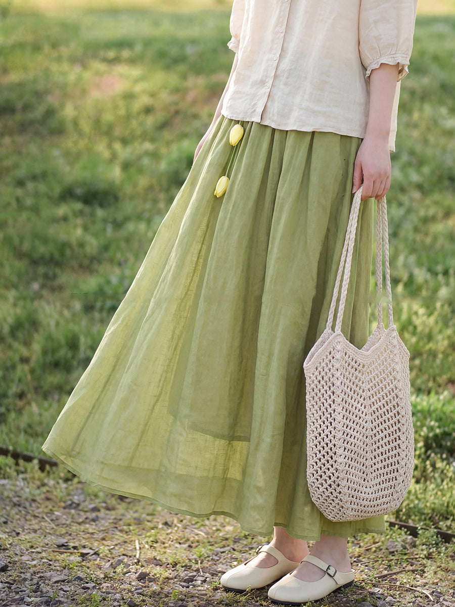 Falda de verano para mujer, estilo artístico, color liso, 100% ramio.