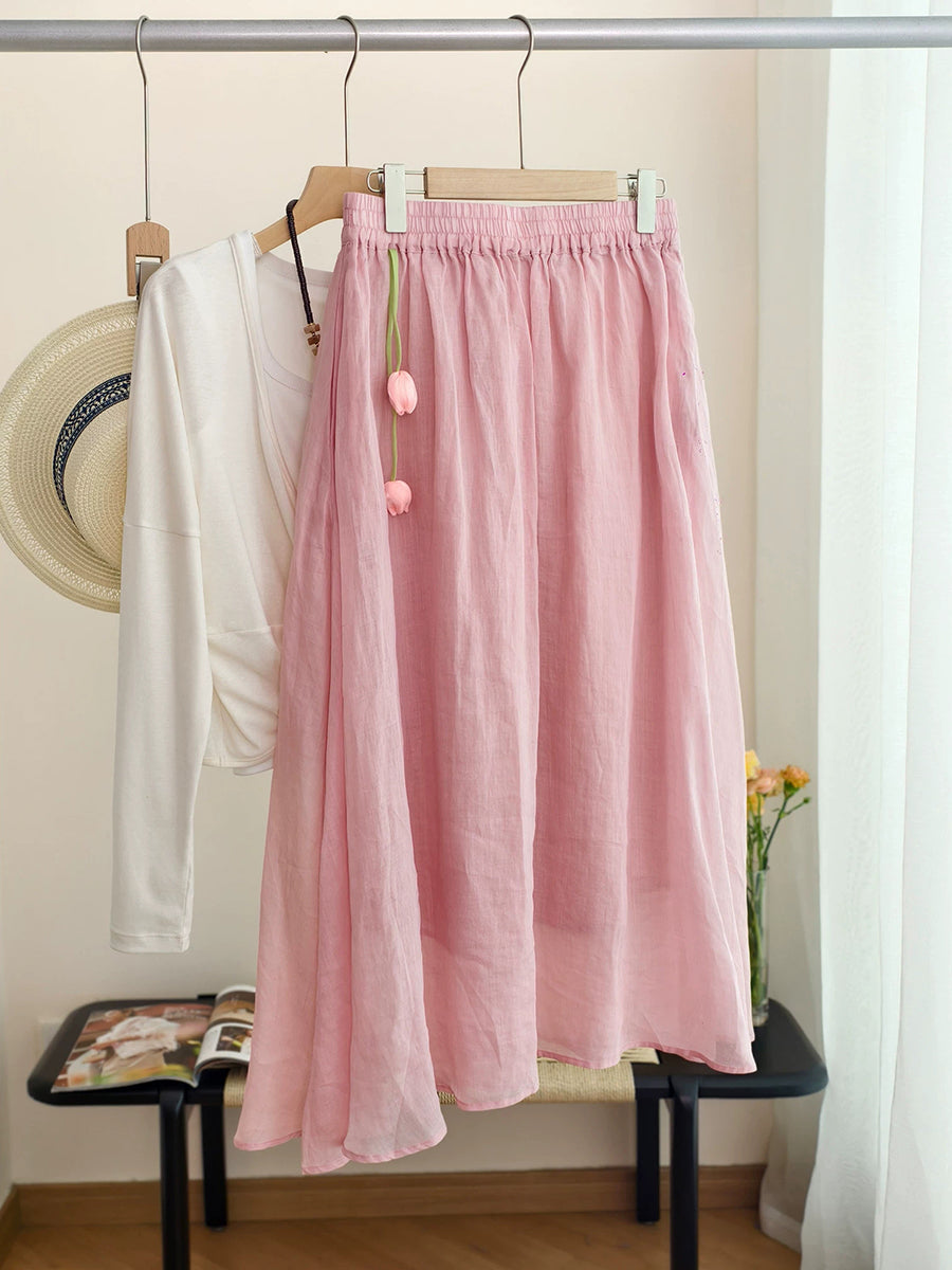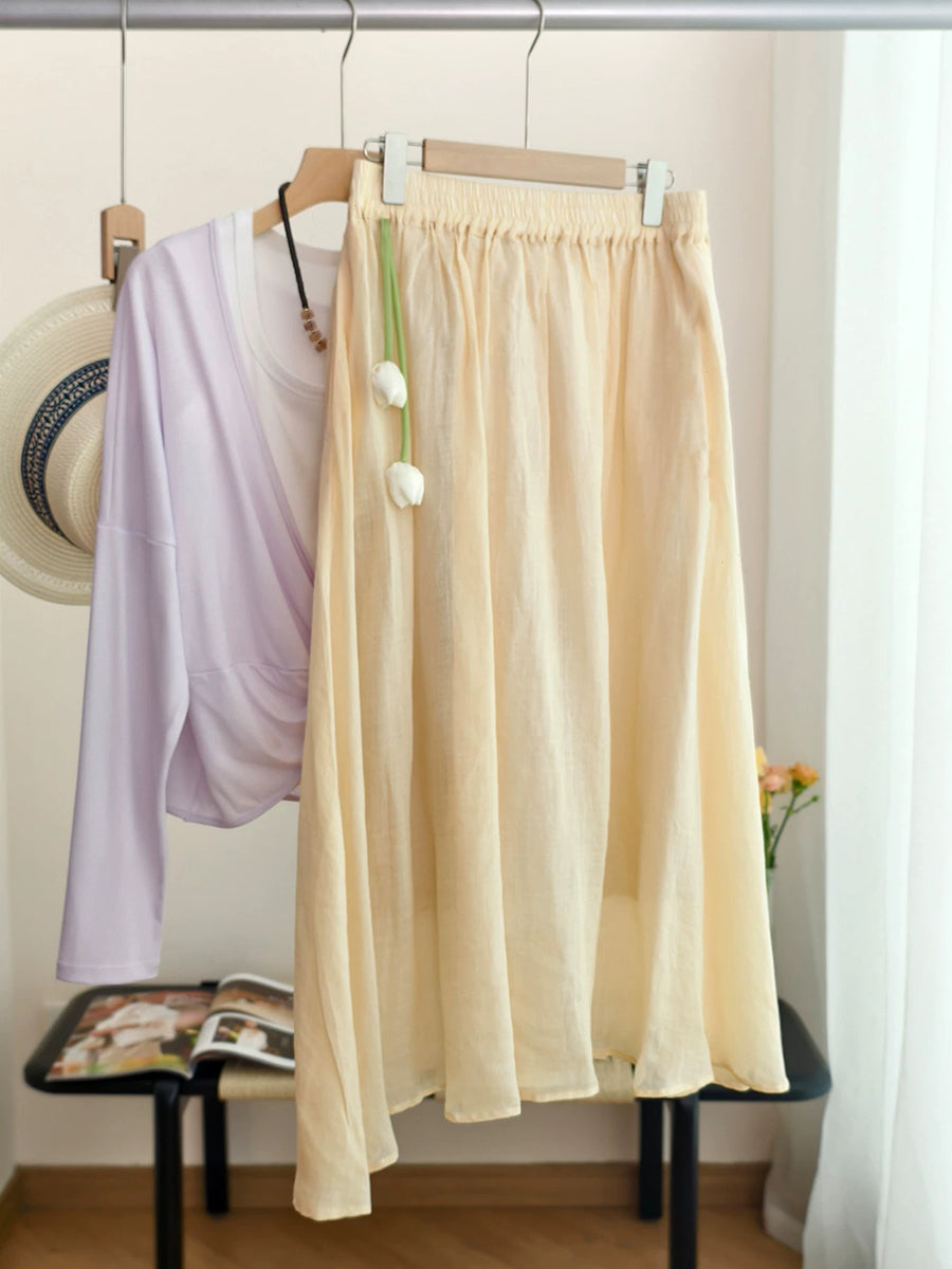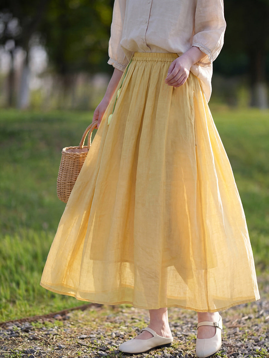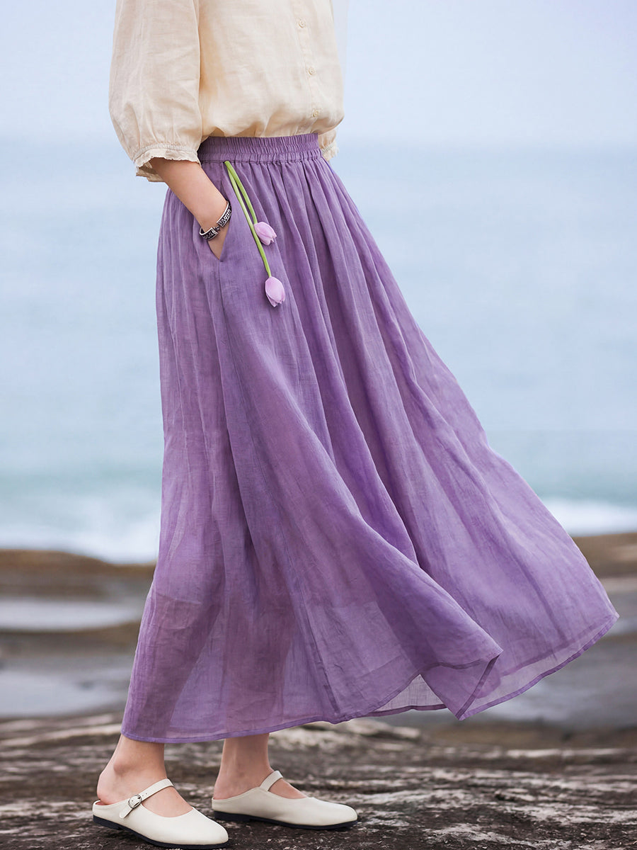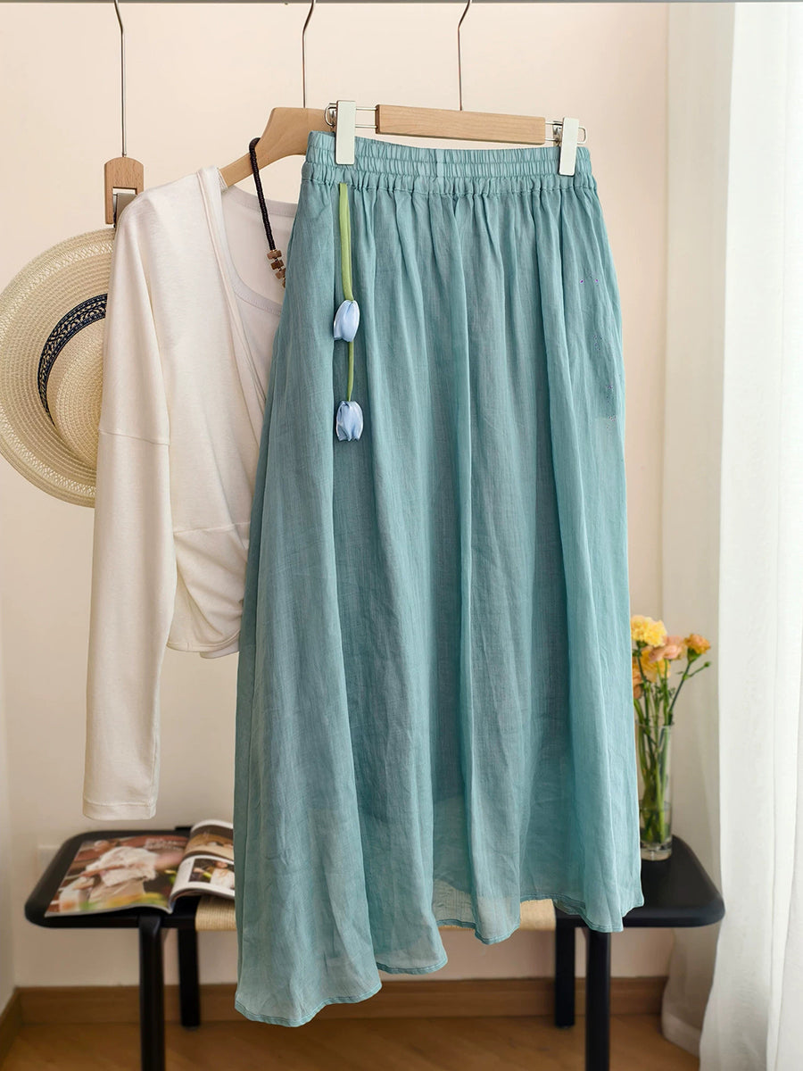 Falda de verano para mujer, estilo artístico, color liso, 100% ramio.