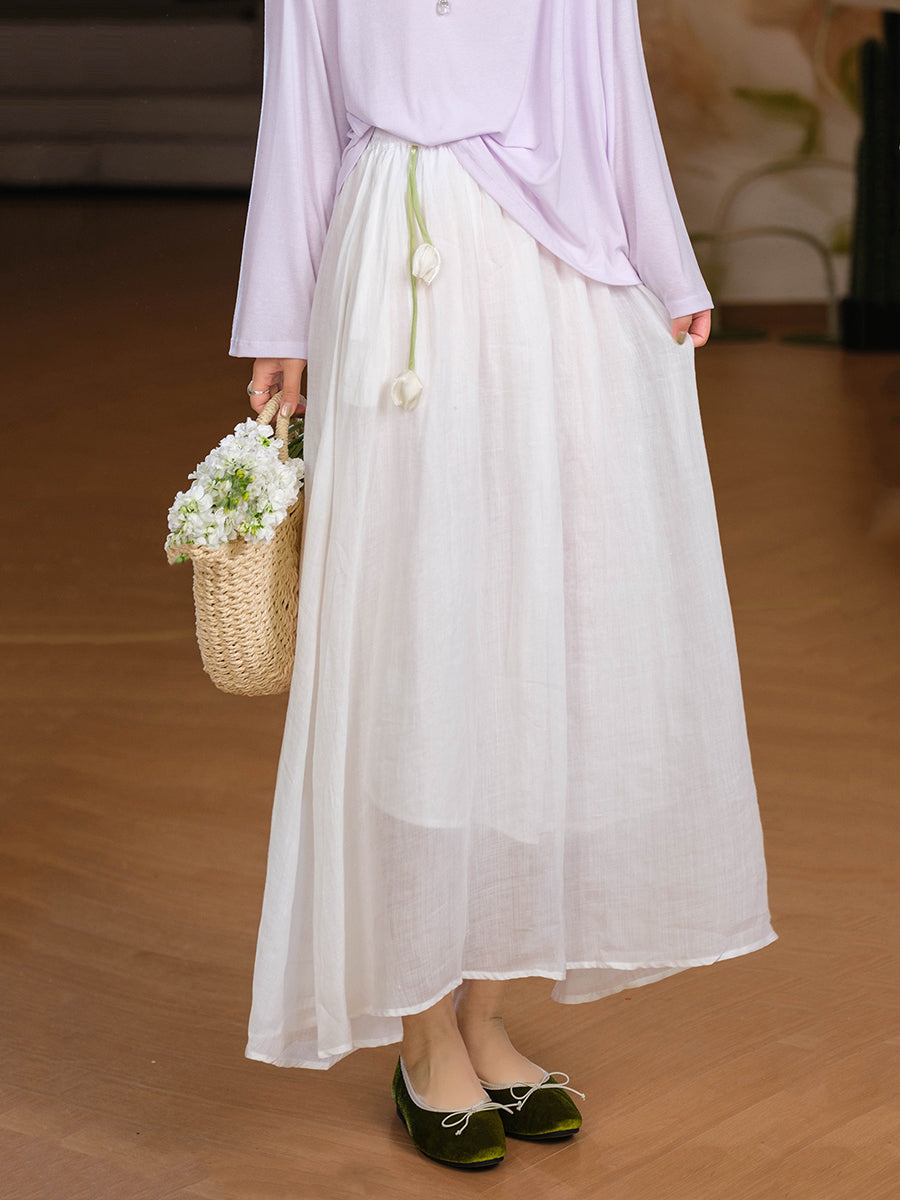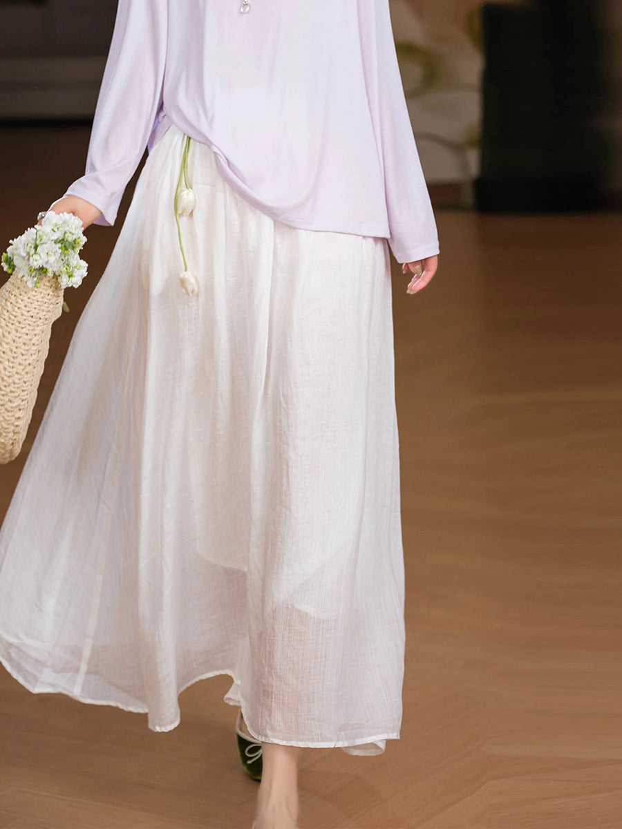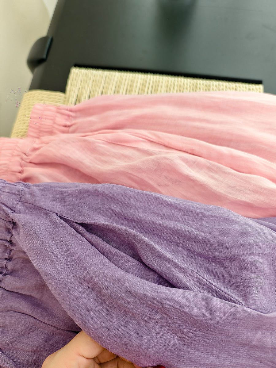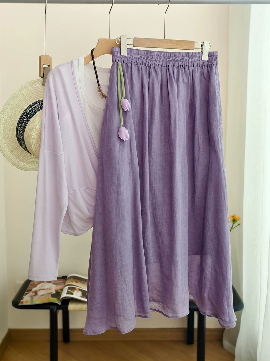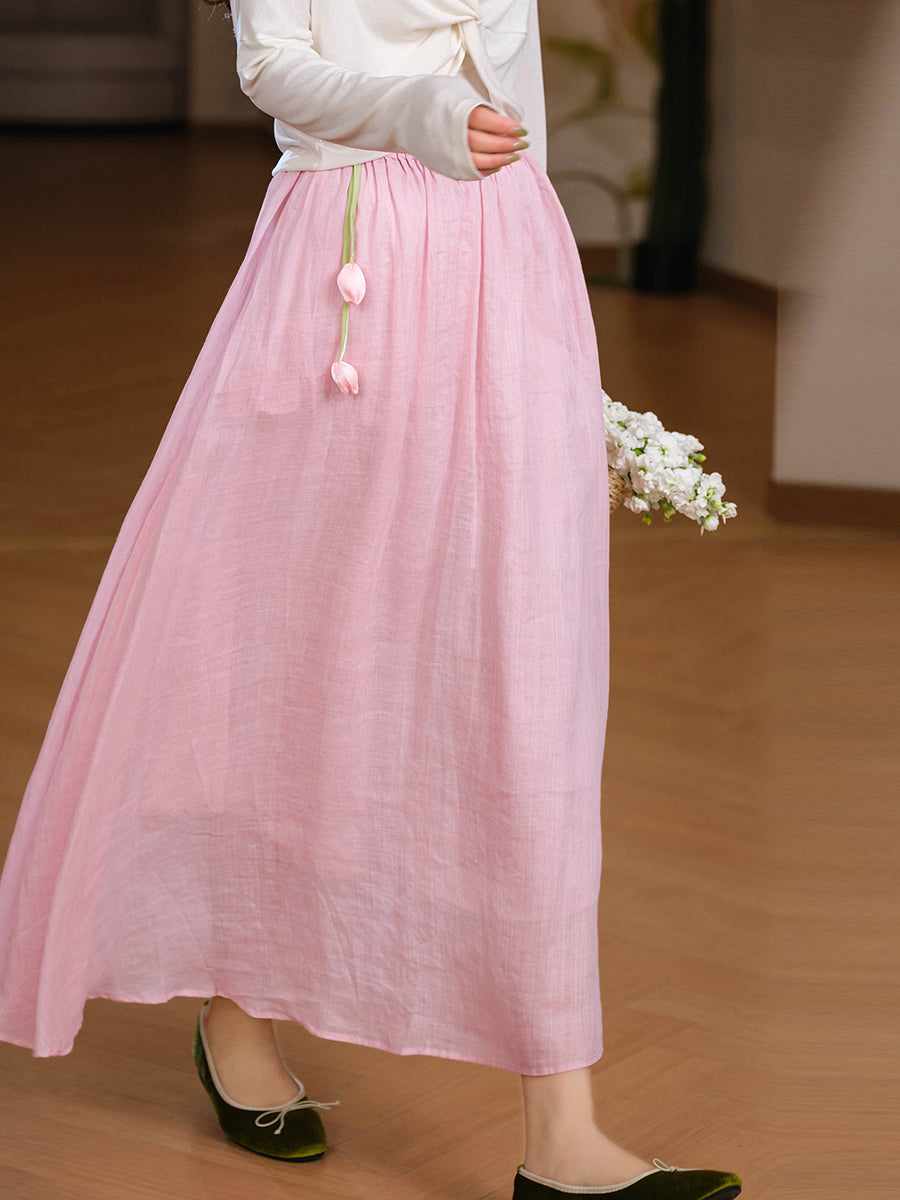 Falda de verano para mujer, estilo artístico, color liso, 100% ramio.