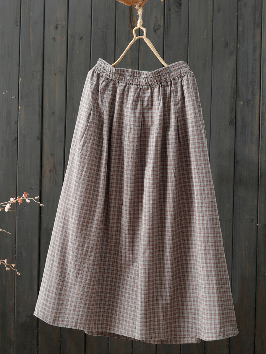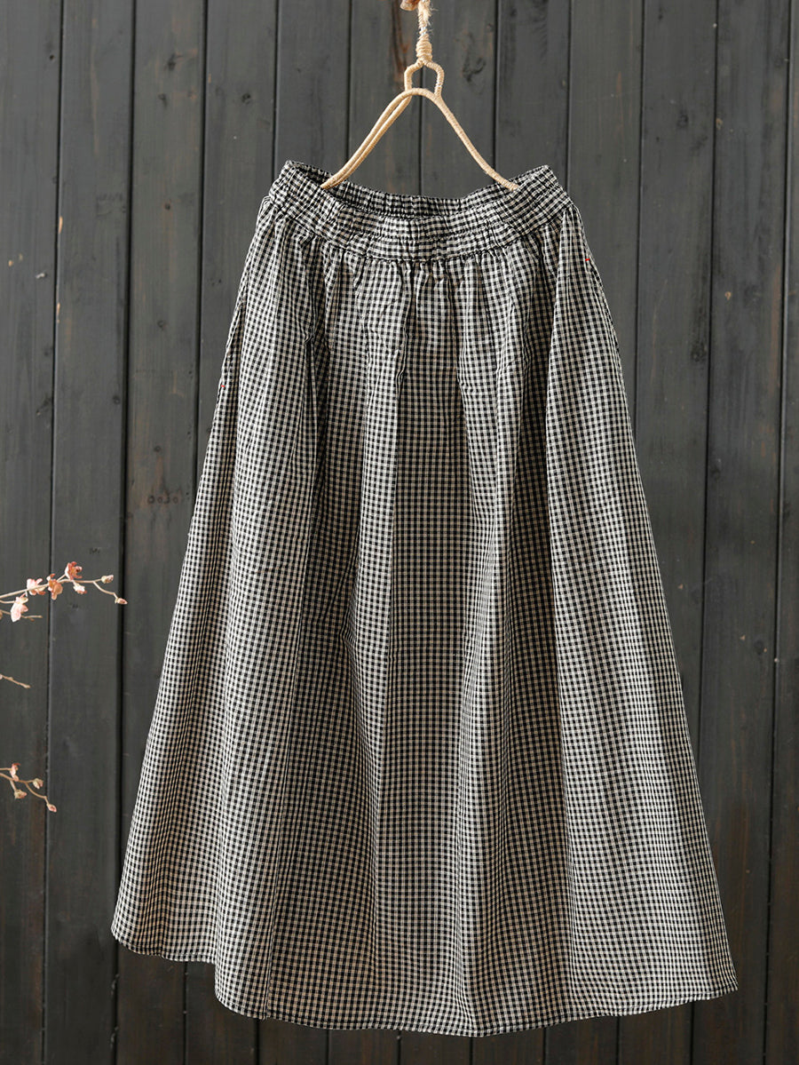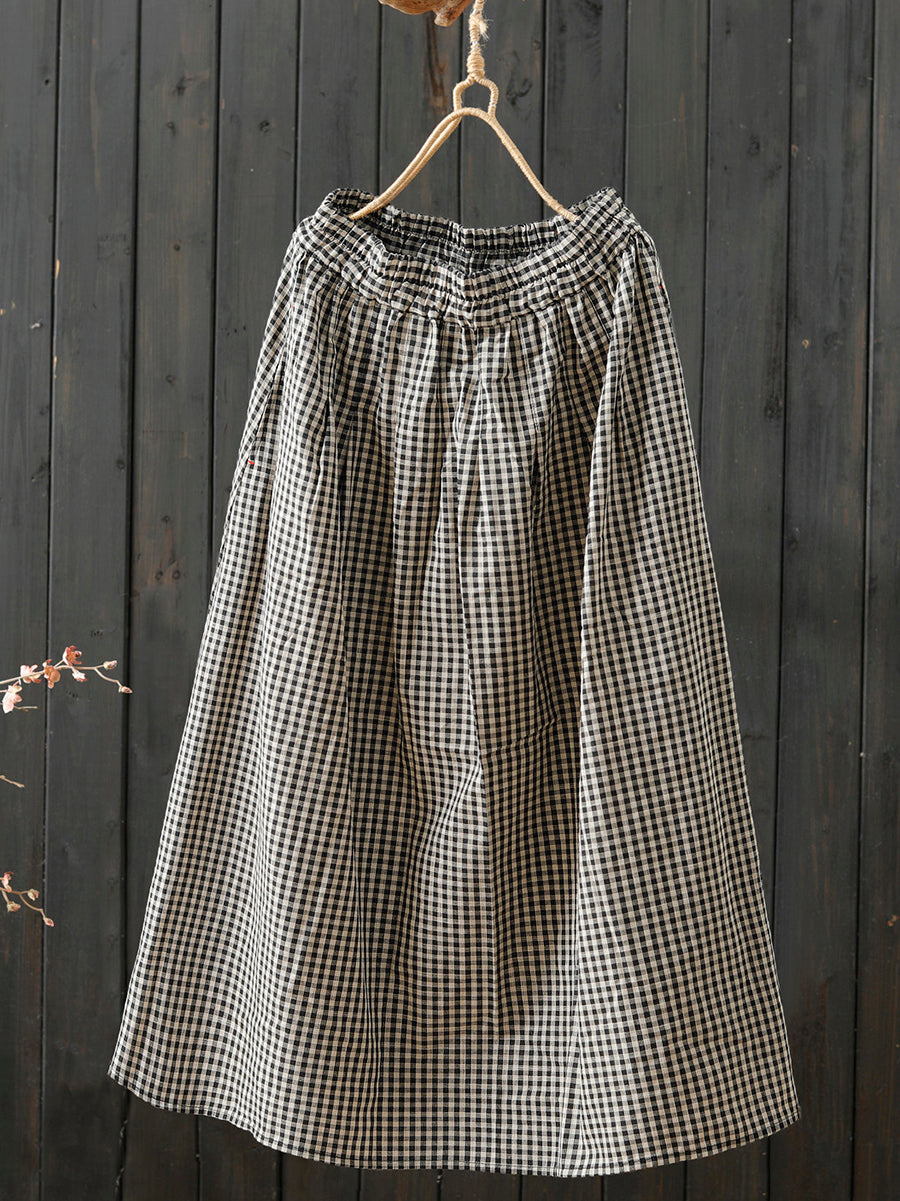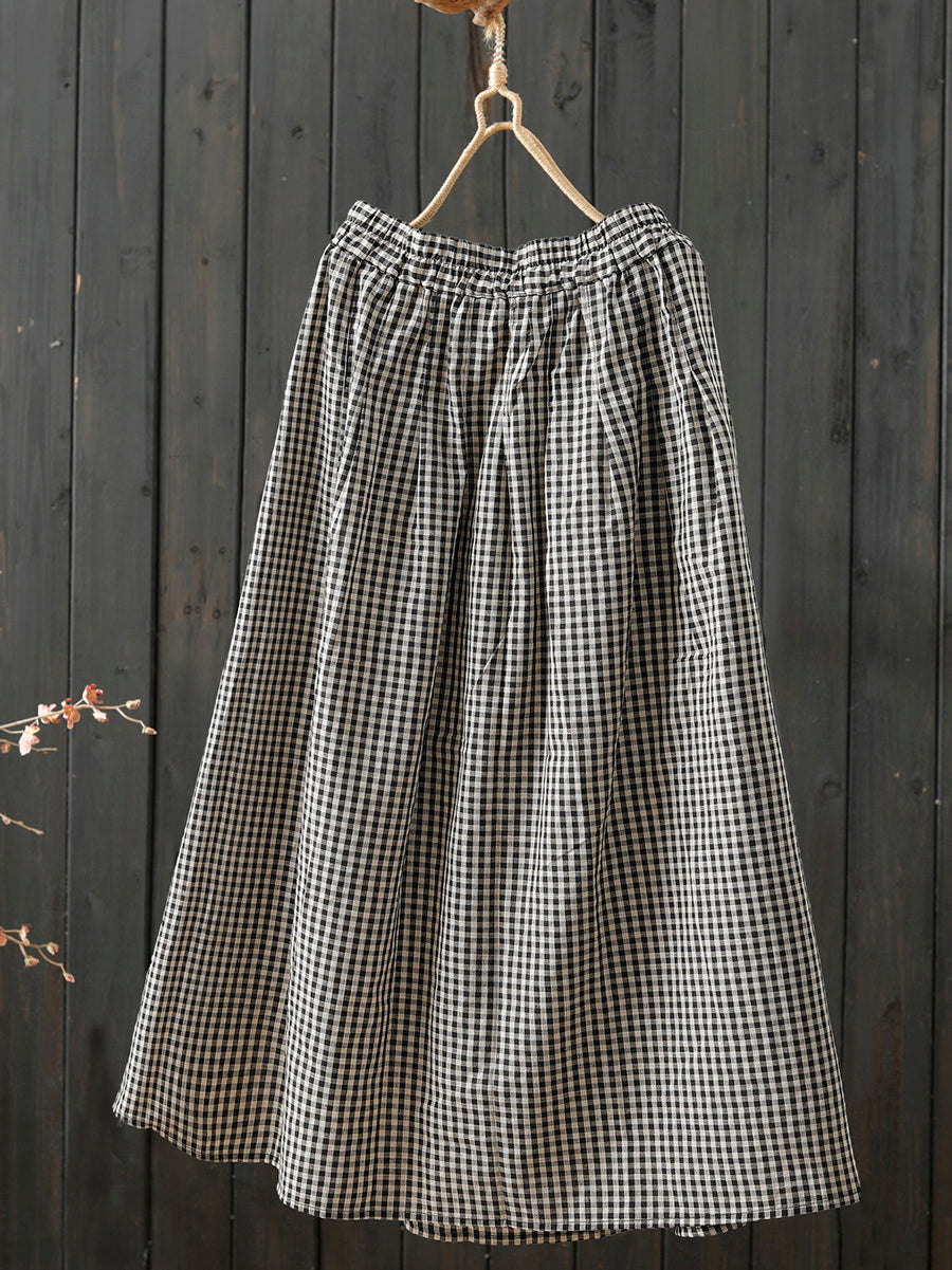 Falda de verano vintage a cuadros 100% algodón con forma de A para mujer