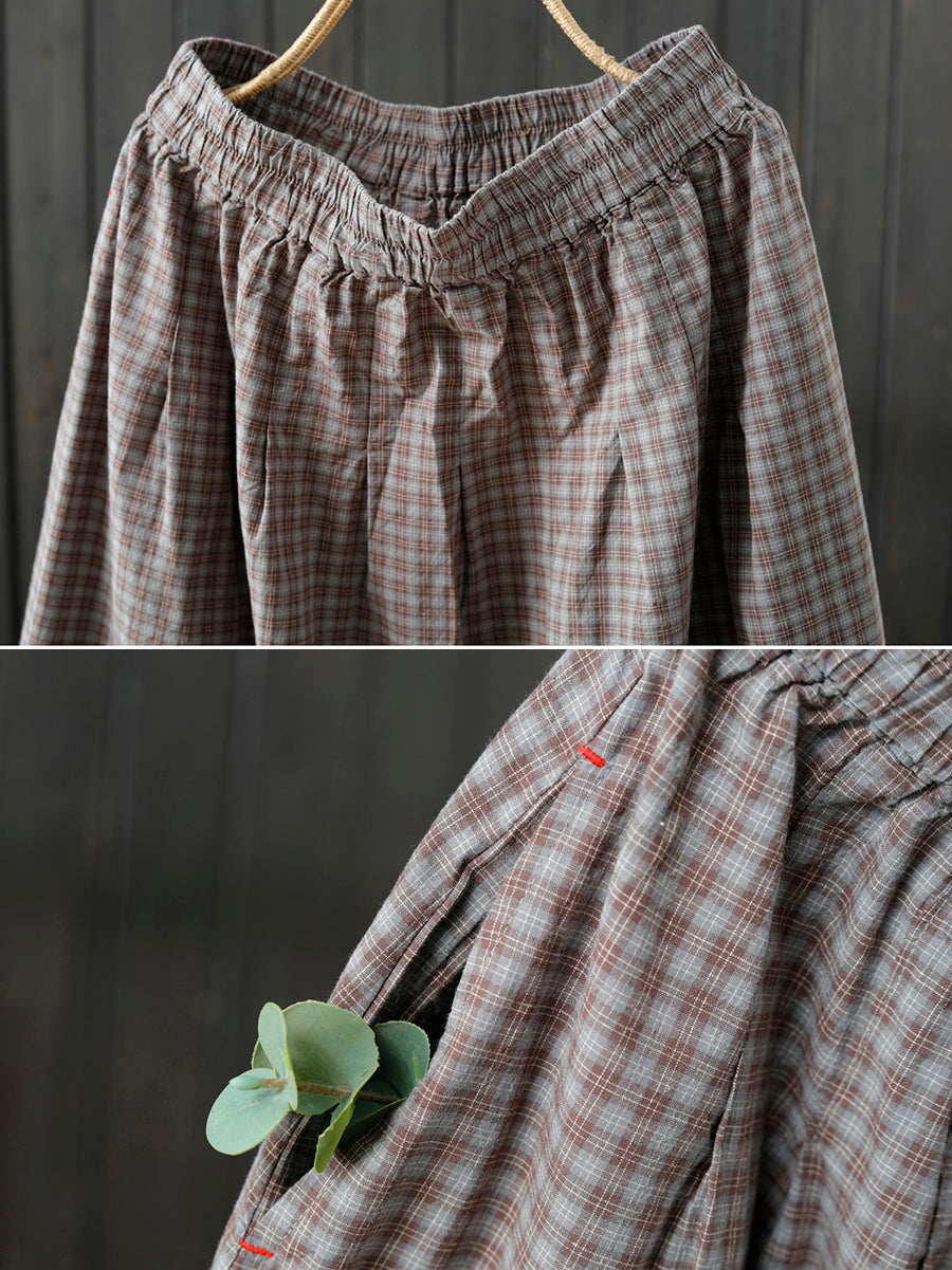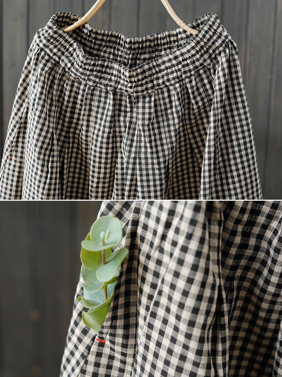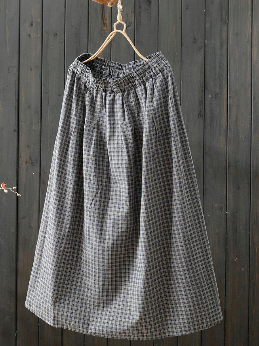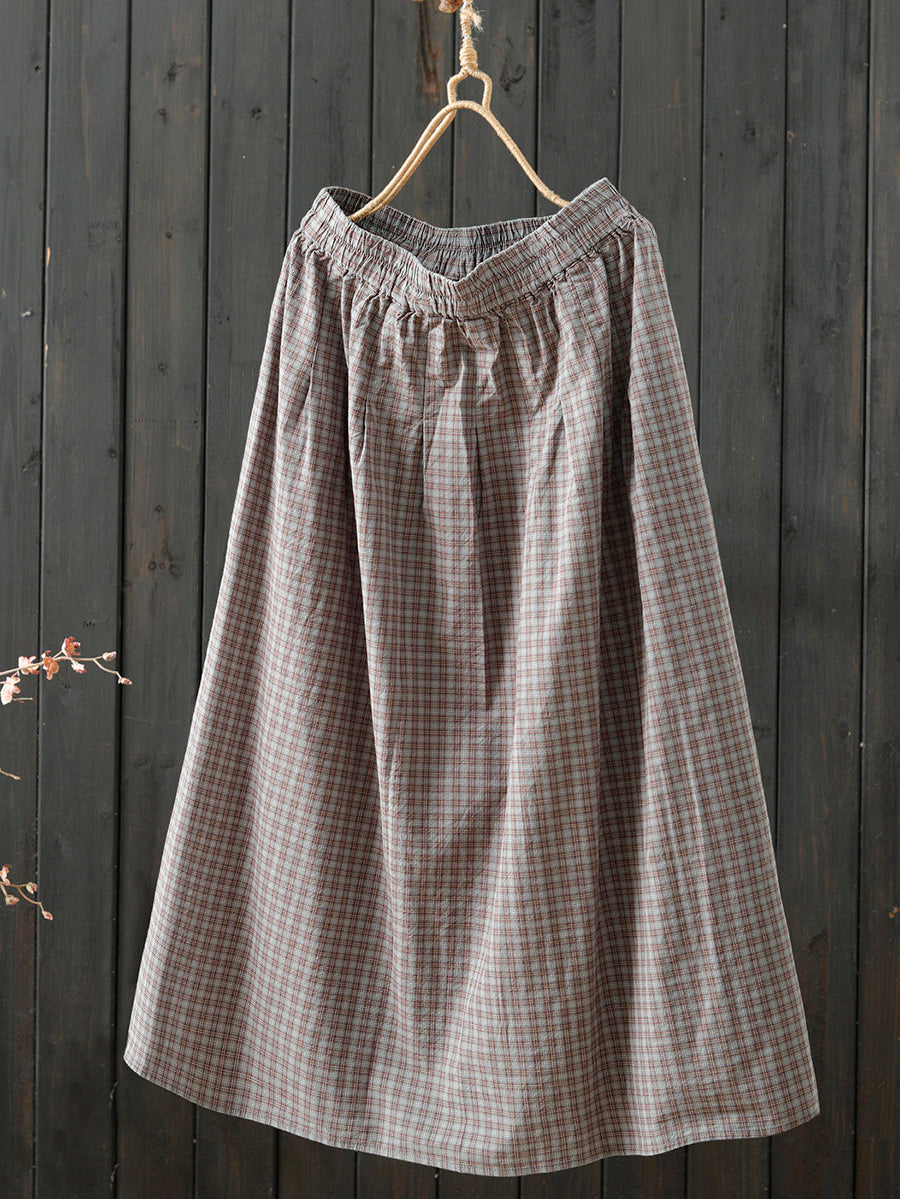 Falda de verano vintage a cuadros 100% algodón con forma de A para mujer