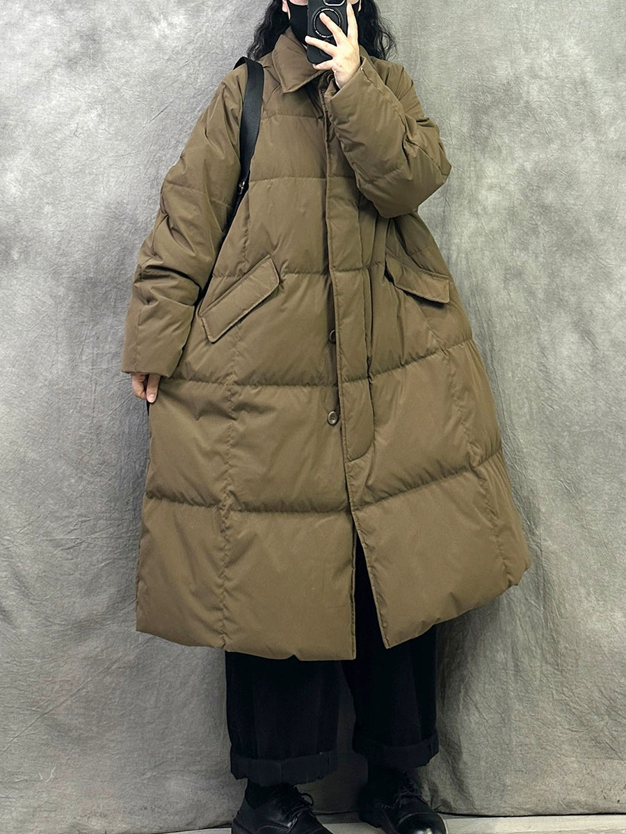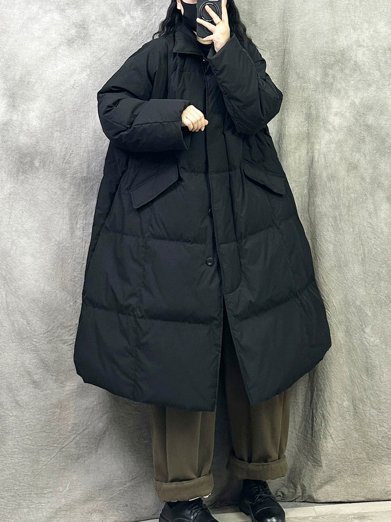 Abrigo de invierno con cuello vuelto y color puro para mujer
