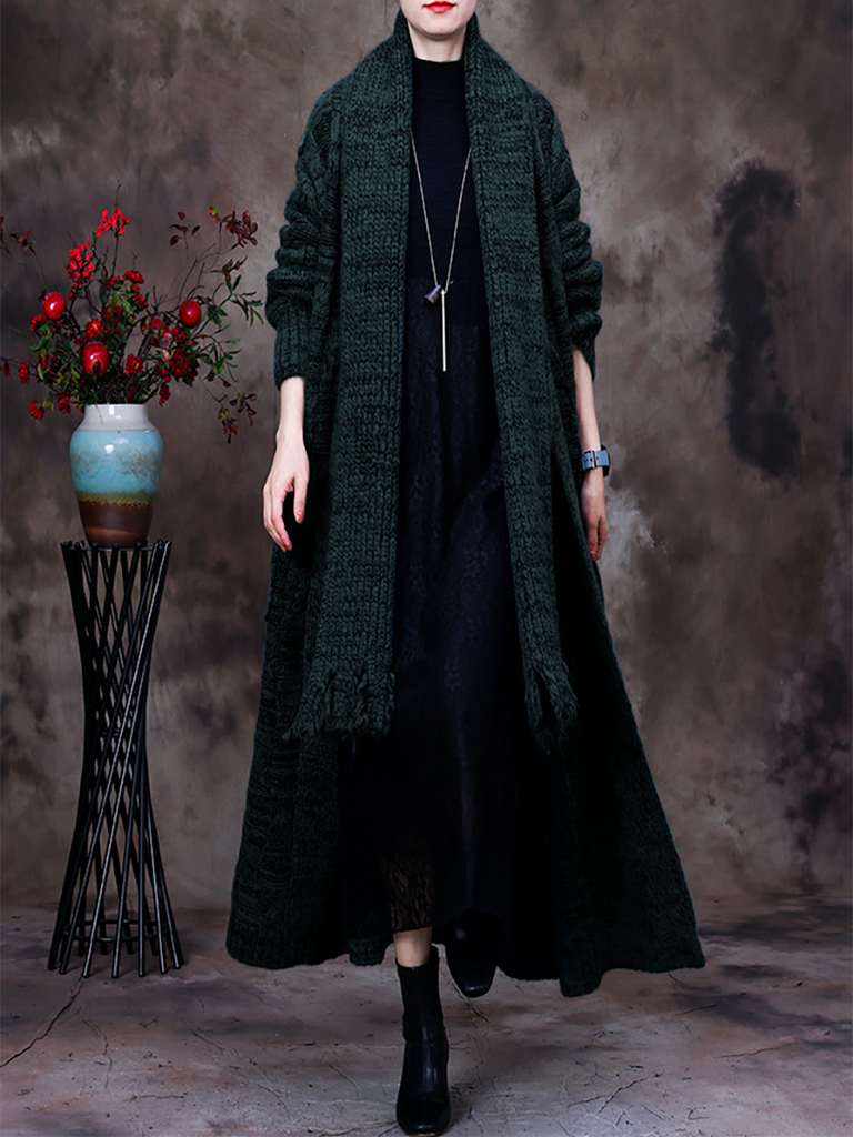 Abrigo tipo suéter grueso y largo holgado vintage para mujer