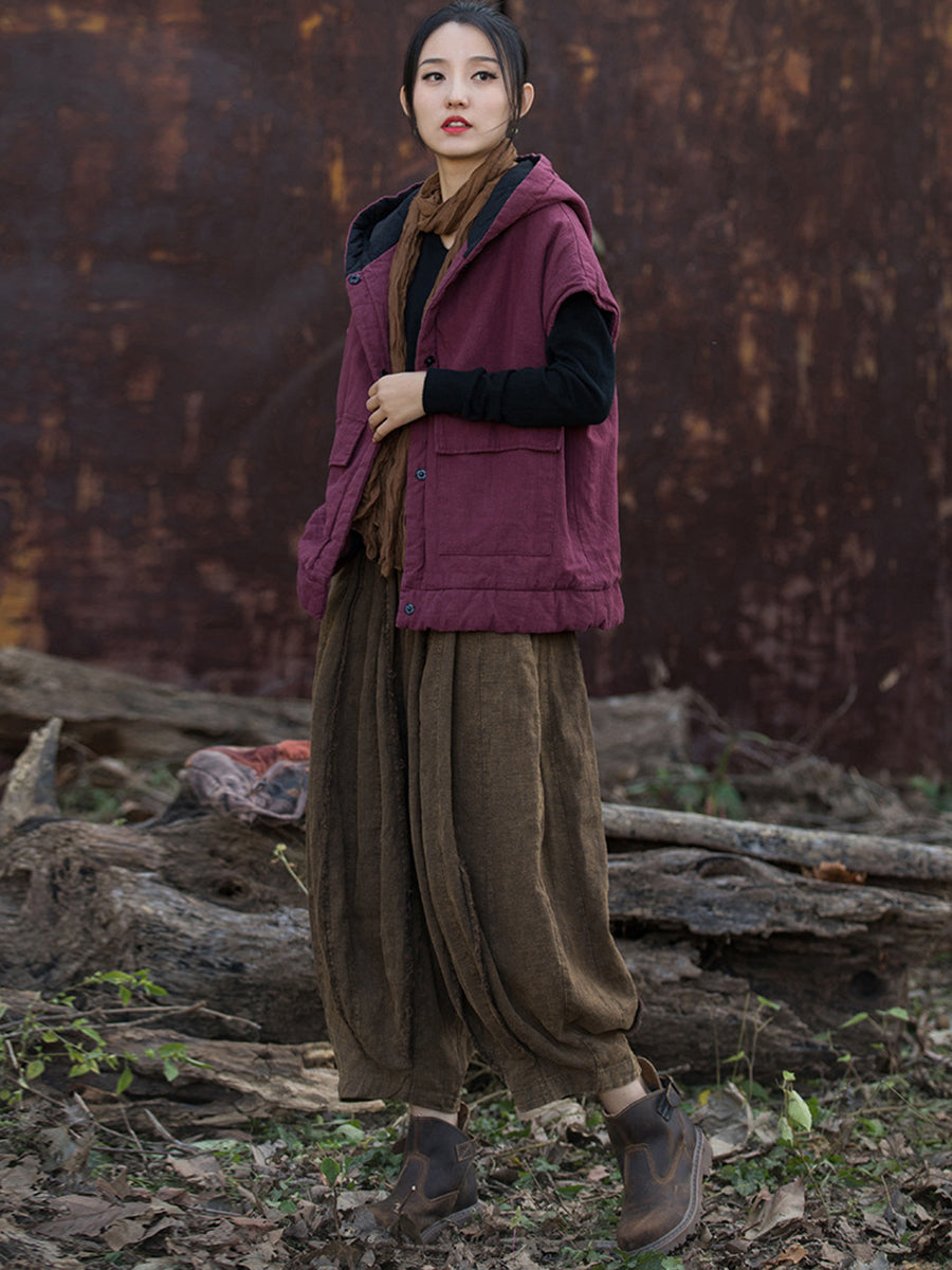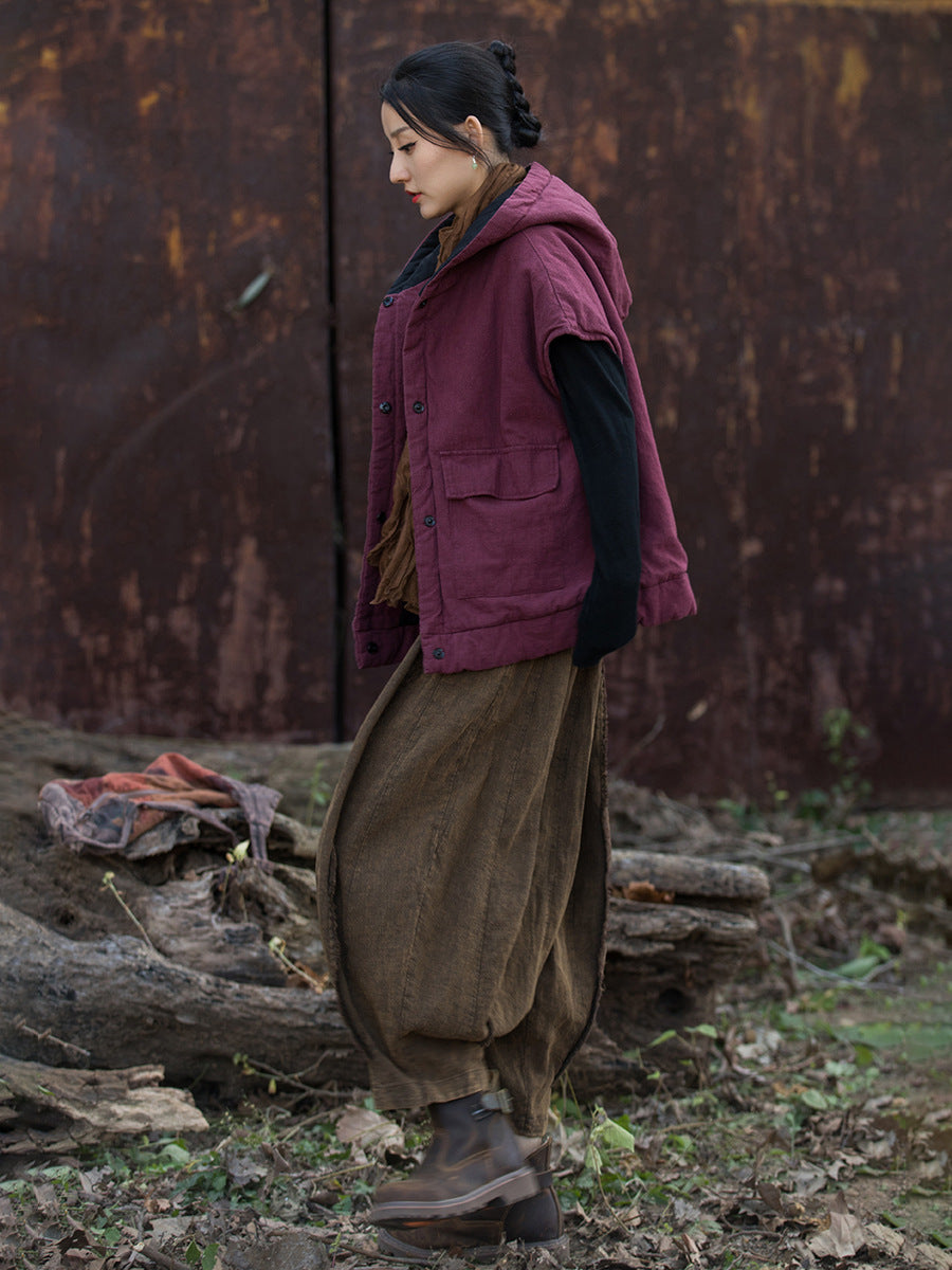 Chaleco con capucha y relleno sólido de invierno para mujer