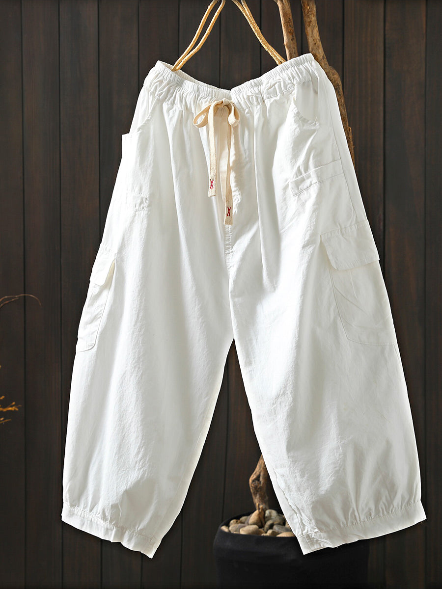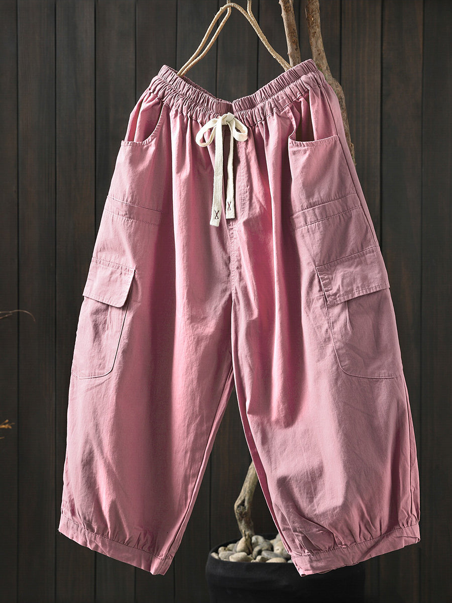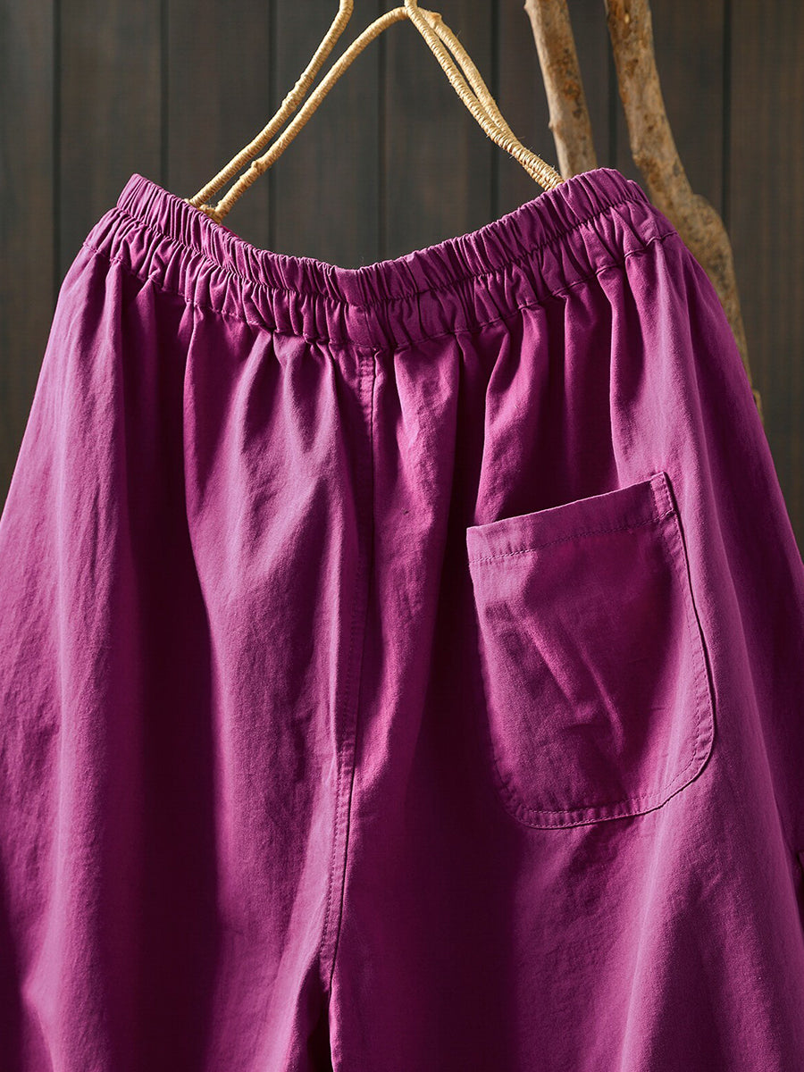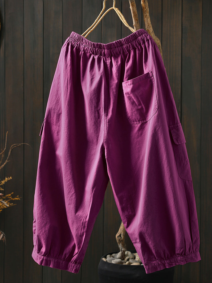 Pantalones harem casuales de algodón de color liso para mujer, ideales para el verano.