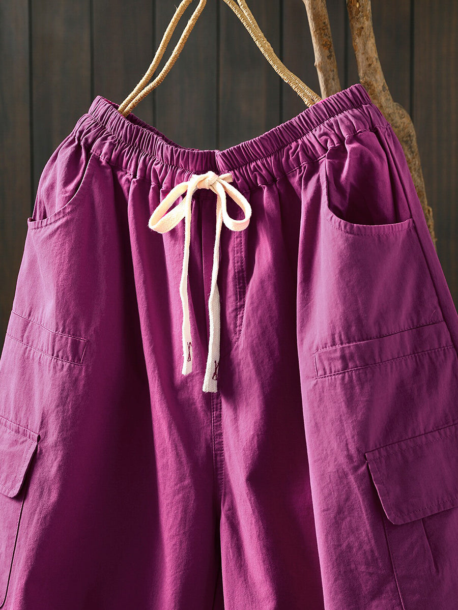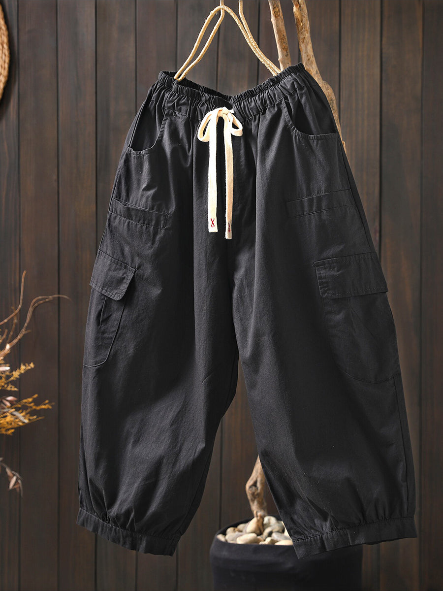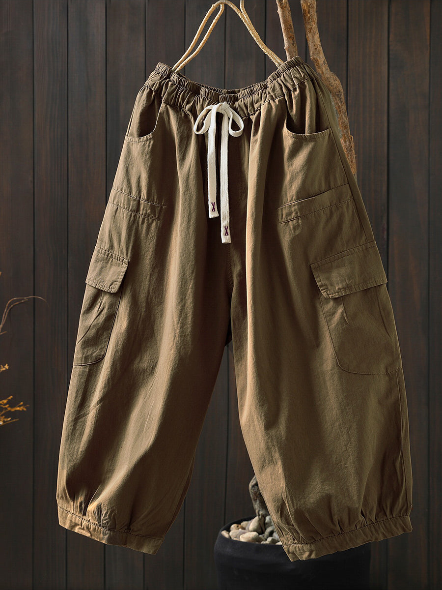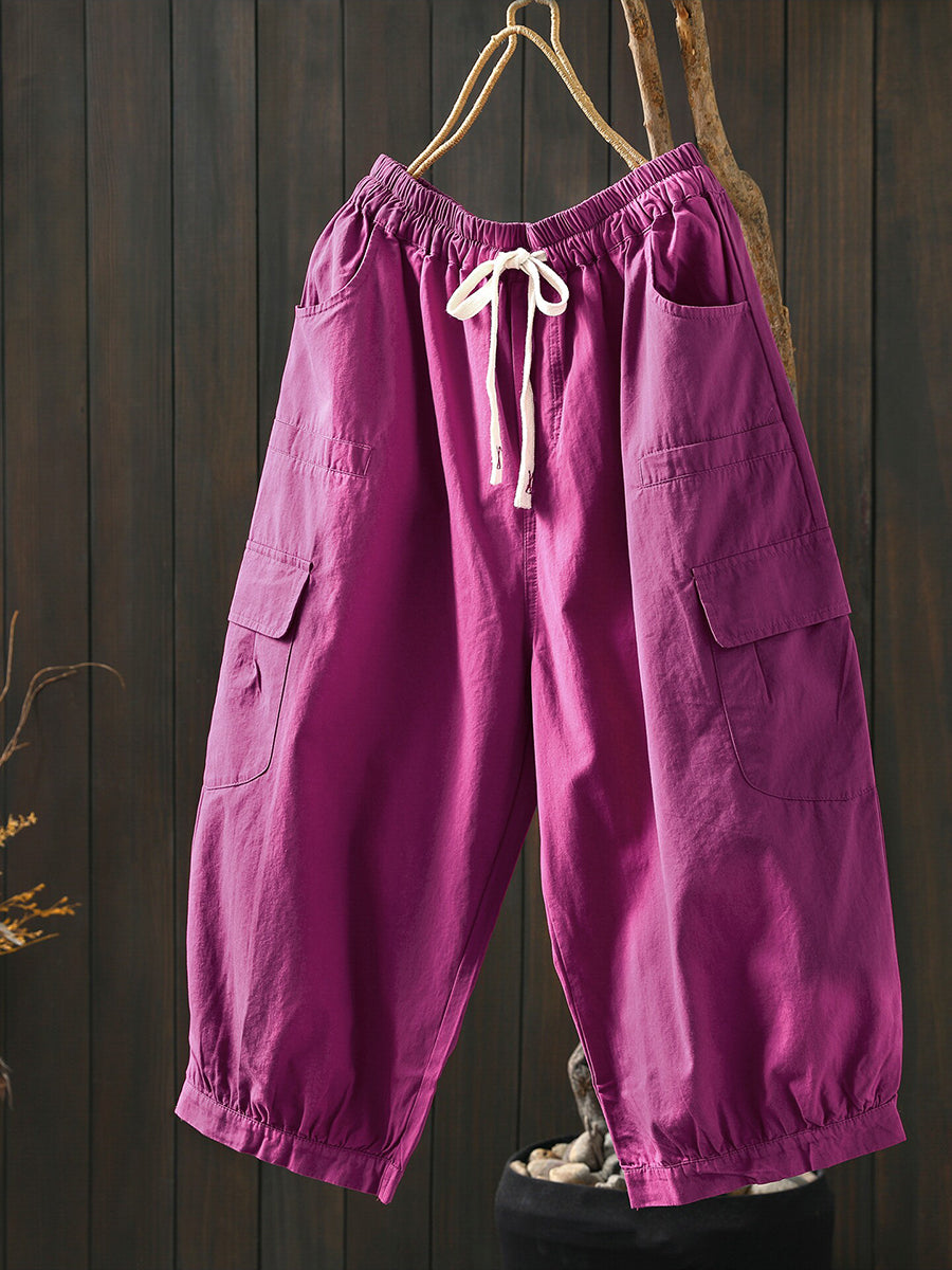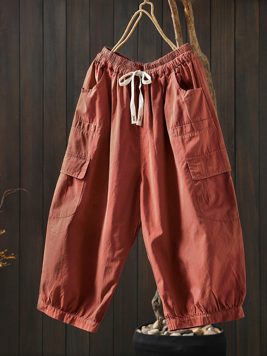 Pantalones harem casuales de algodón de color liso para mujer, ideales para el verano.