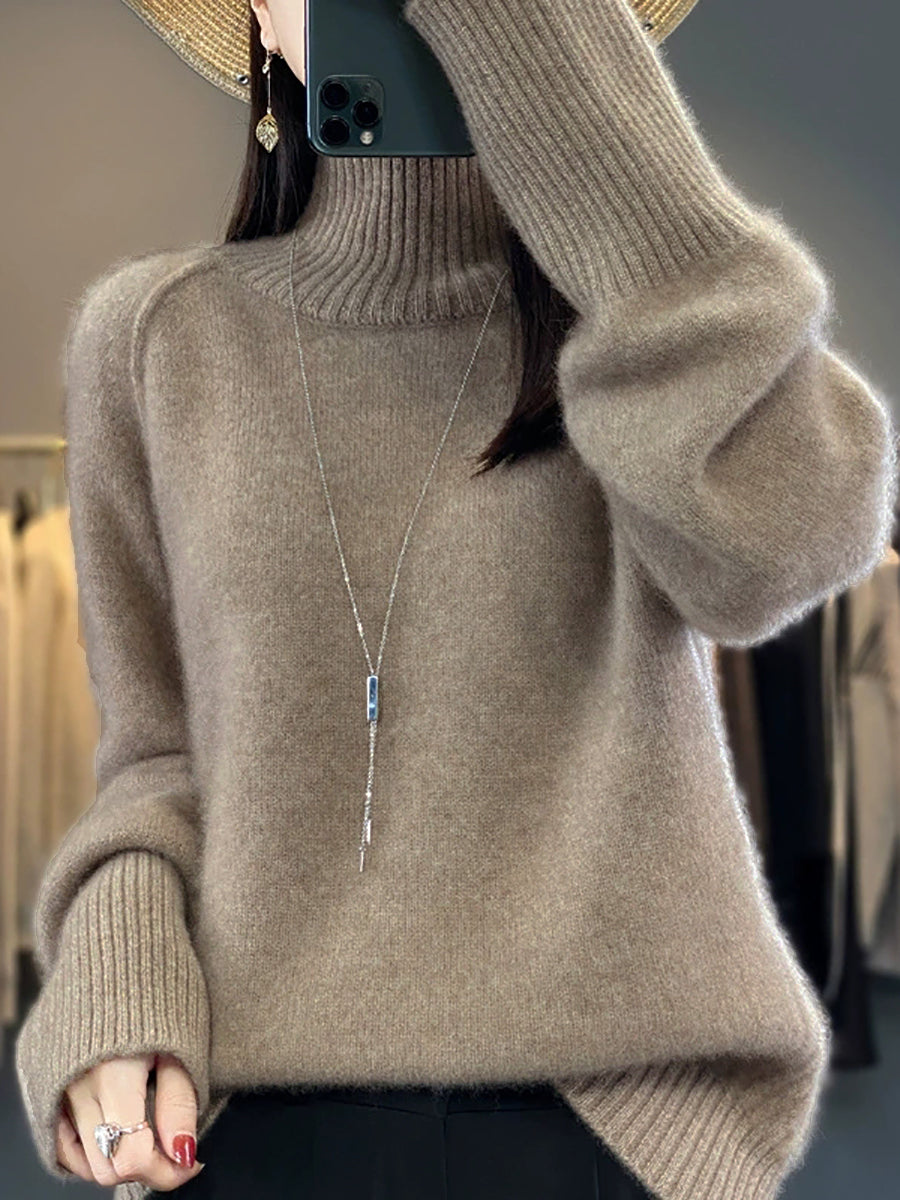 Suéter de cuello alto de punto de color puro informal de invierno para mujer