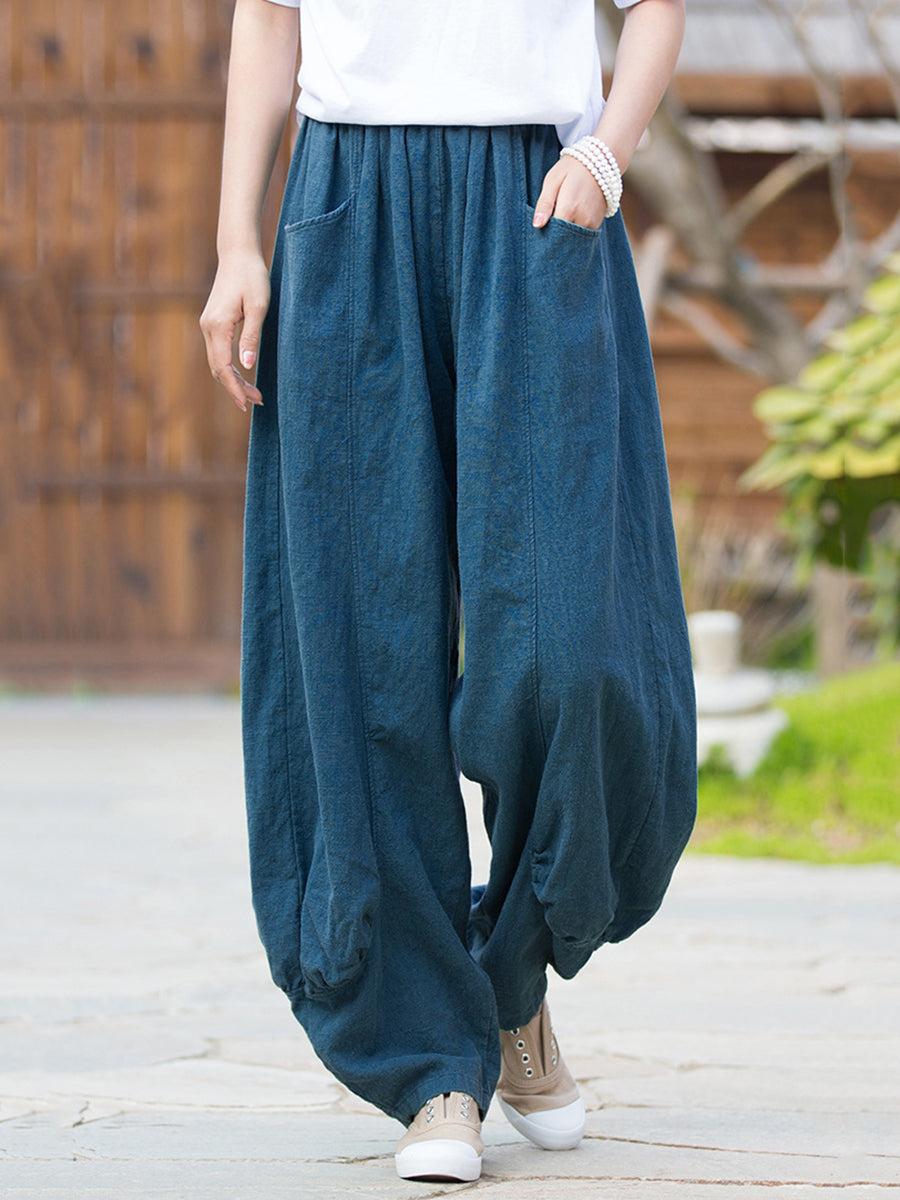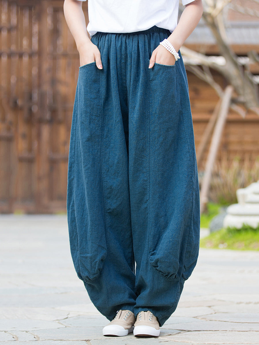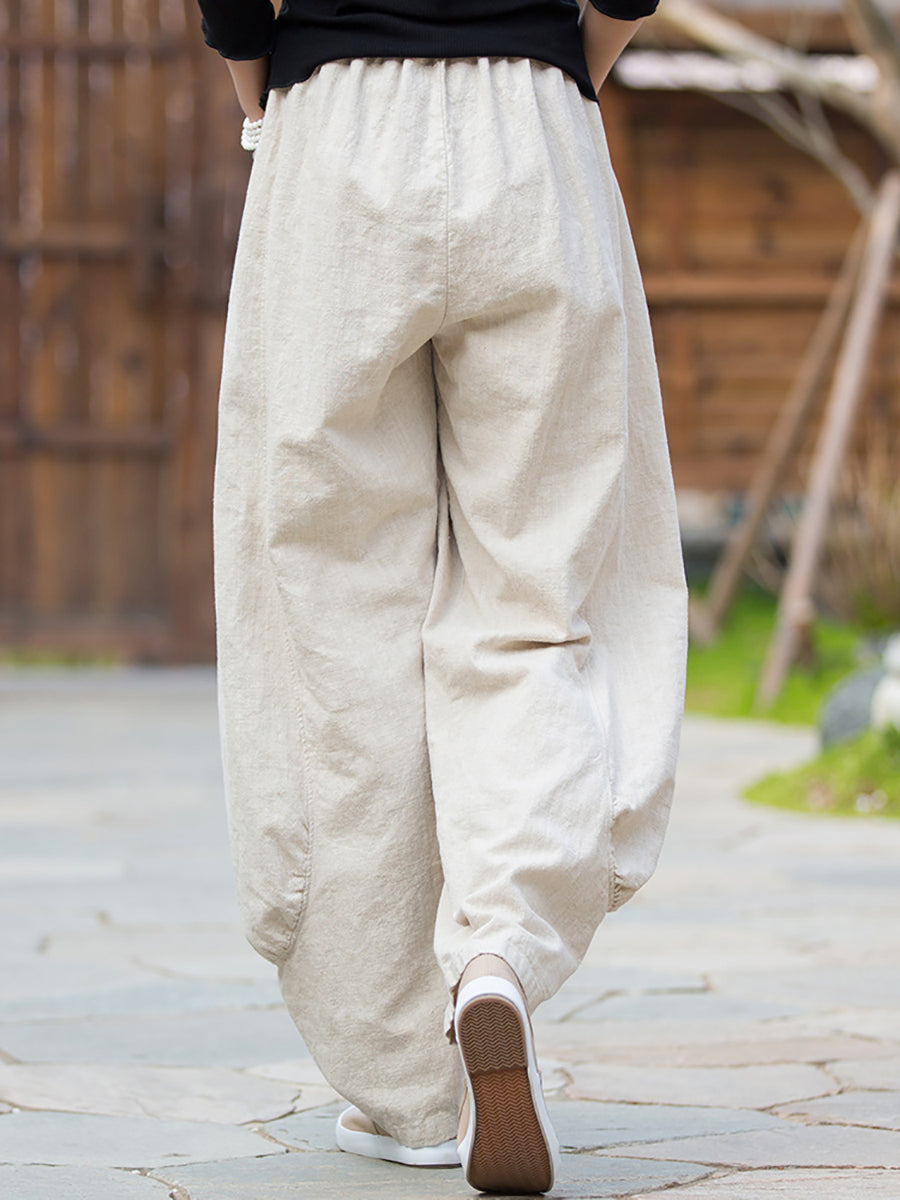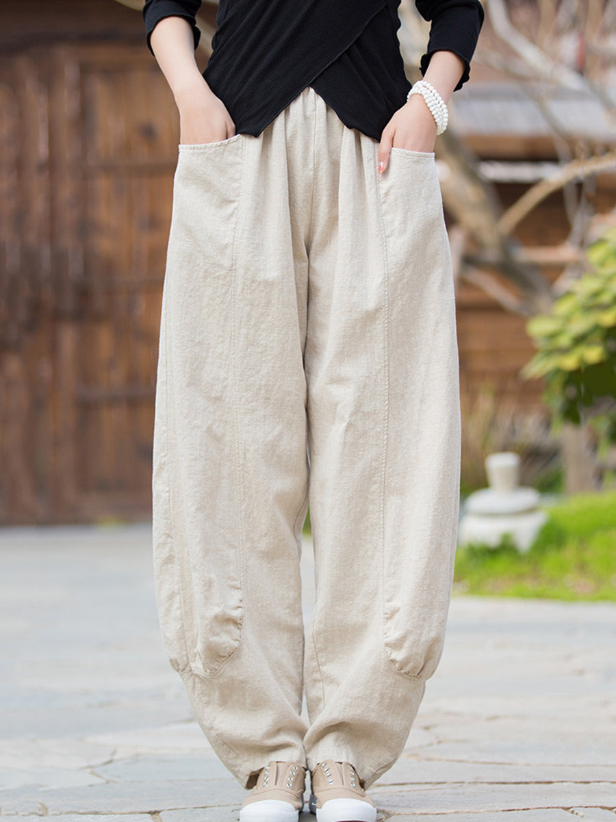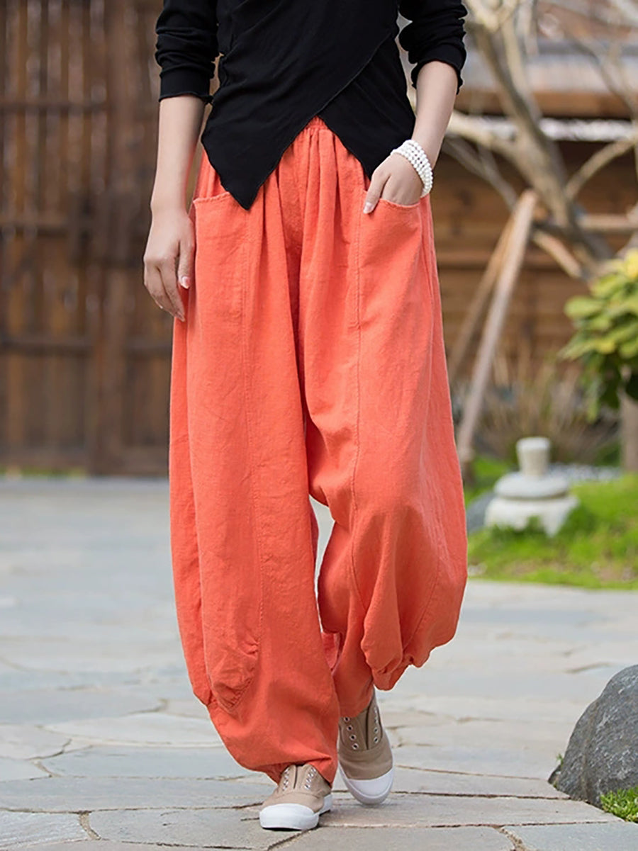 Pantalones bombachos de ramio de color puro retro de invierno para mujer