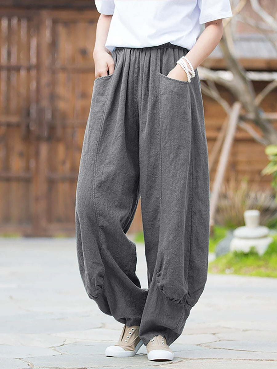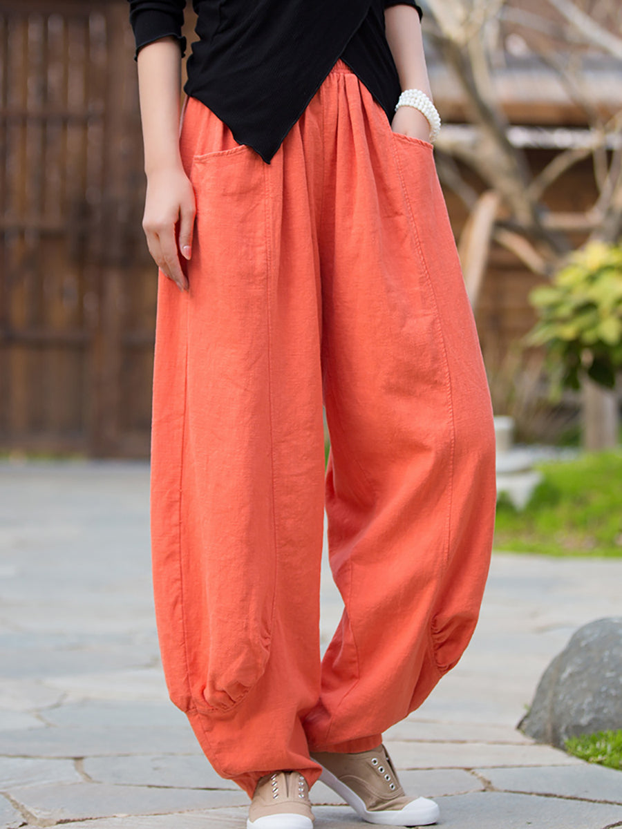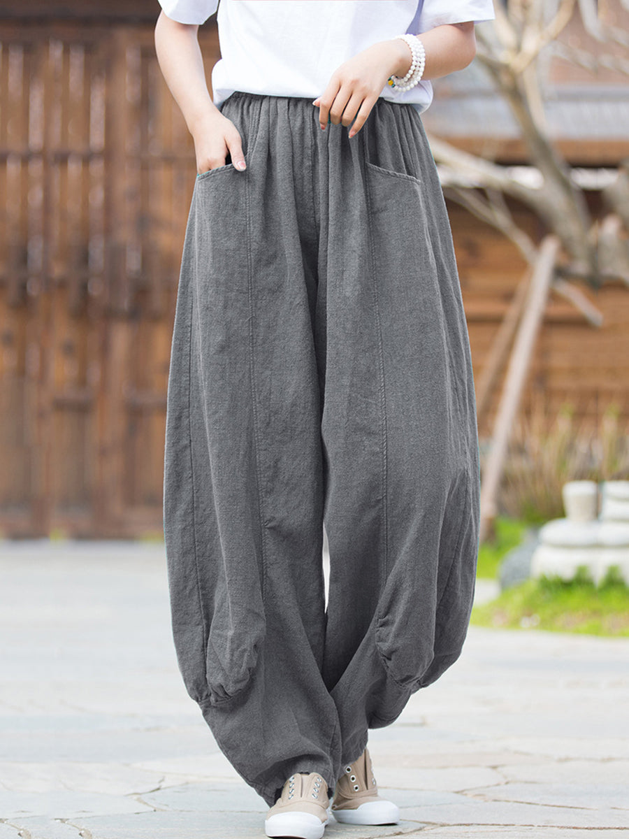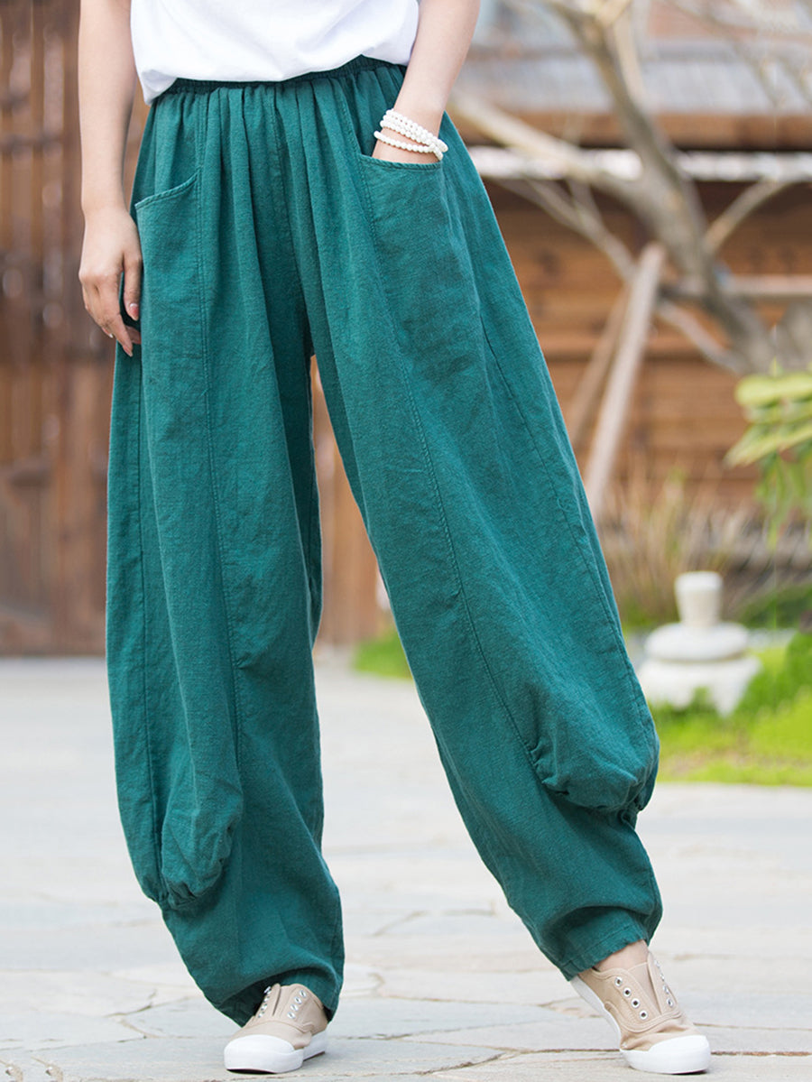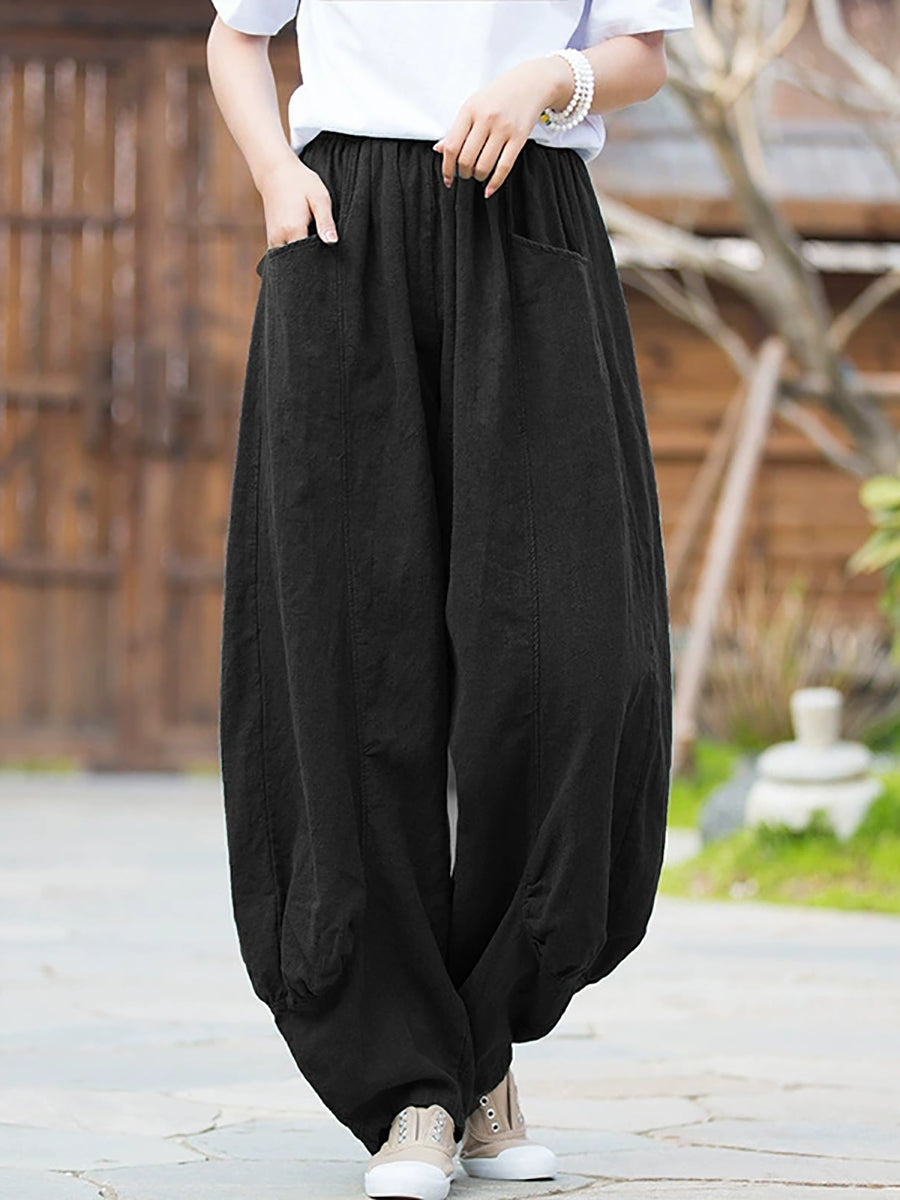 Pantalones bombachos de ramio de color puro retro de invierno para mujer