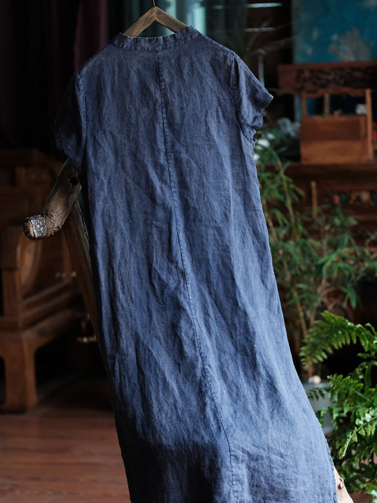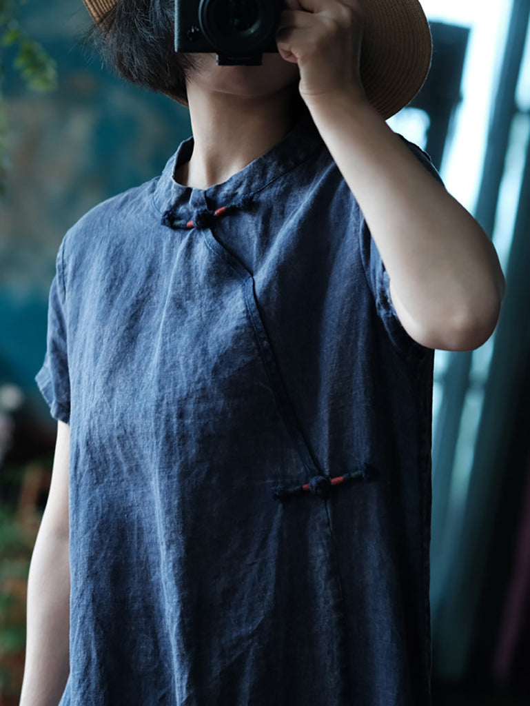 Vestido cheongsam de lino de color puro étnico de verano para mujer