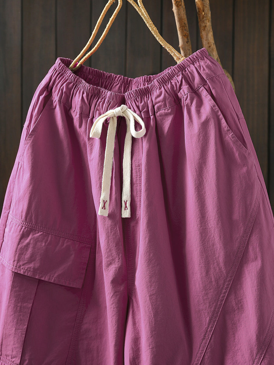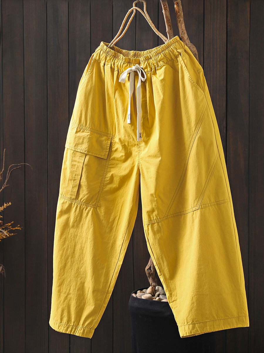Pantalones harem casuales de algodón de color liso para mujer, ideales para el verano.