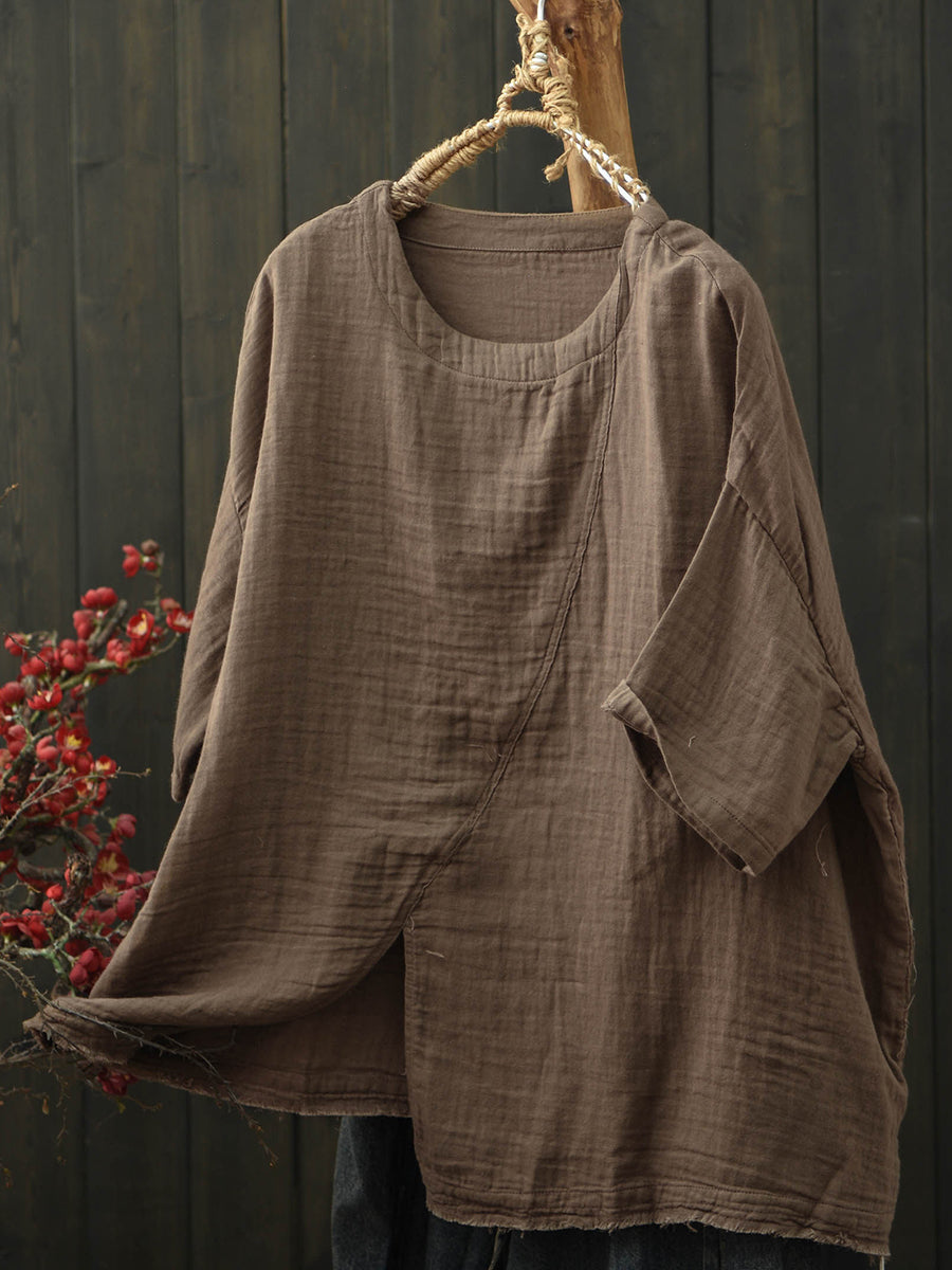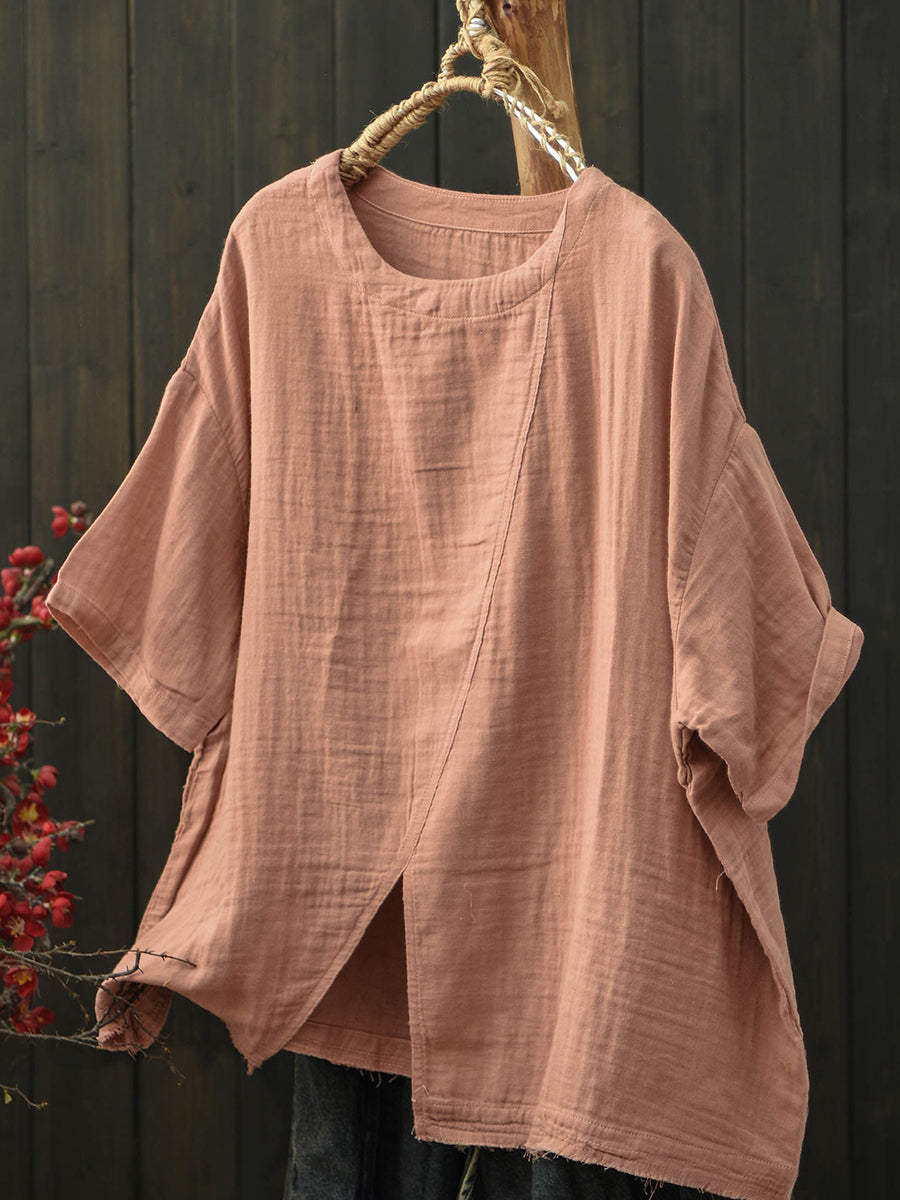 Camiseta de algodón retro de verano con bajo dividido para mujer