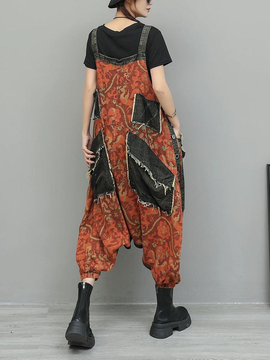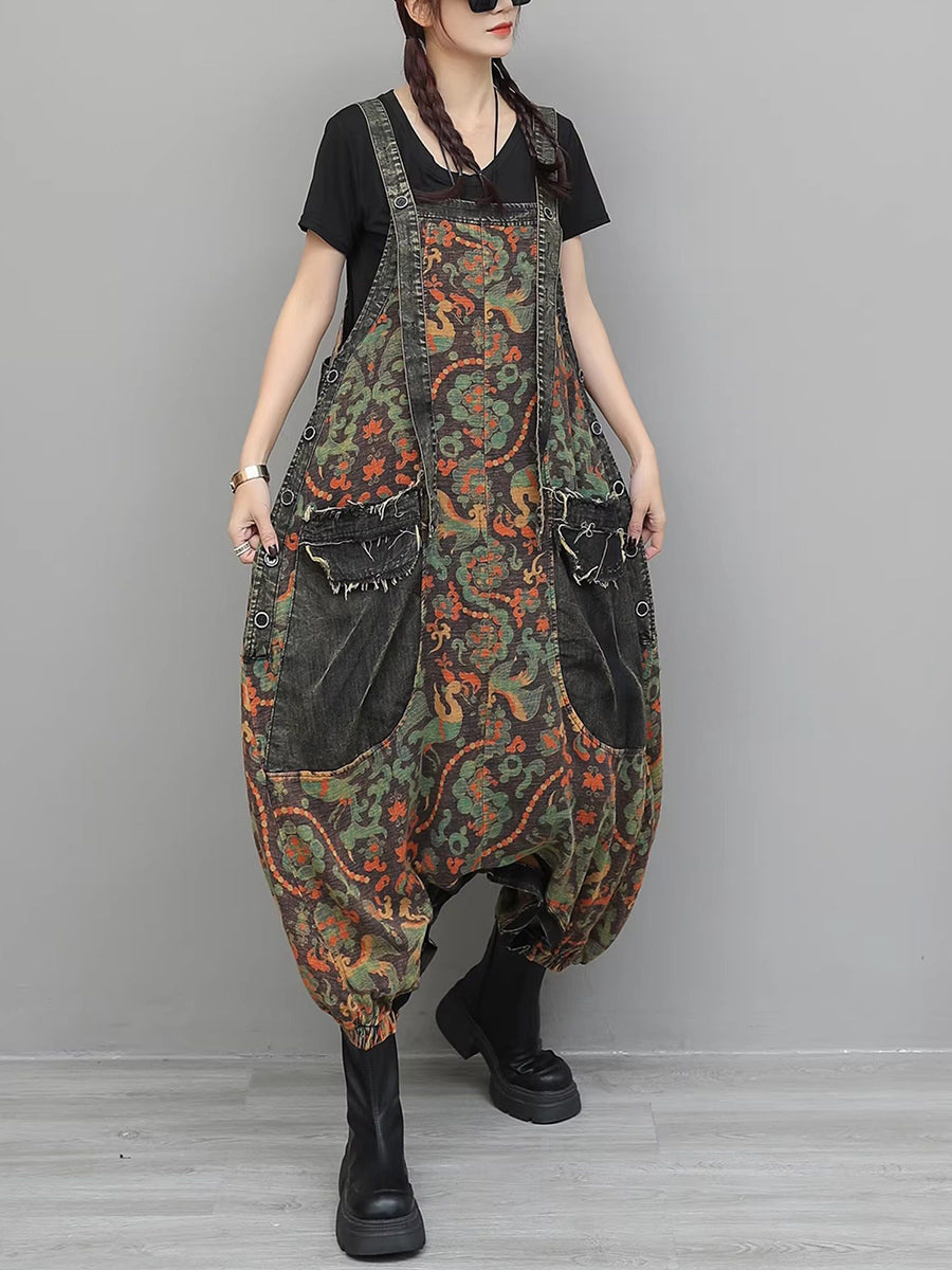 Monos vaqueros vintage con flores para mujer