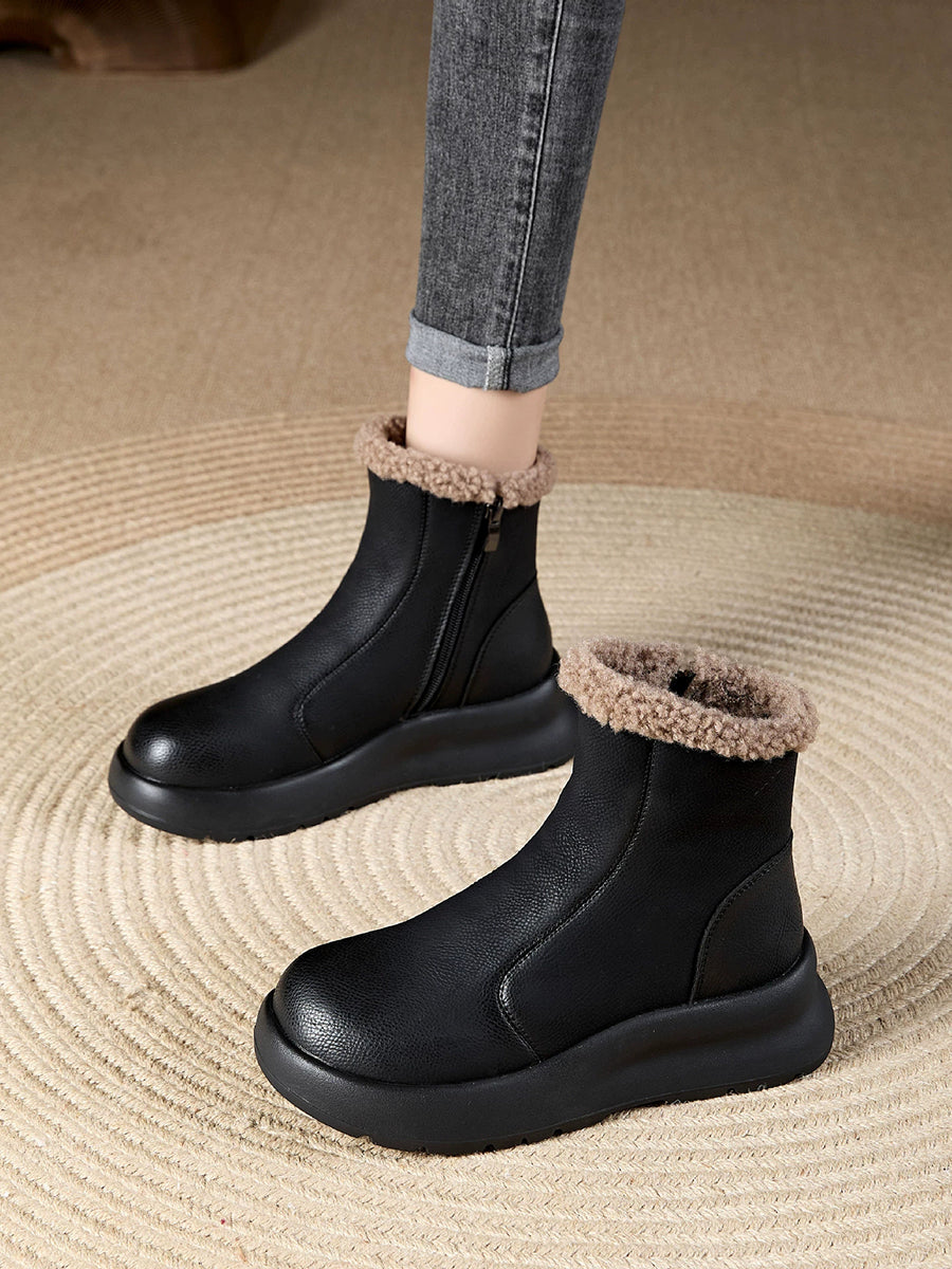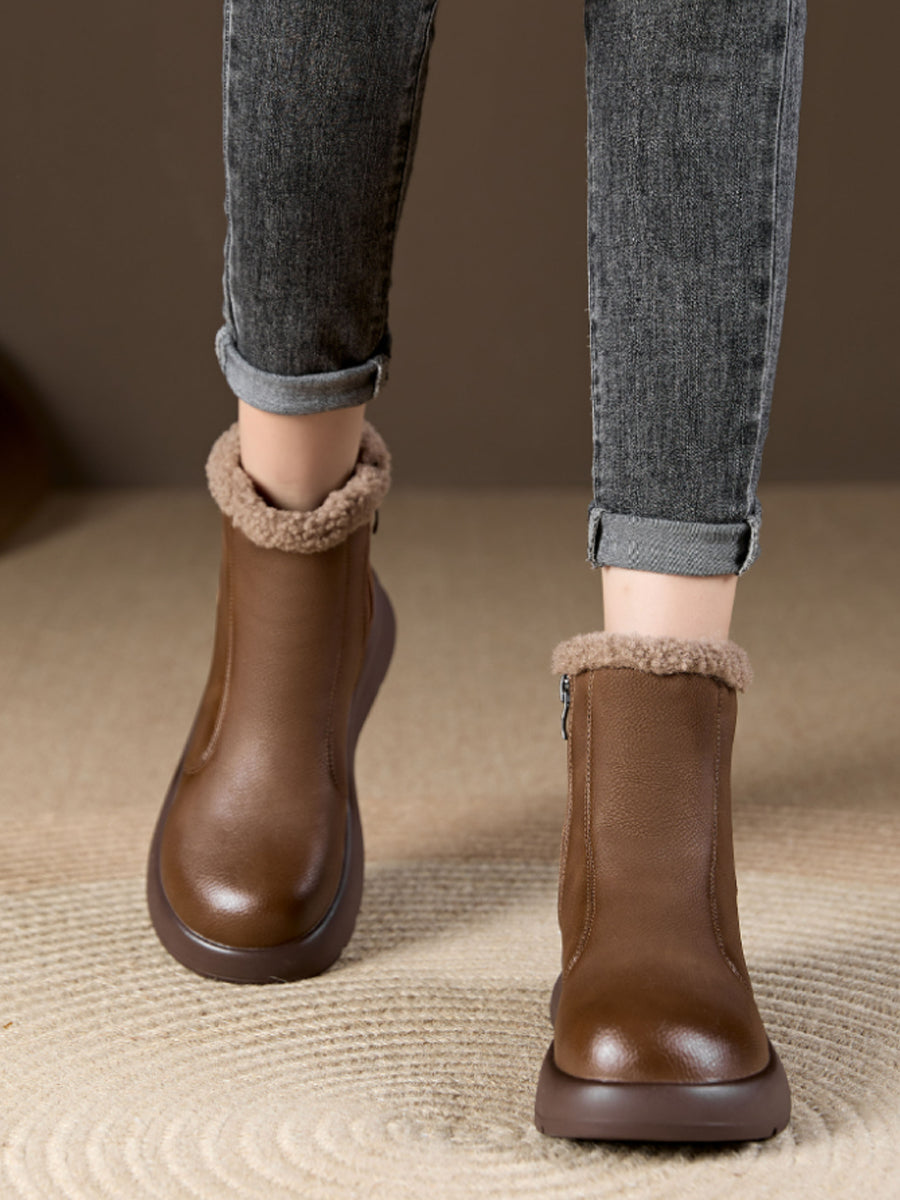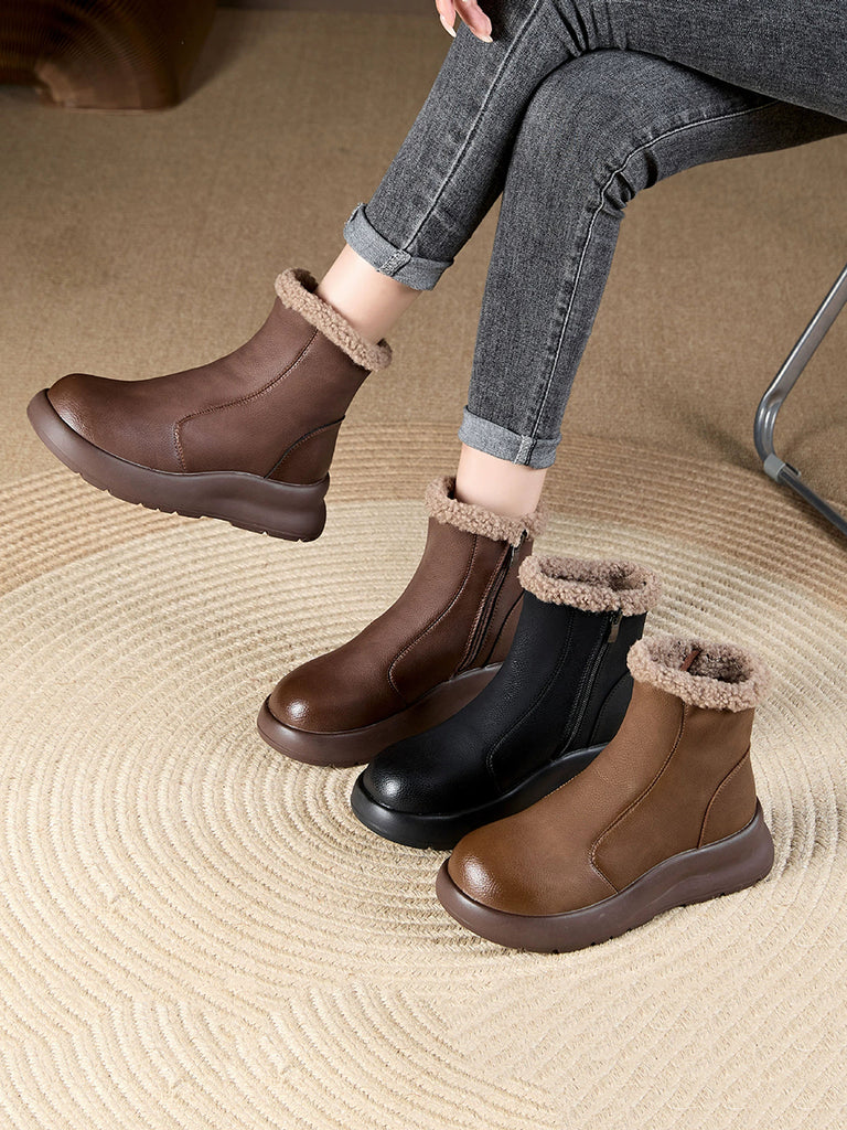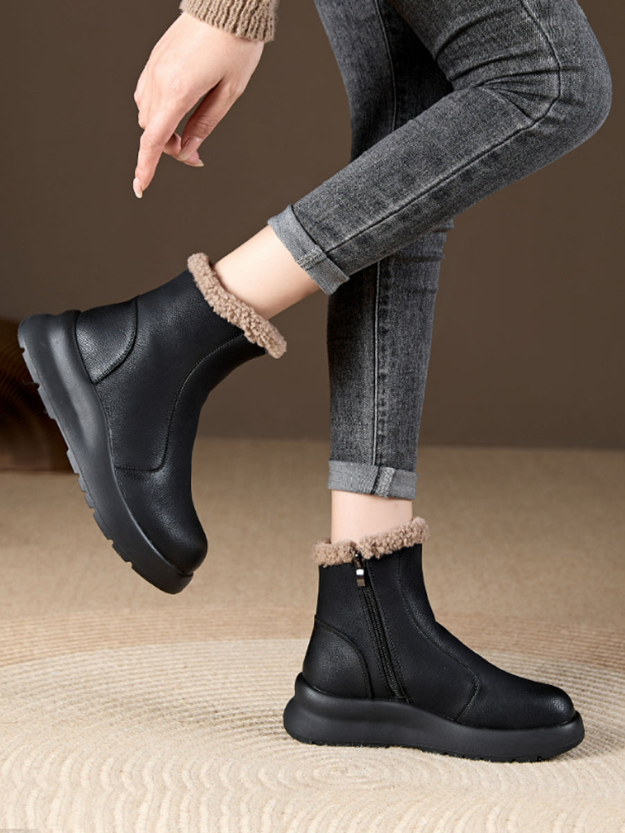 Botines casuales de invierno para mujer, de piel suave y forrados de vellón.