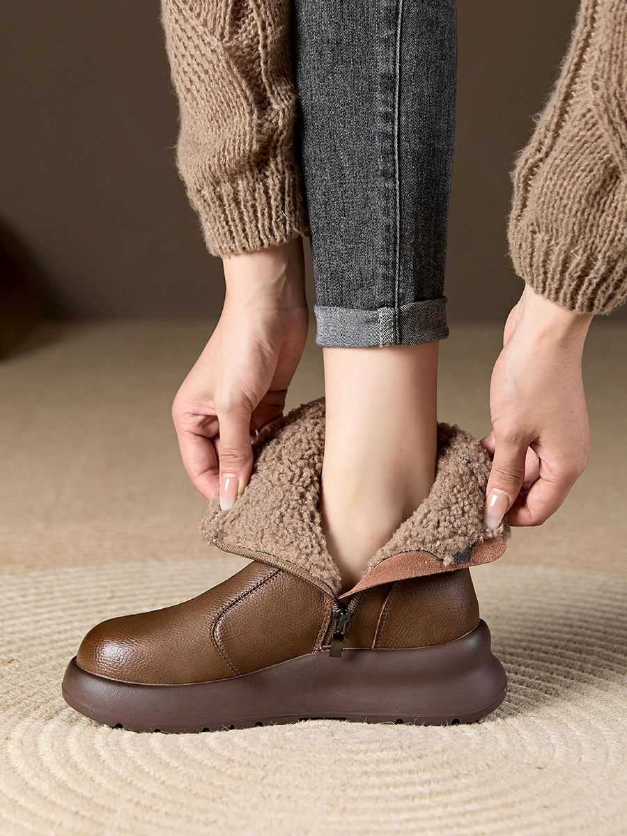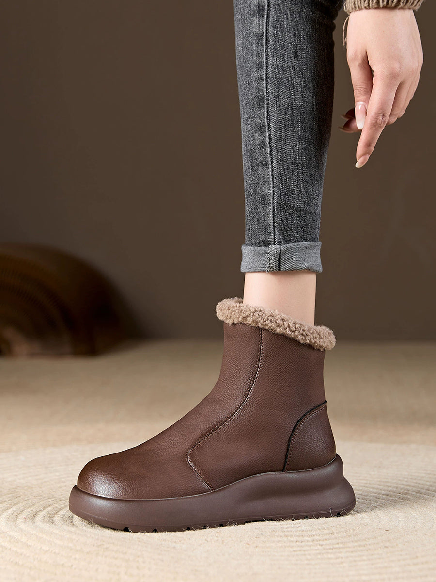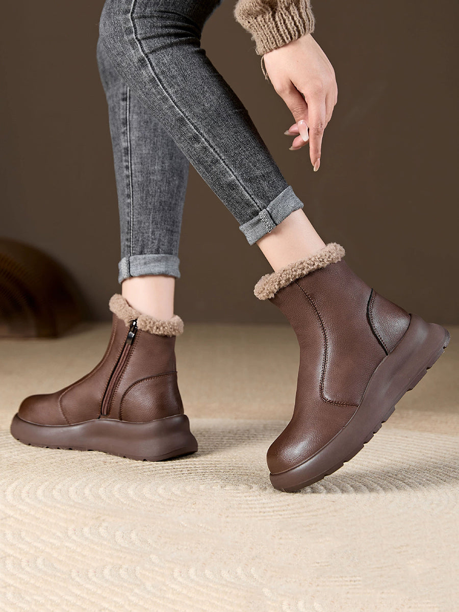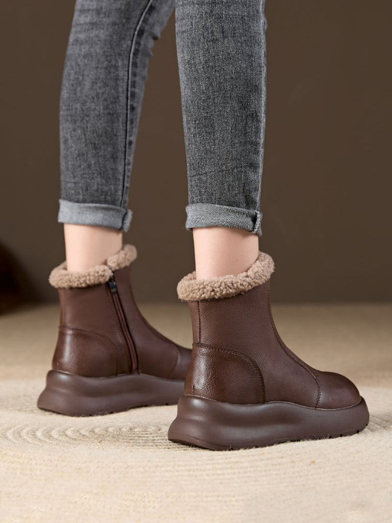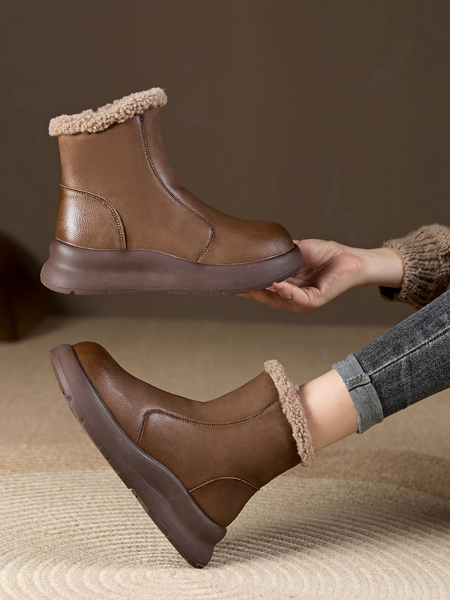 Botines casuales de invierno para mujer, de piel suave y forrados de vellón.