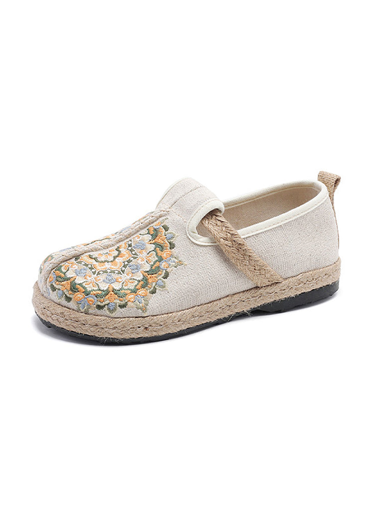 Zapatos planos de lino con bordado de flores étnicas para mujer