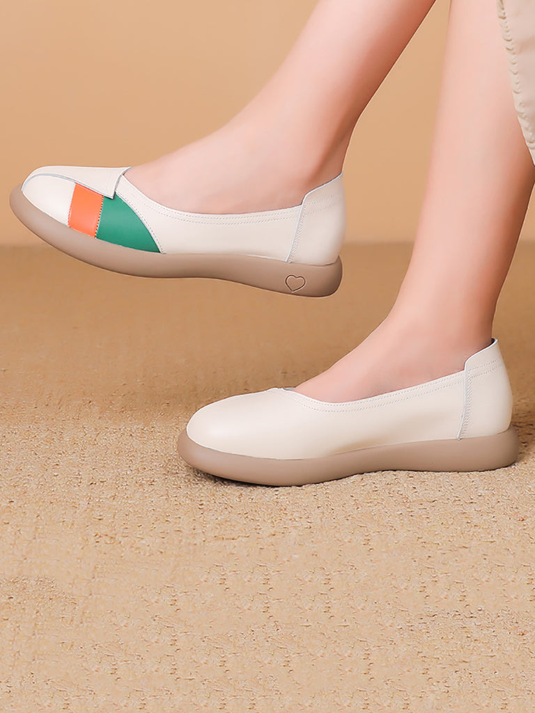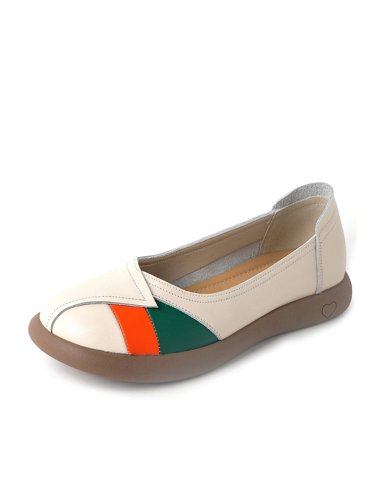 Zapatos planos de cuero con bloques de colores artísticos y empalmados para mujer