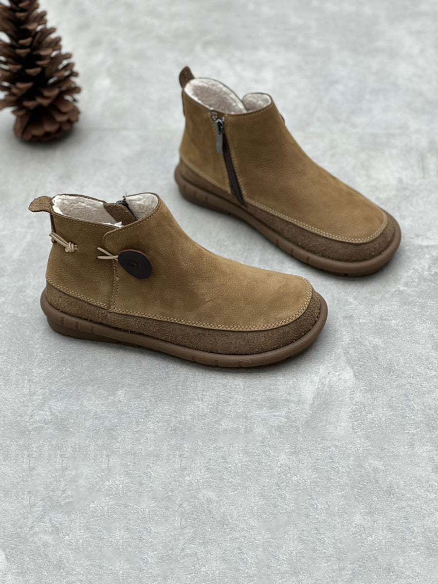 Zapatos planos retro de piel auténtica con forro polar para mujer