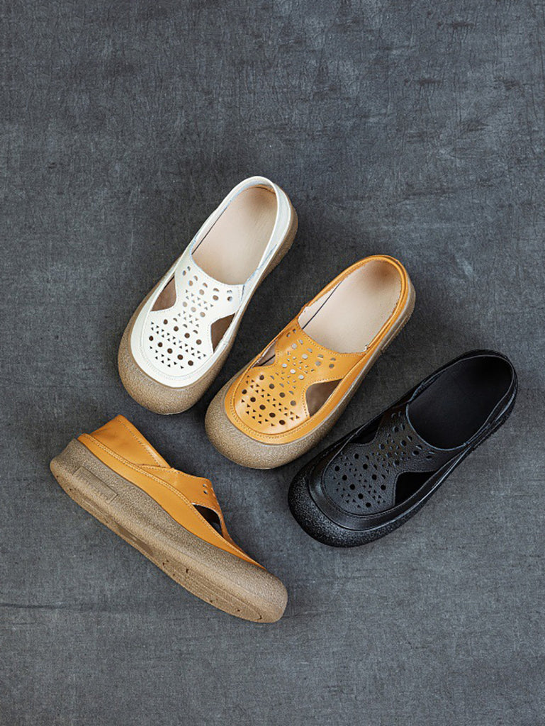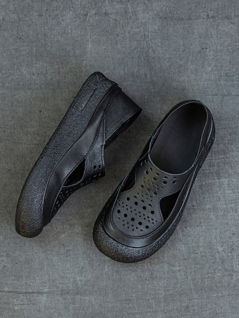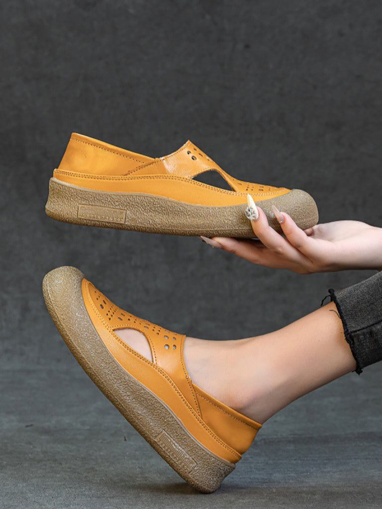Zapatos planos de cuero calados informales de verano para mujer
