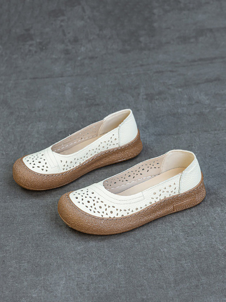 Zapatos de verano de piel auténtica con agujeros para mujer