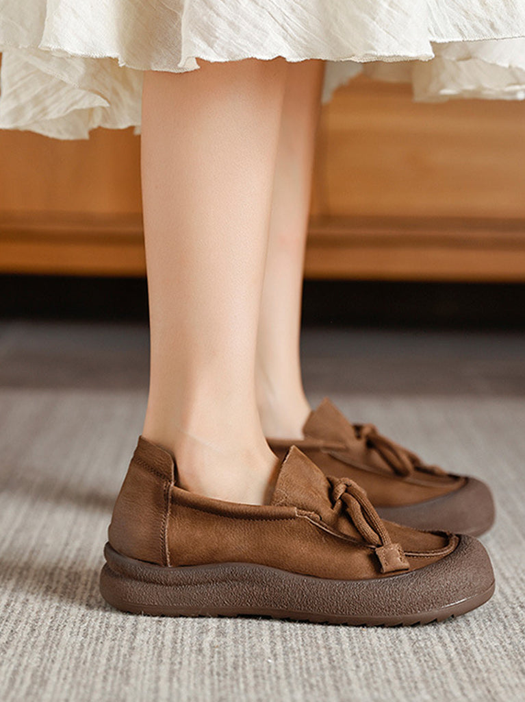 Zapatos planos vintage con correa de cuero genuino para mujer