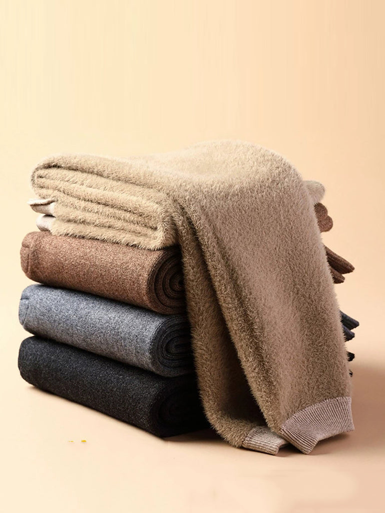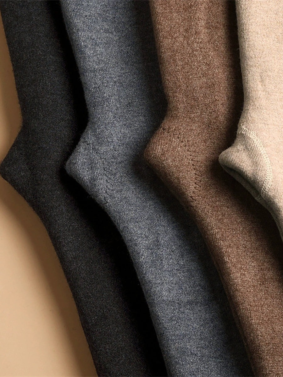 Leggings de lana forradas con forro polar, color liso, cálidas para el invierno