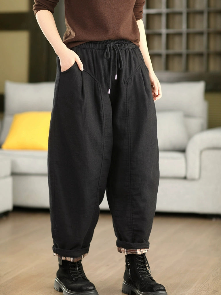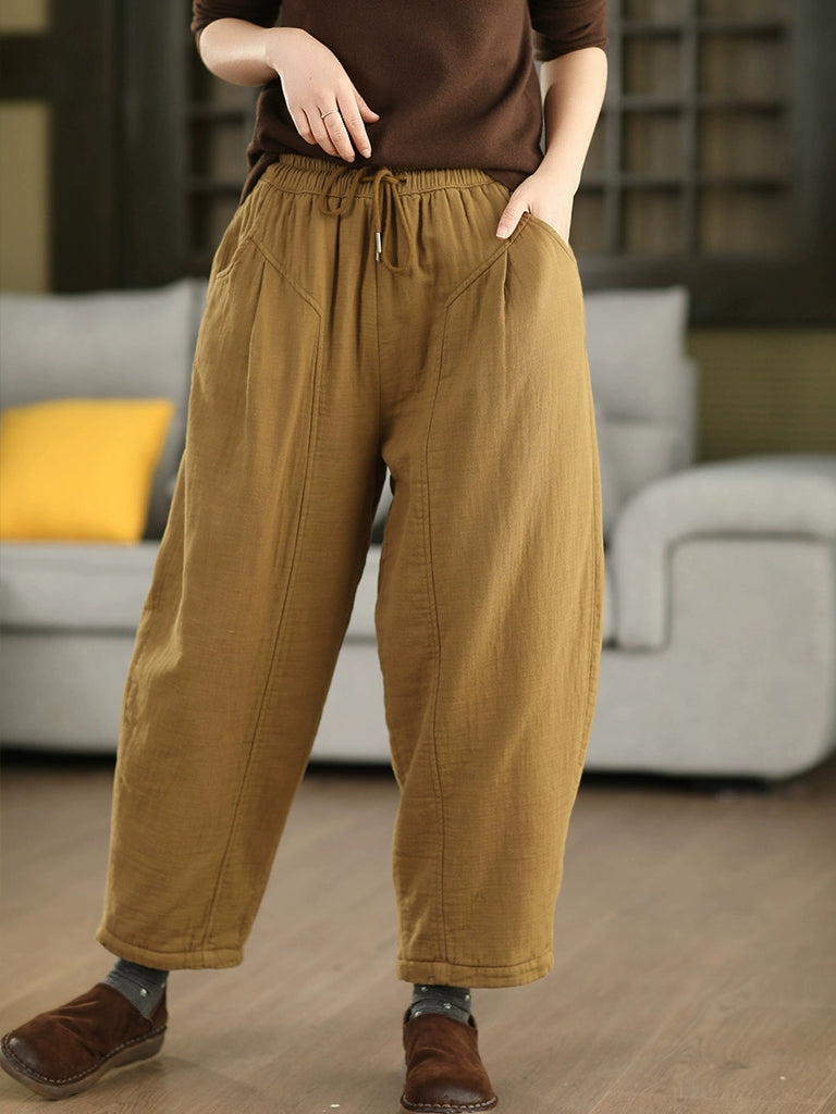 Pantalones bombachos acolchados de algodón de color liso para mujer, ideales para el invierno.