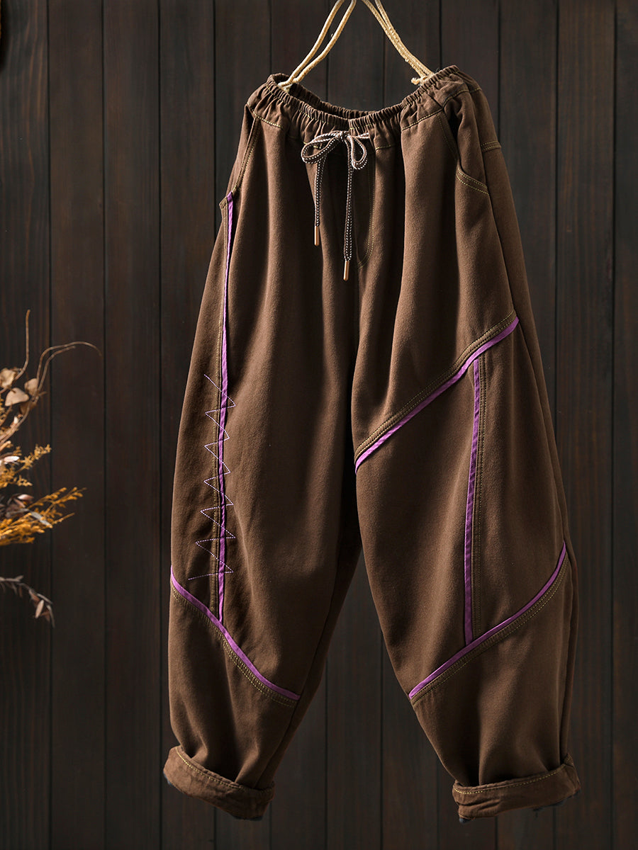 Pantalones tipo harem de algodón con forro polar y diseño vintage para mujer, ideales para el invierno.