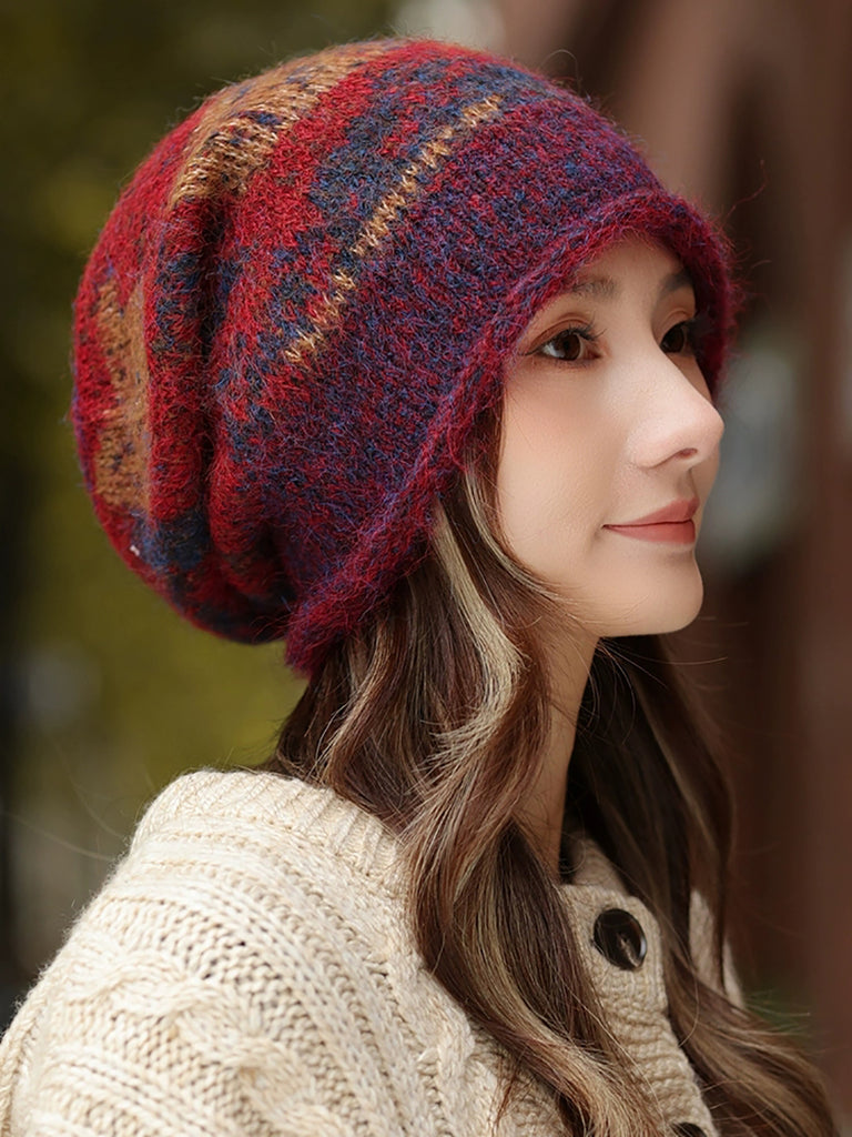 Gorro de punto suave de invierno, cálido y artístico, de mezcla de colores.