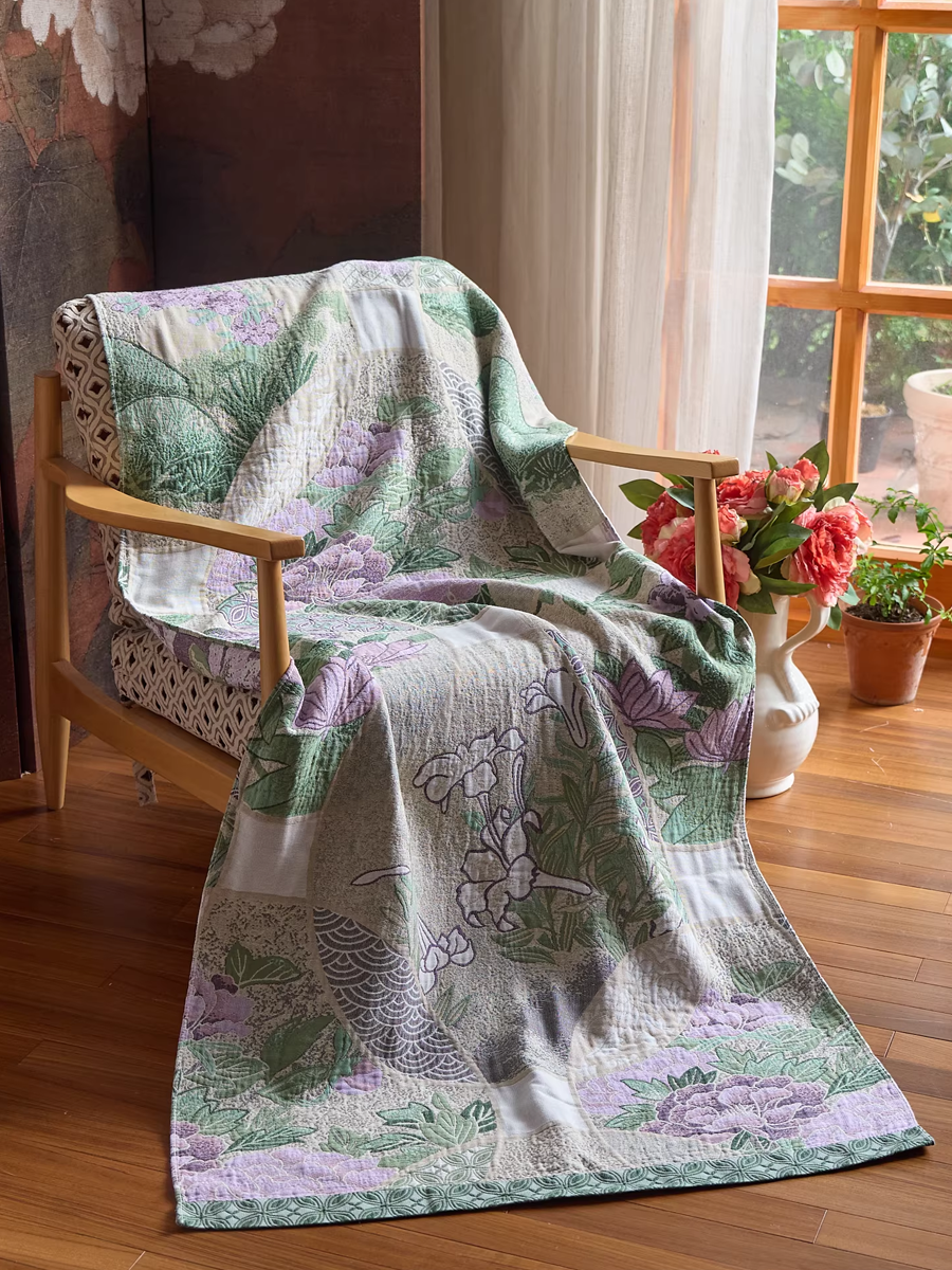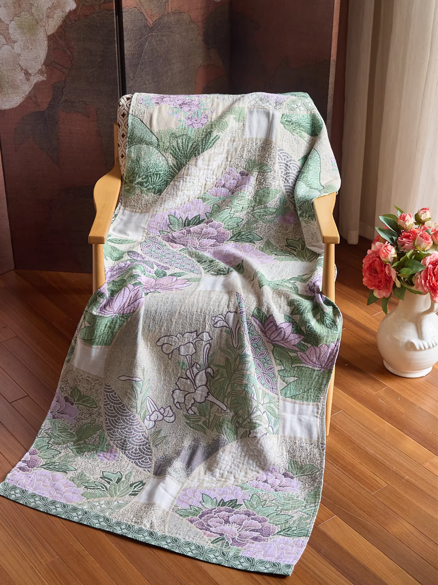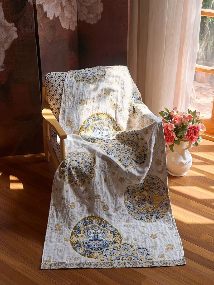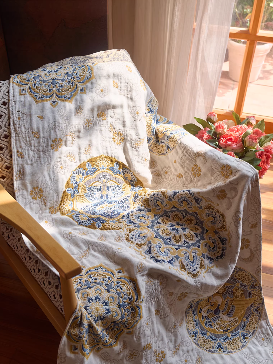 Juego de 3 toallas de algodón y cáñamo con borlas florales estilo retro (copia)