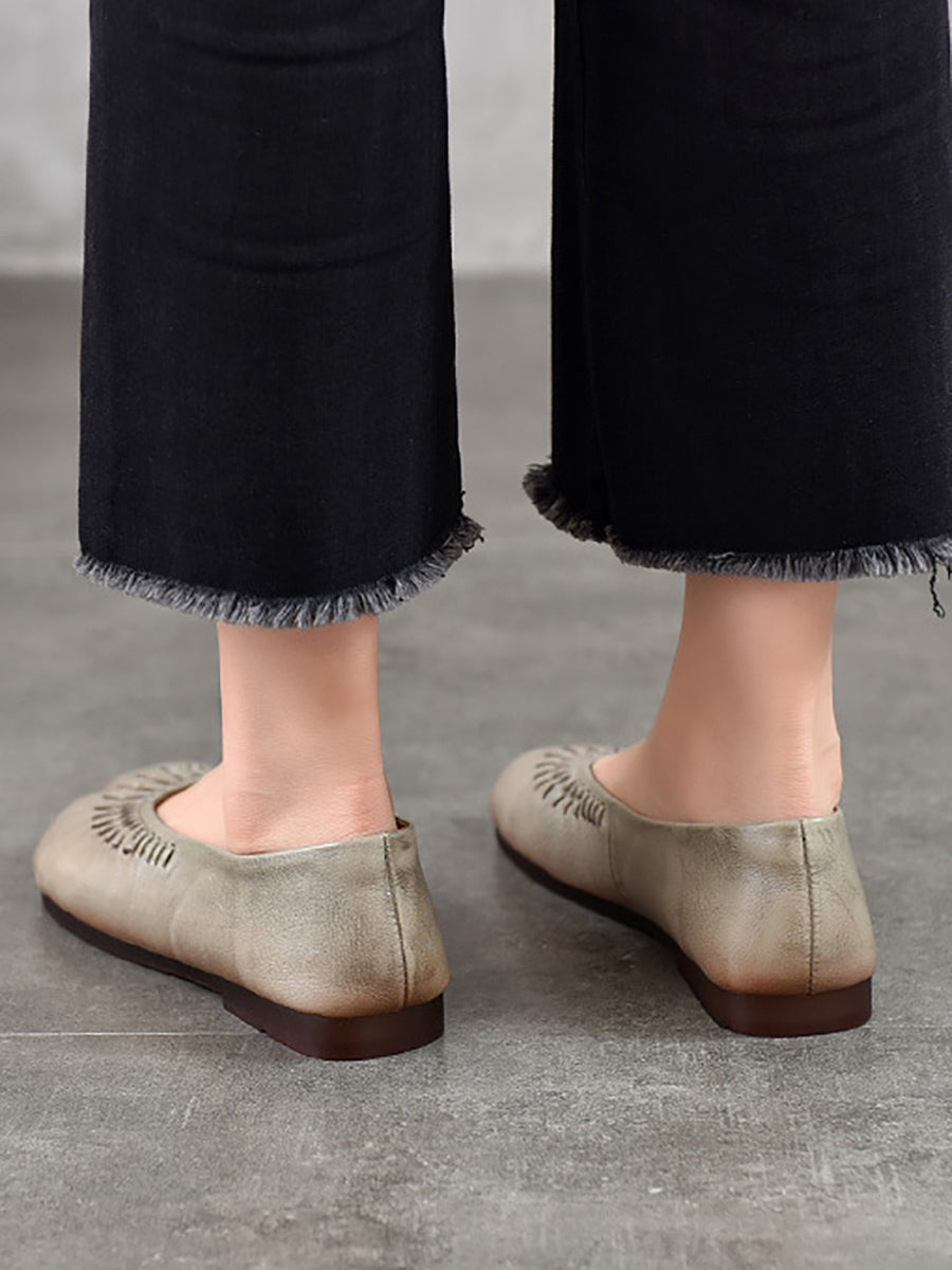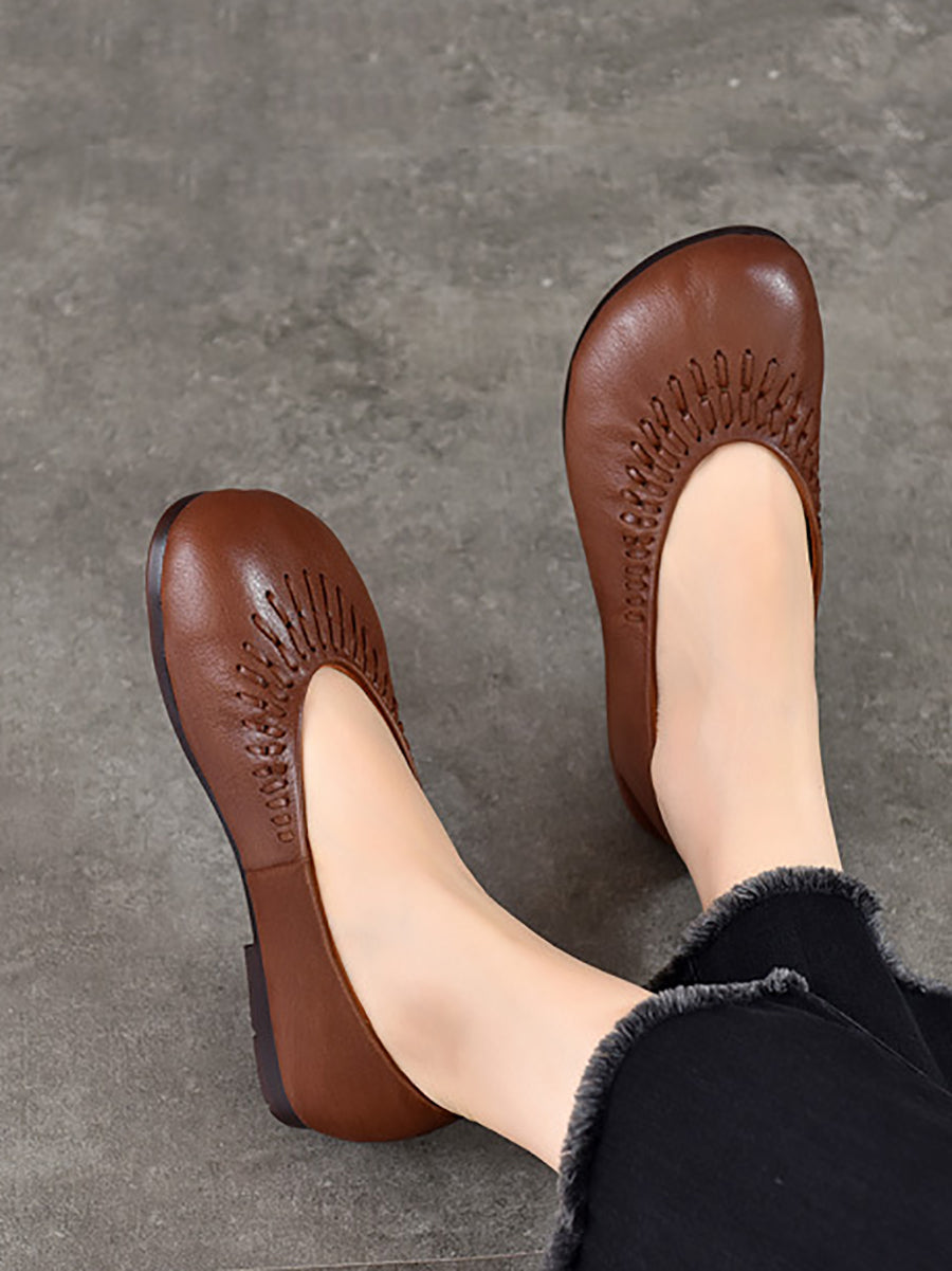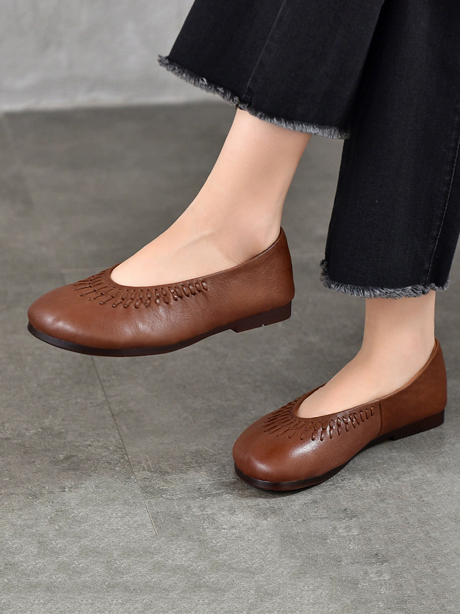 Zapatos planos vintage de piel auténtica para mujer, de verano