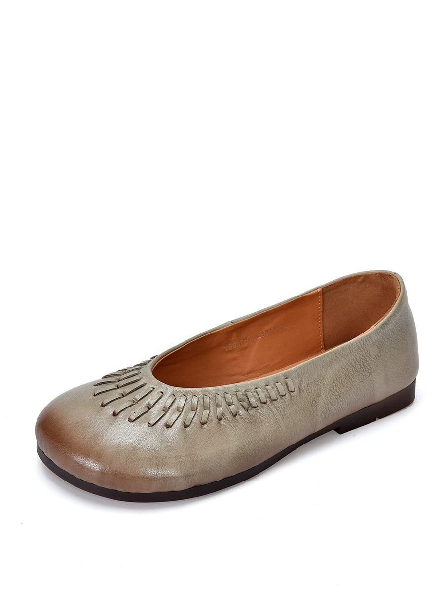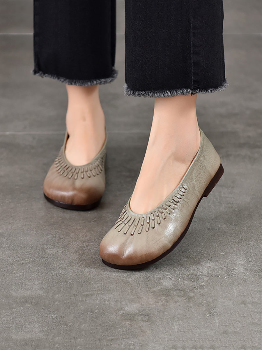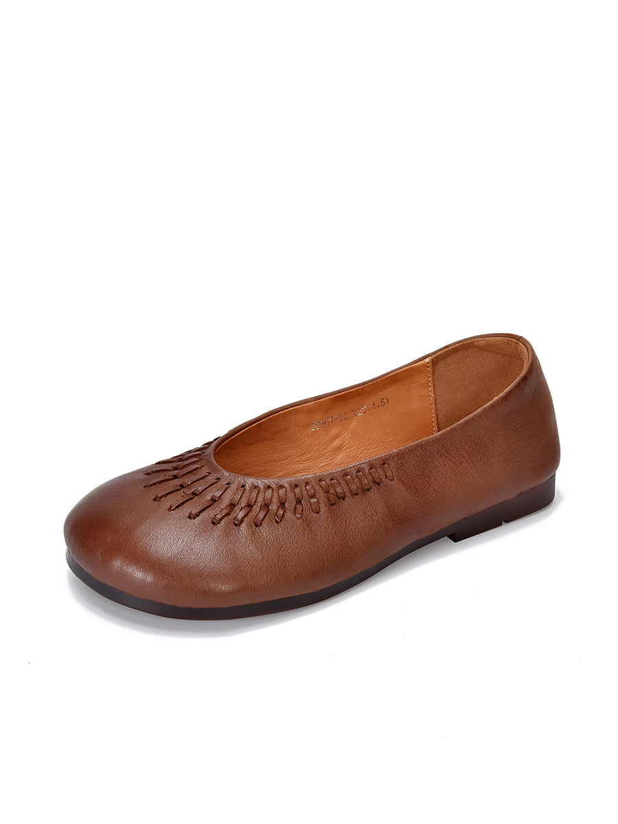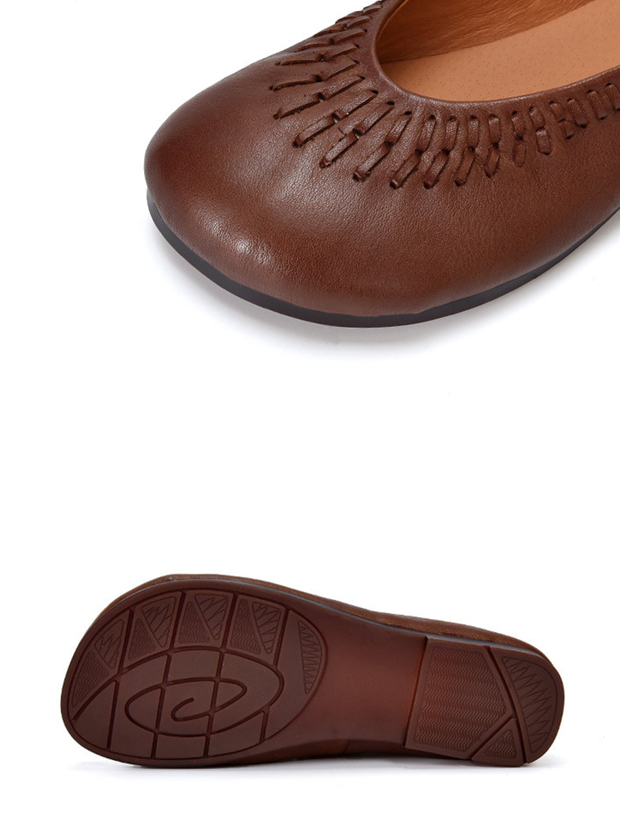 Zapatos planos vintage de piel auténtica para mujer, de verano