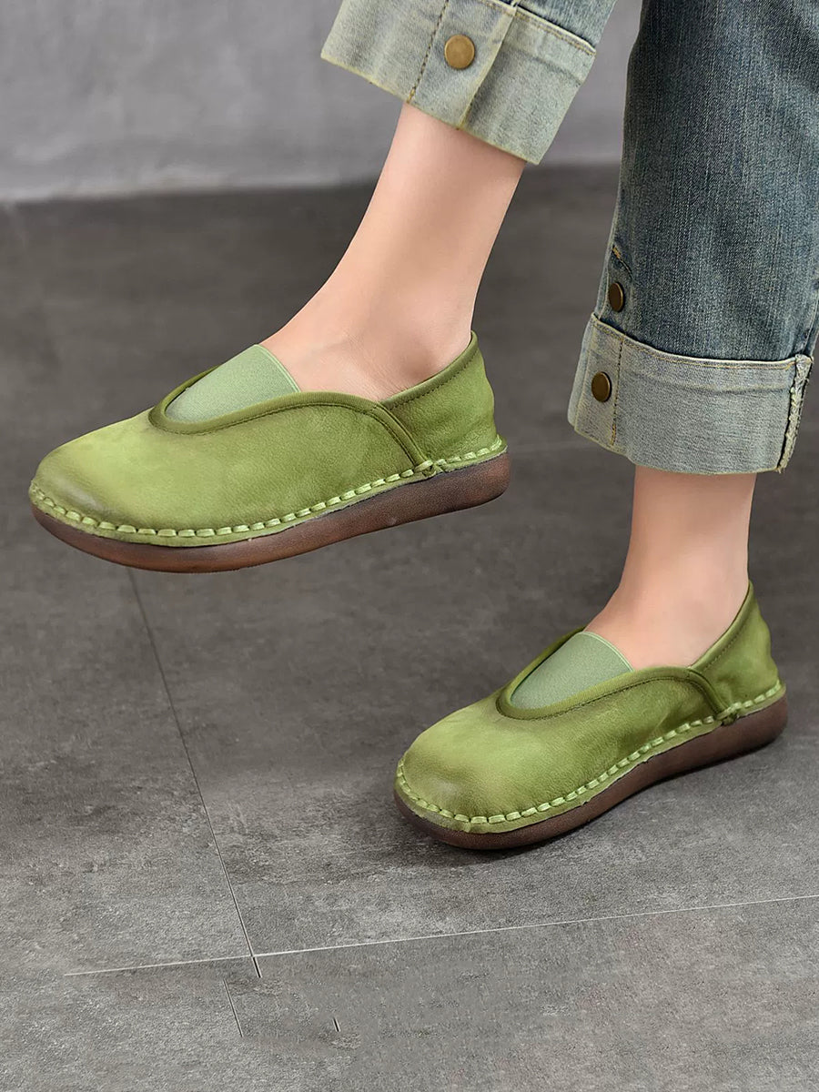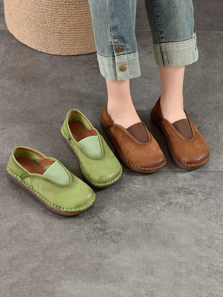 Zapatos planos vintage de piel auténtica con empalmes para mujer