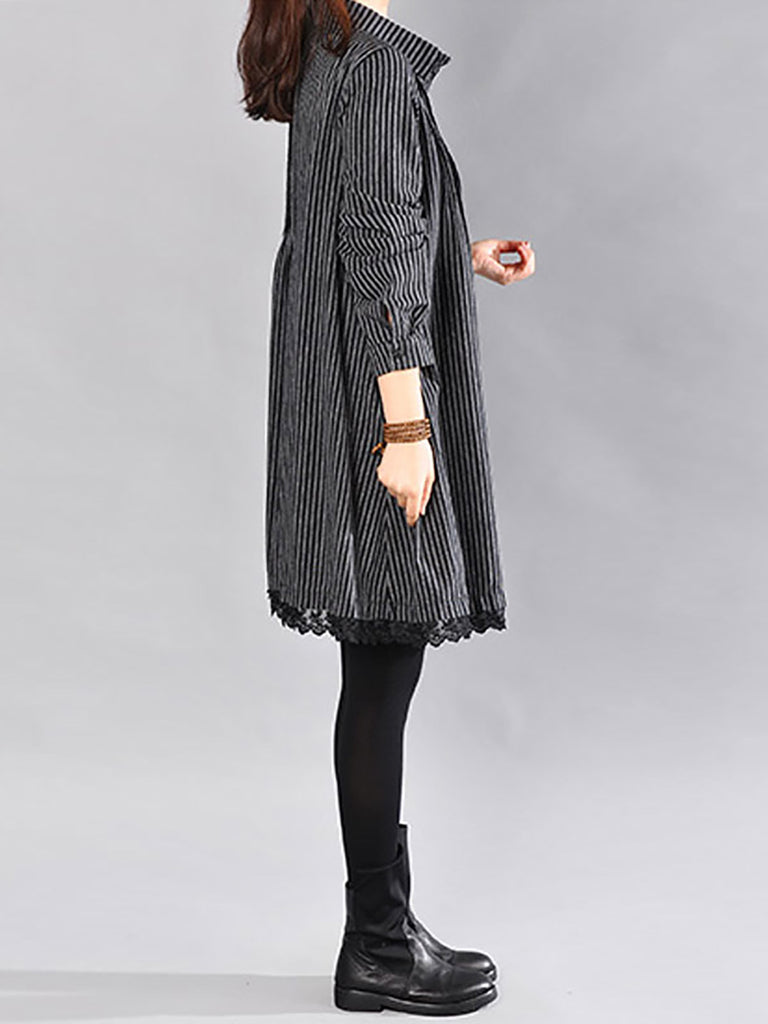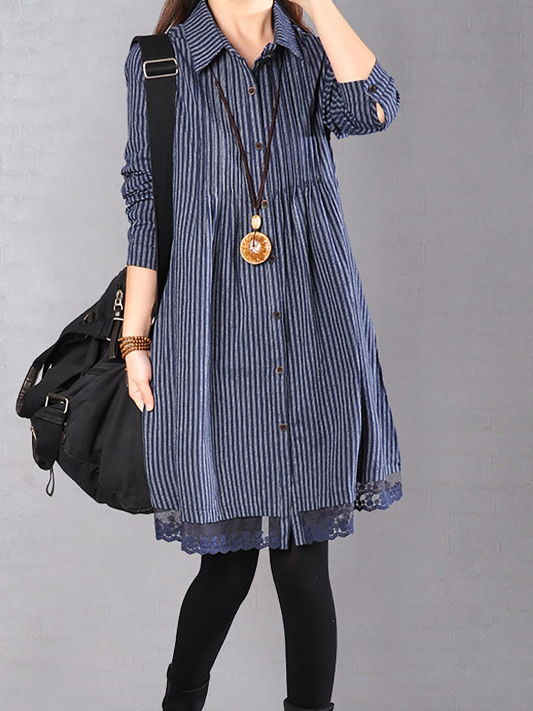 Vestido holgado de lino y algodón con dobladillo de encaje y estampado de talla grande