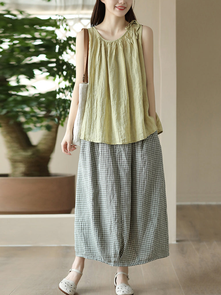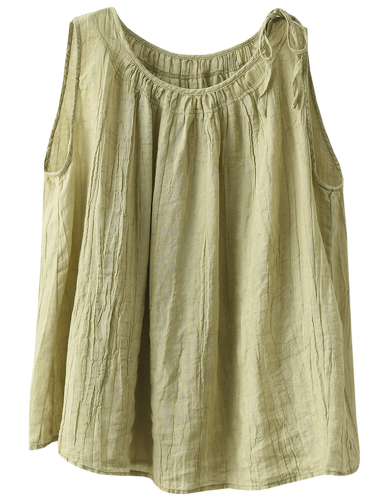 Chaleco de ramio holgado con cordón de color liso retro de talla grande para mujer