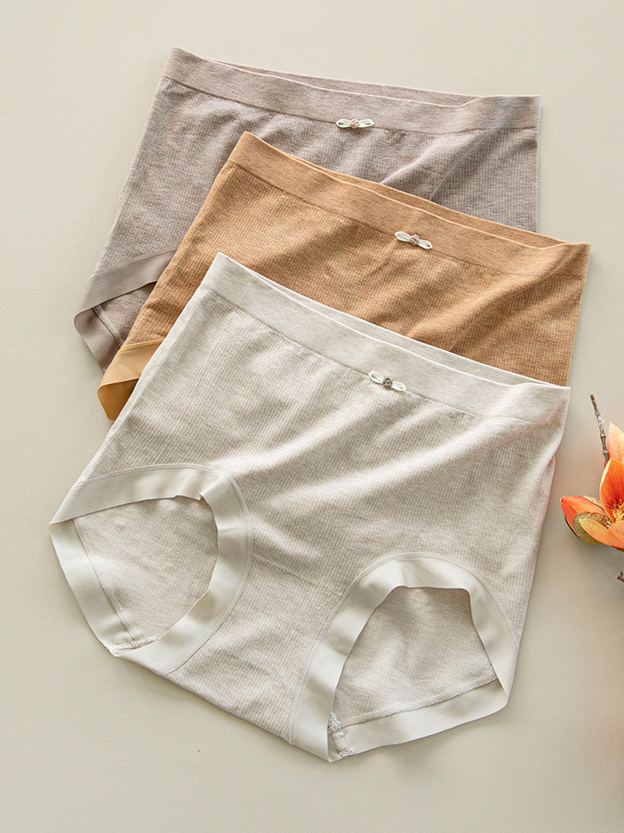 6 pares de ropa interior de punto de cintura alta de color puro para mujer