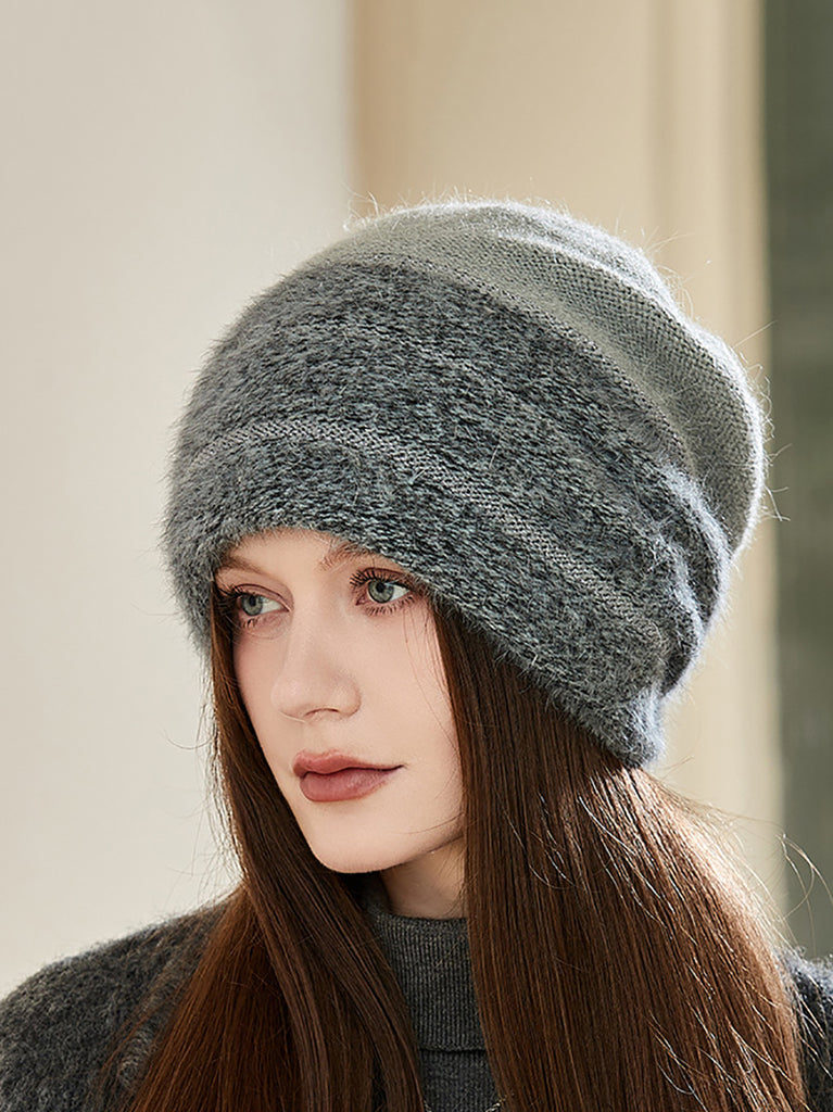 Gorro de punto cálido con bloques de colores para invierno para mujer