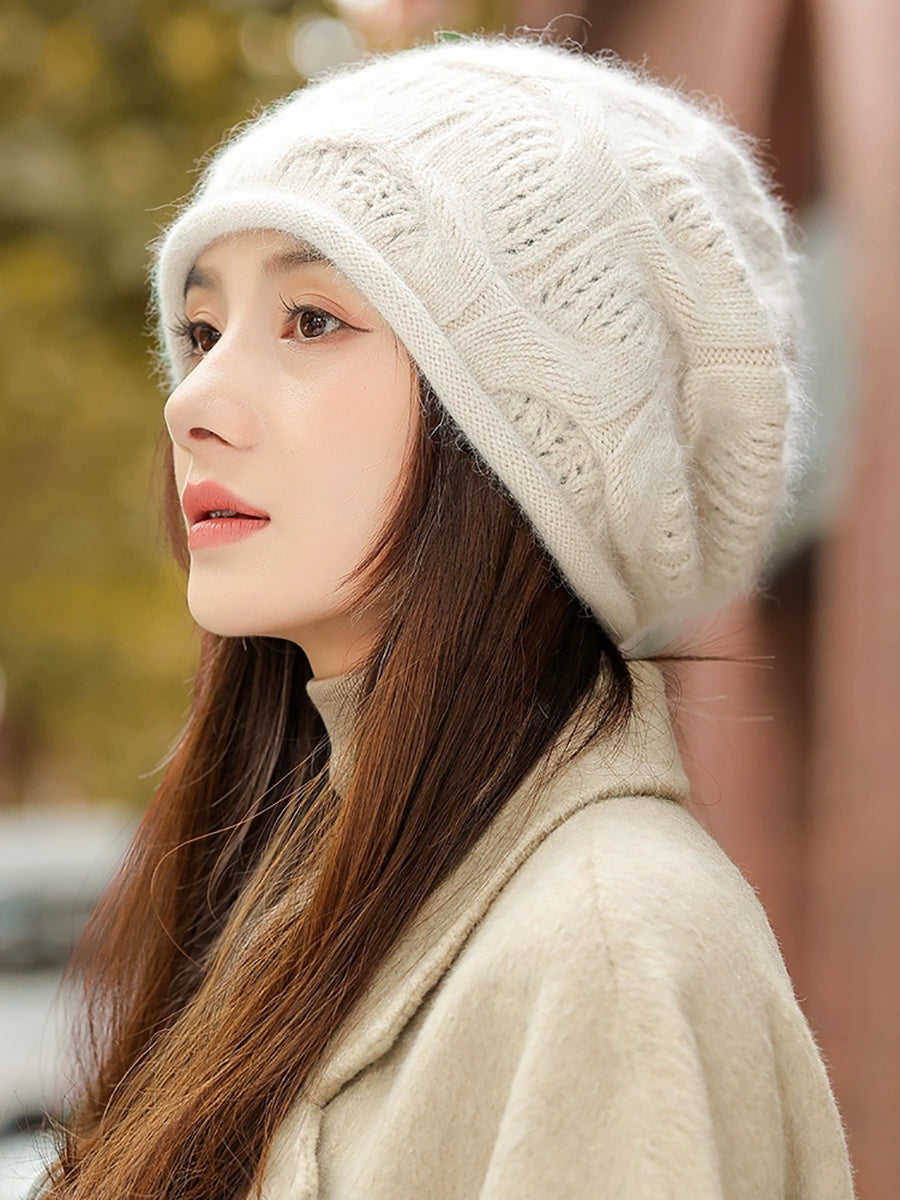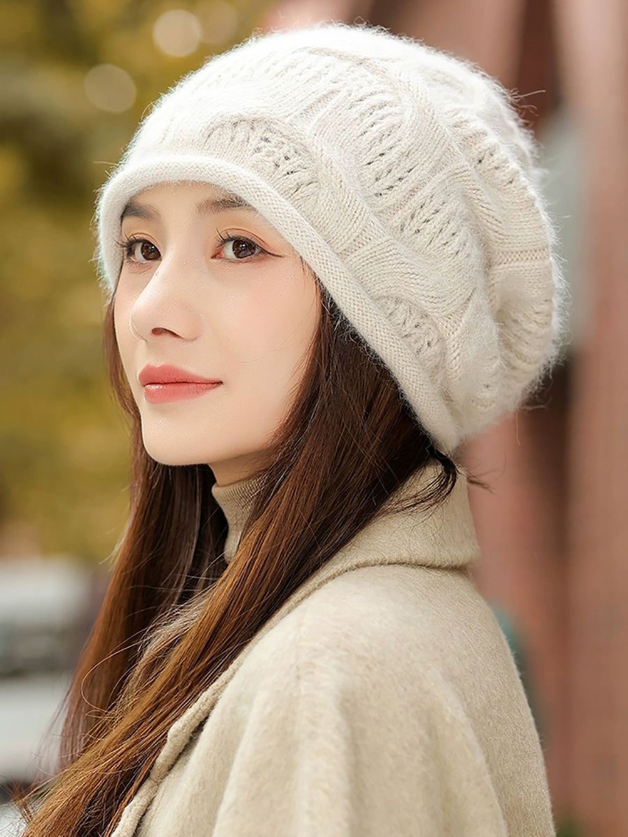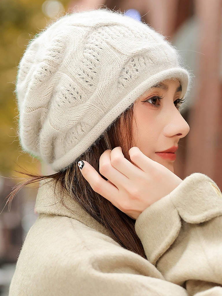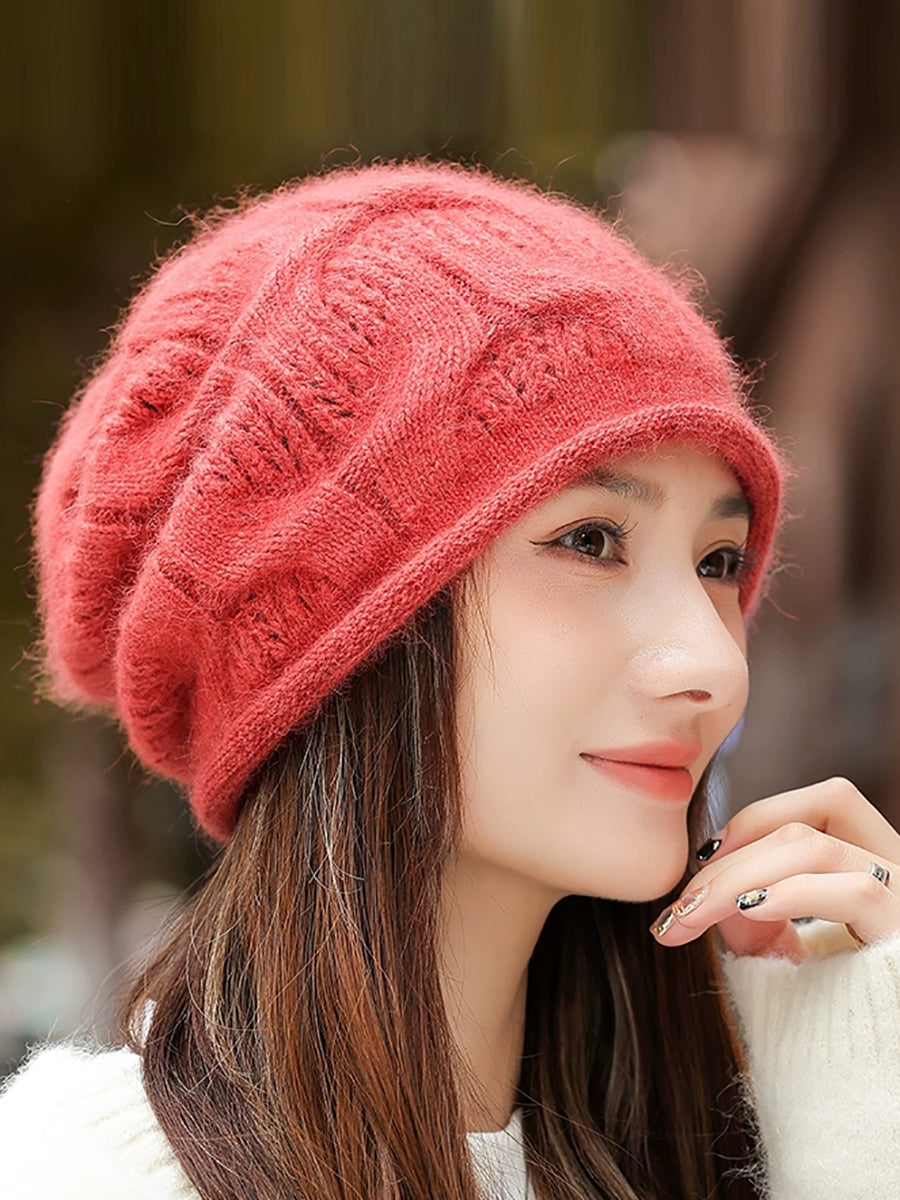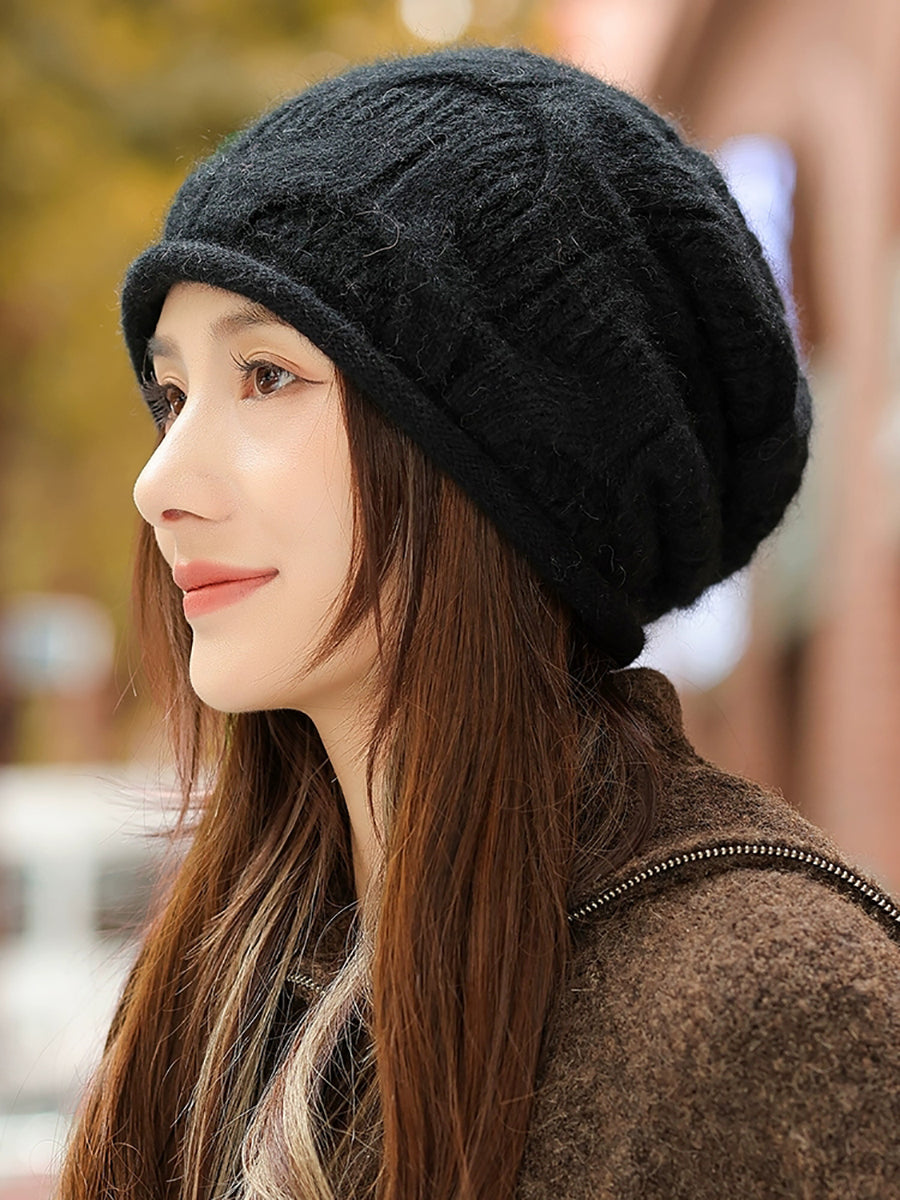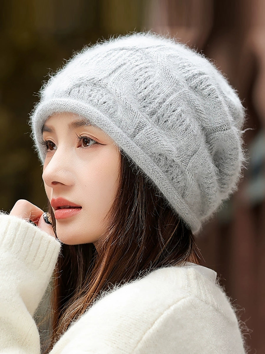 Gorro de invierno para mujer, de punto, de color liso, cálido.