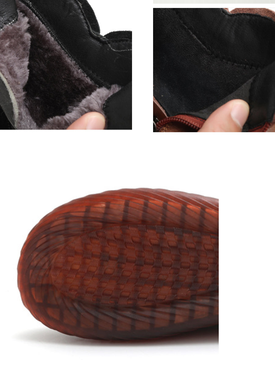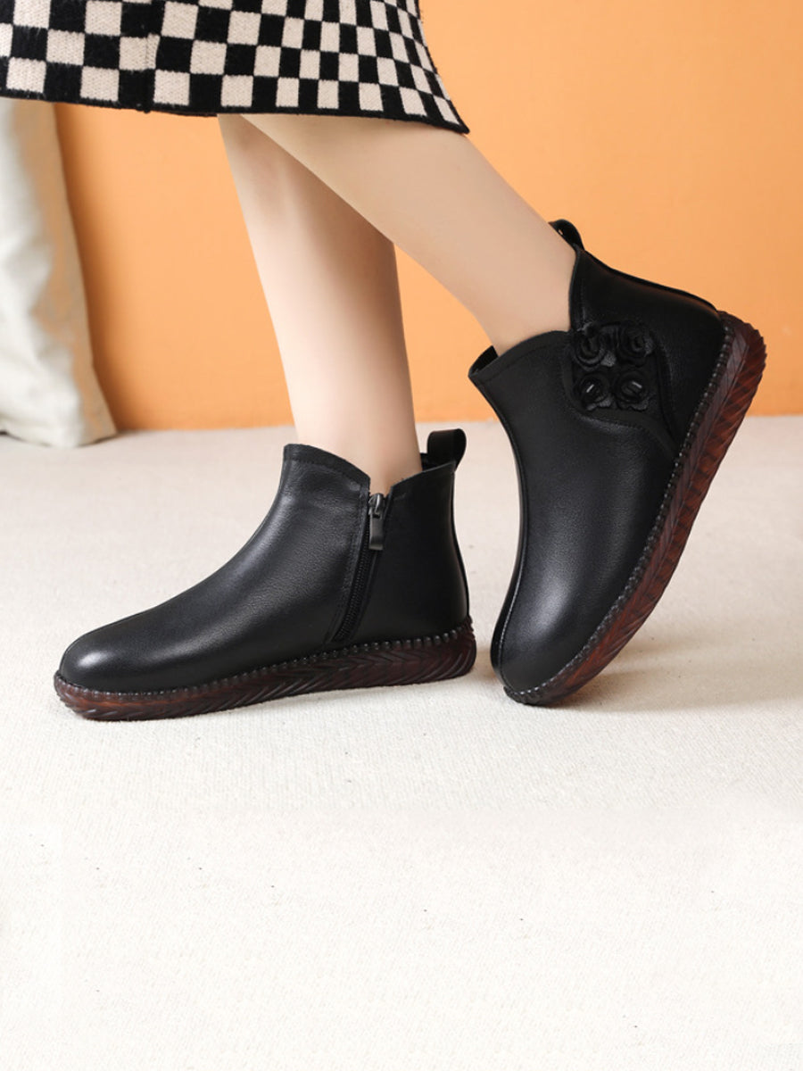 Botas de invierno vintage de piel con flores y forro polar para mujer