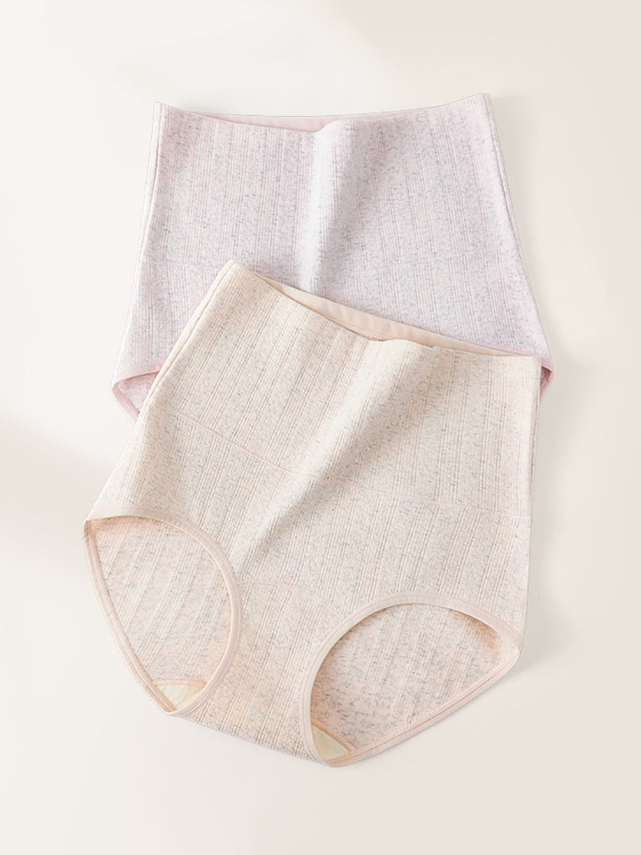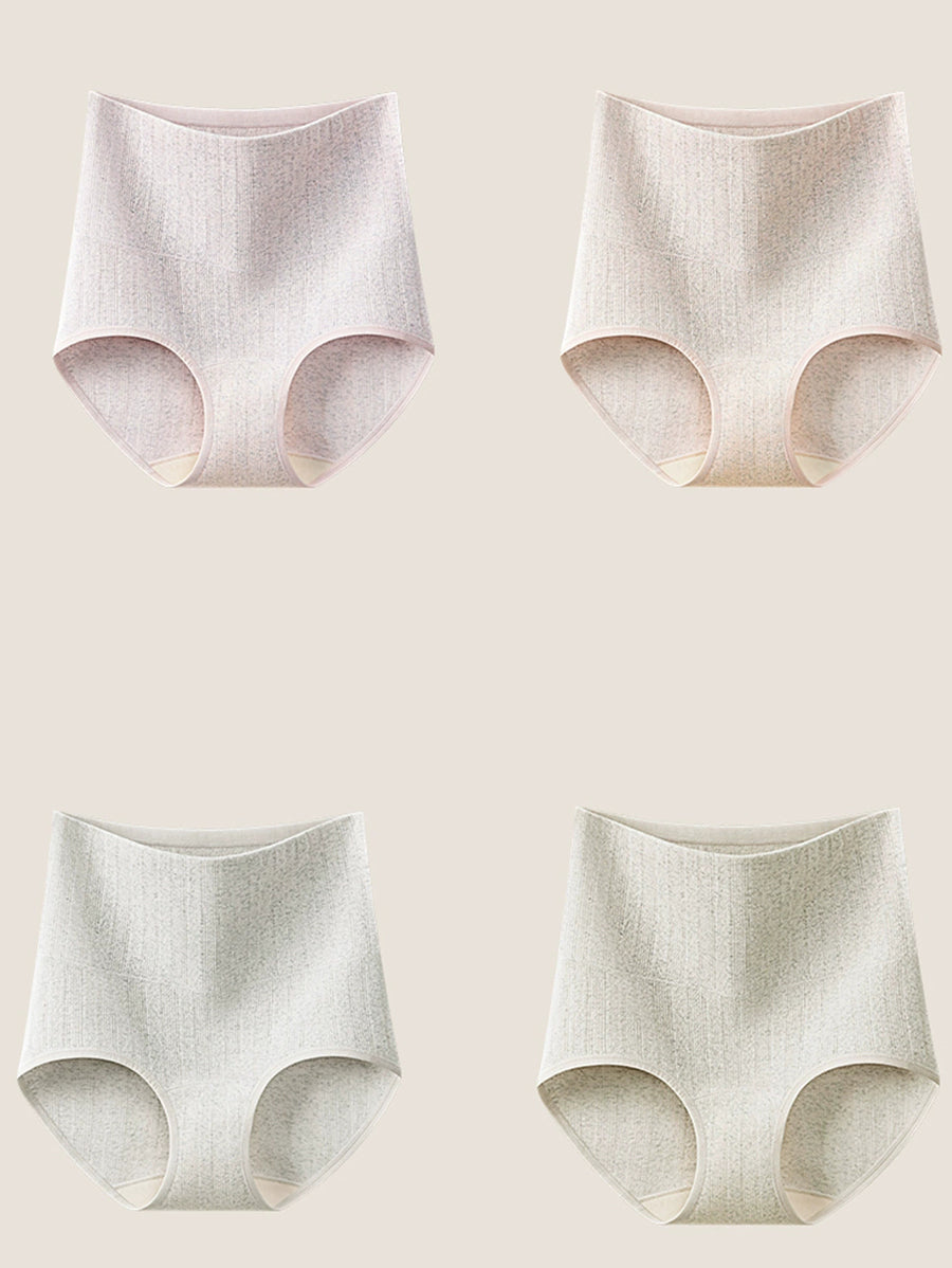 4 piezas de ropa interior de cintura alta de color puro y artístico para mujer