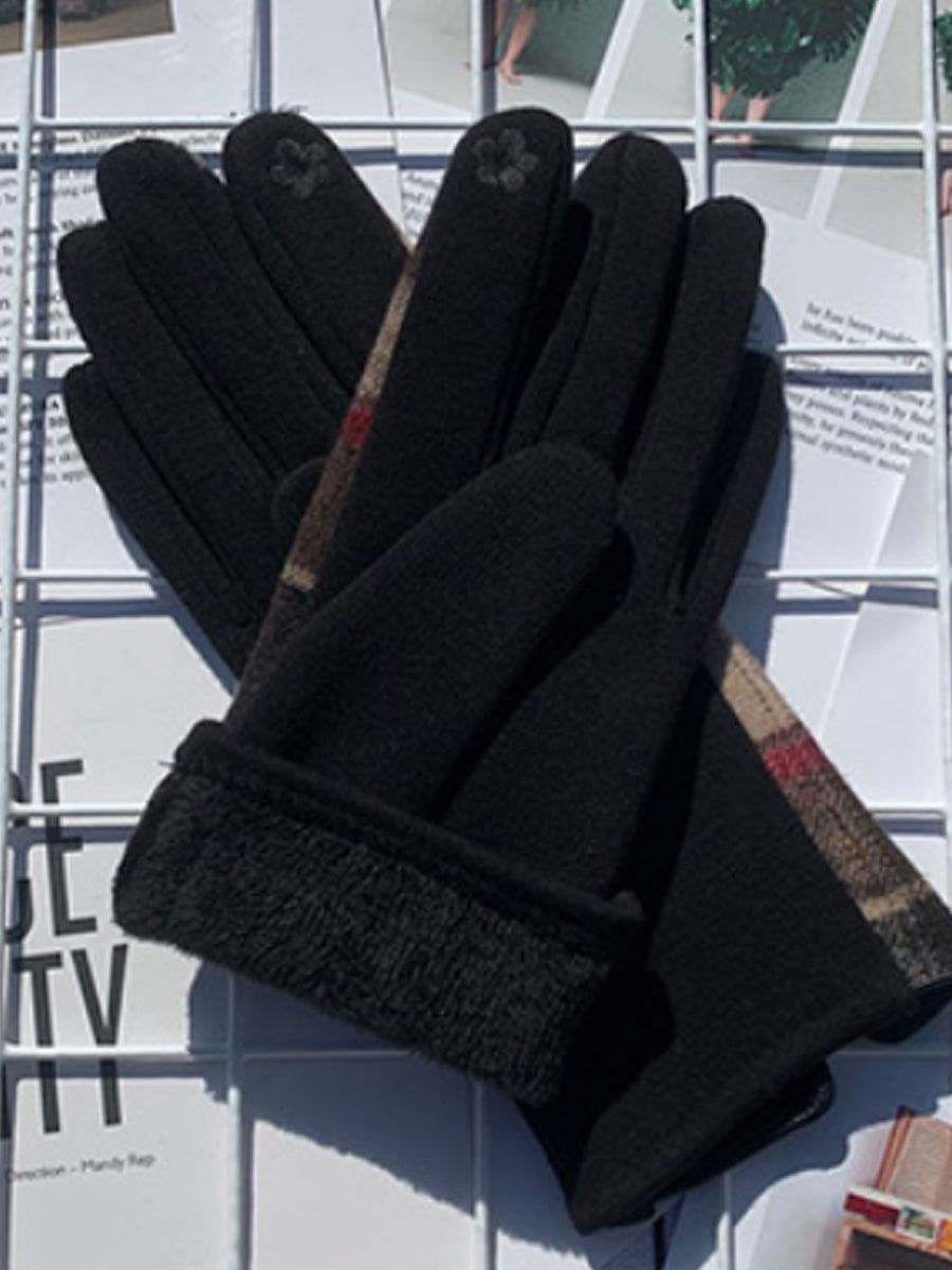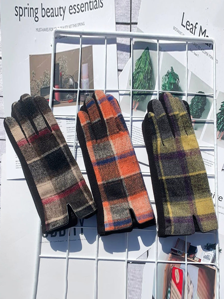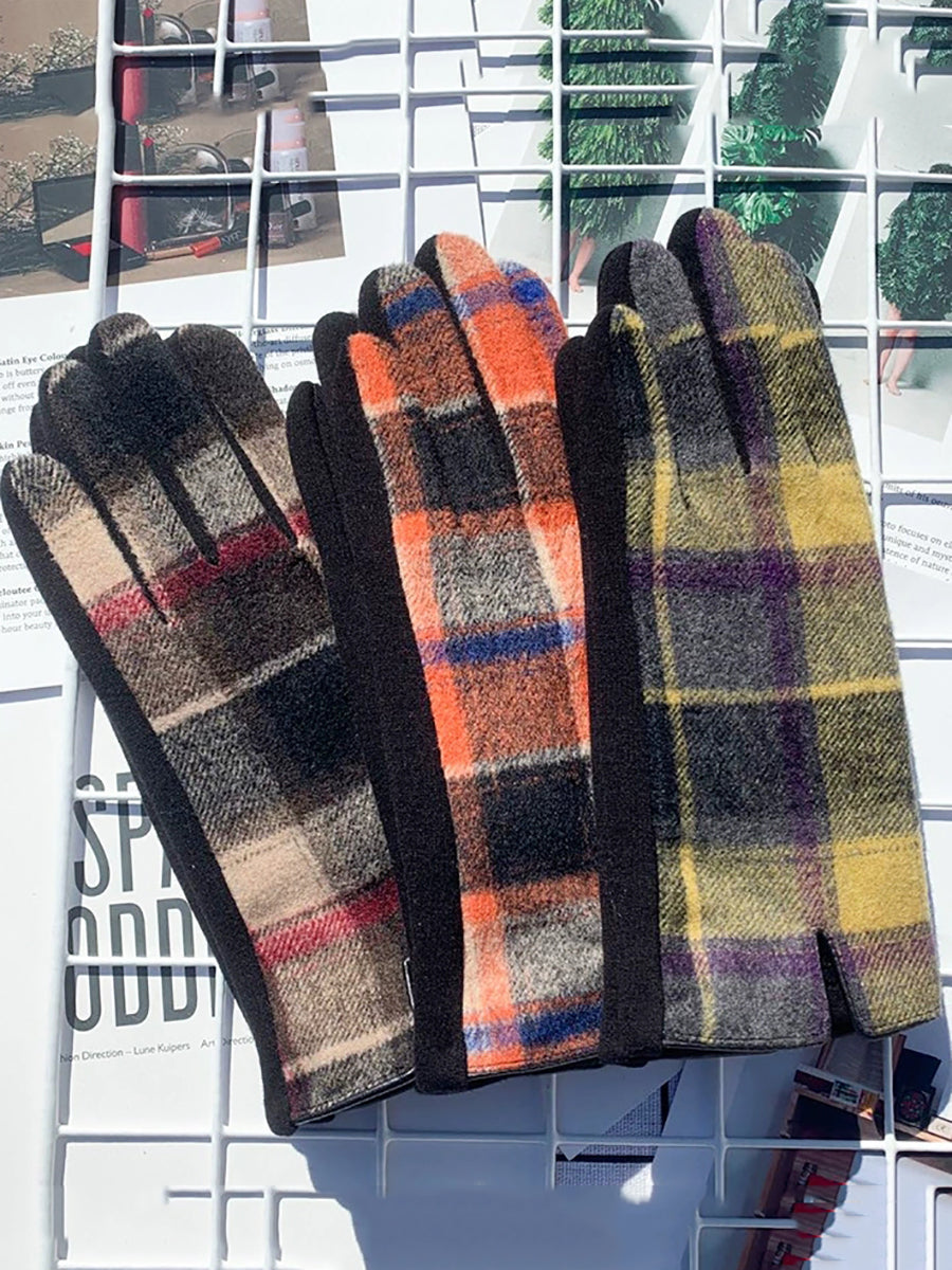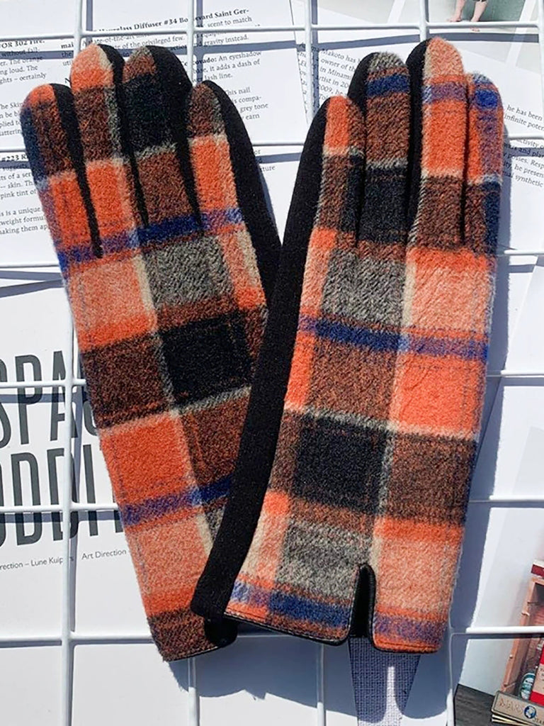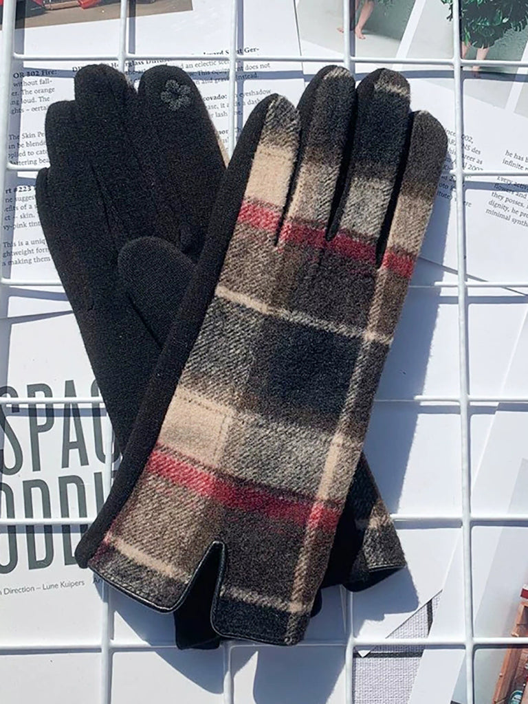 Guantes de ciclismo con pantalla táctil cálidos y a cuadros étnicos para mujer