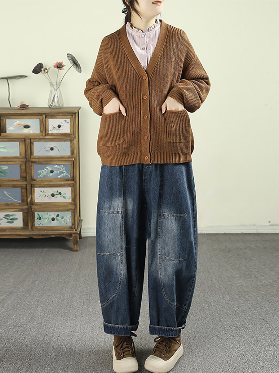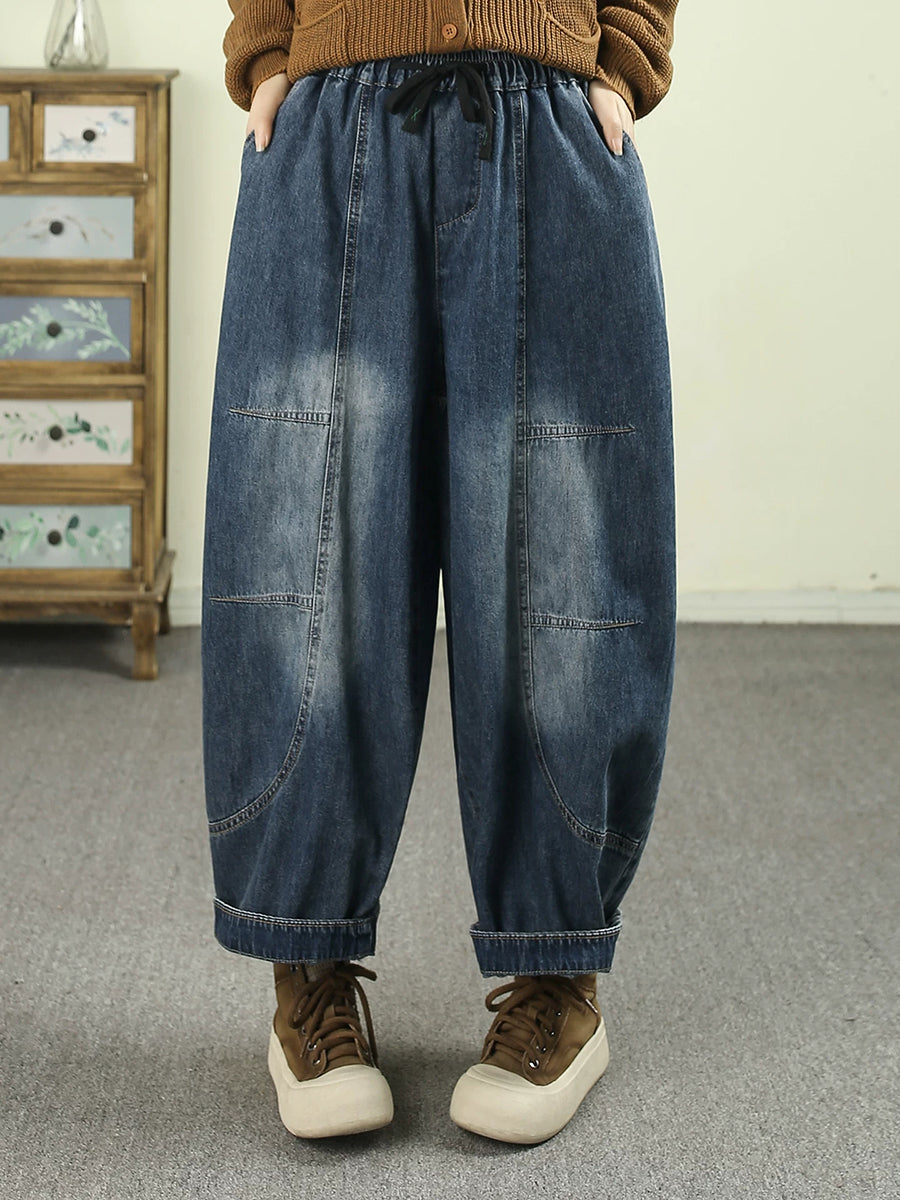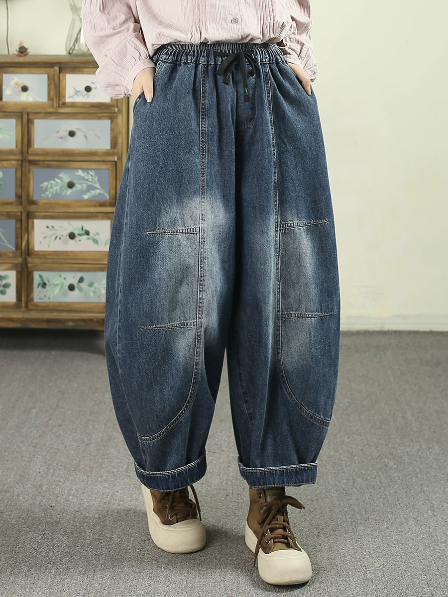 Pantalones harén de mezclilla vintage empalmados para mujer de primavera