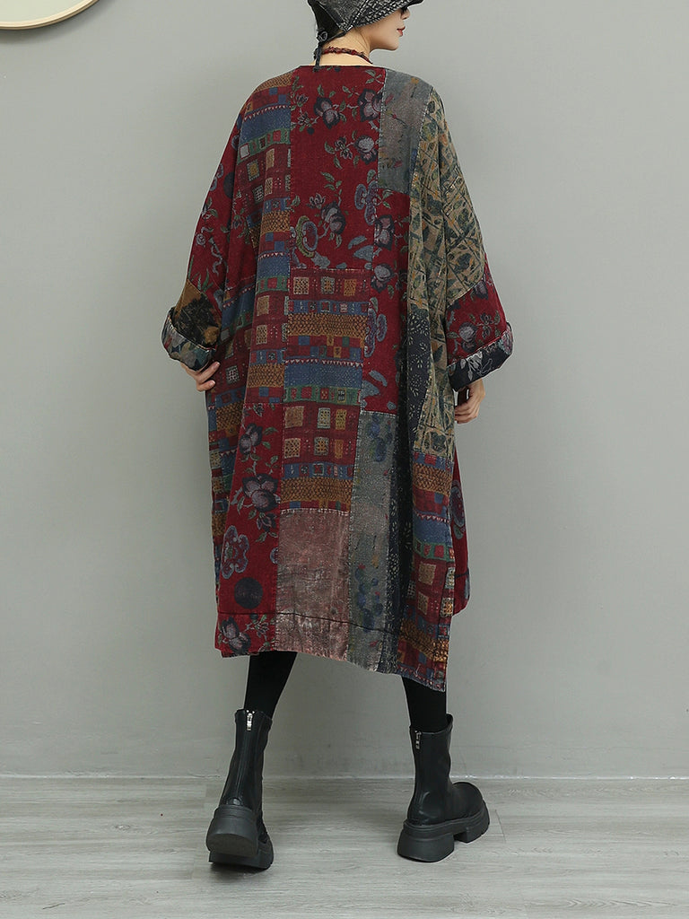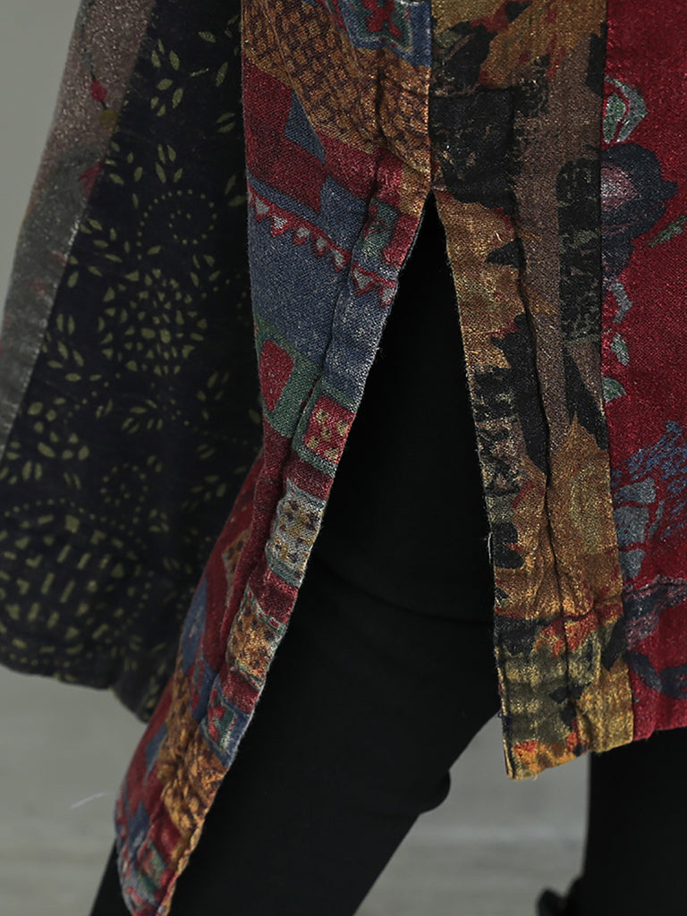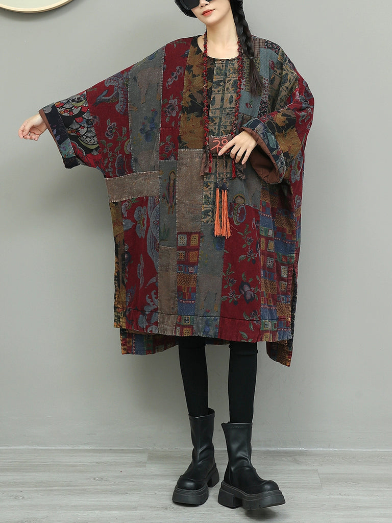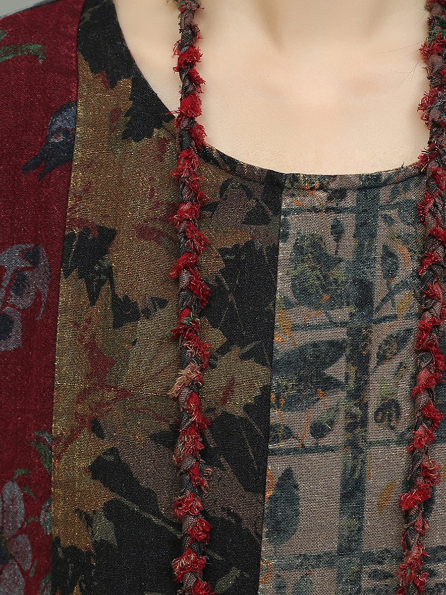 Vestido de algodón con patchwork y flores de otoño para mujer