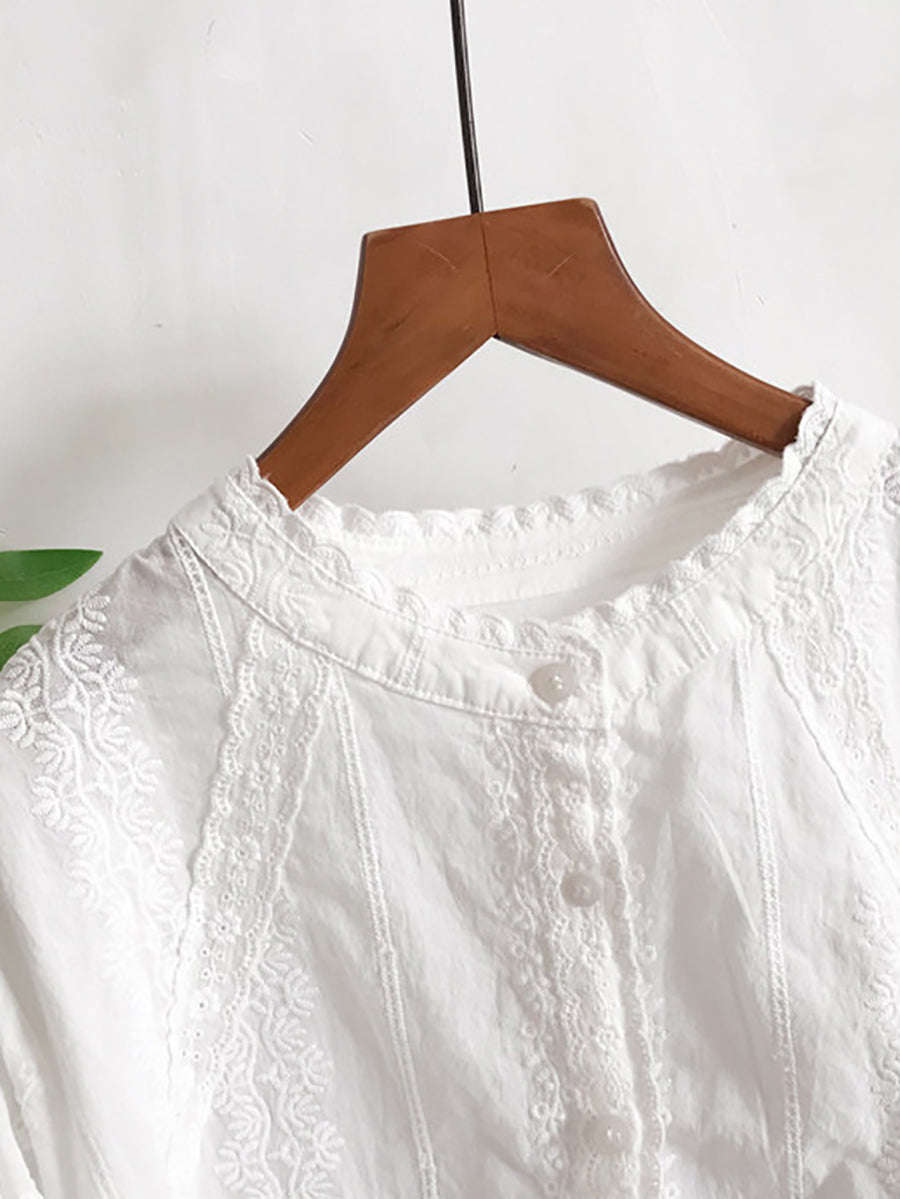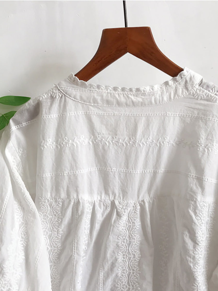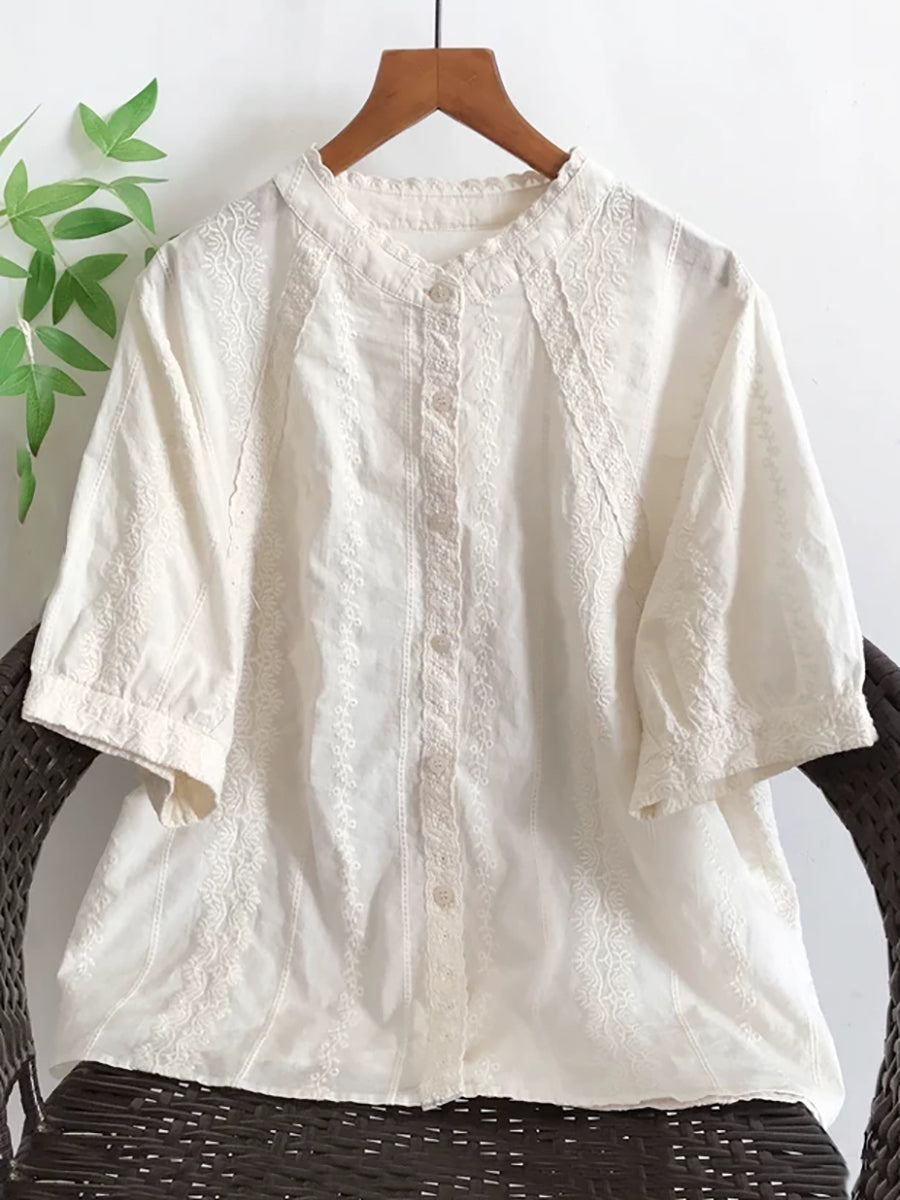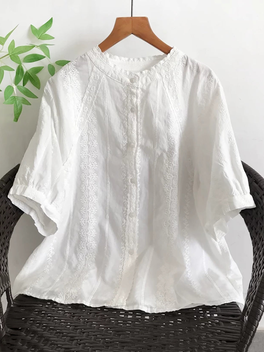 Camisa de verano para mujer con bordado artístico 100% algodón