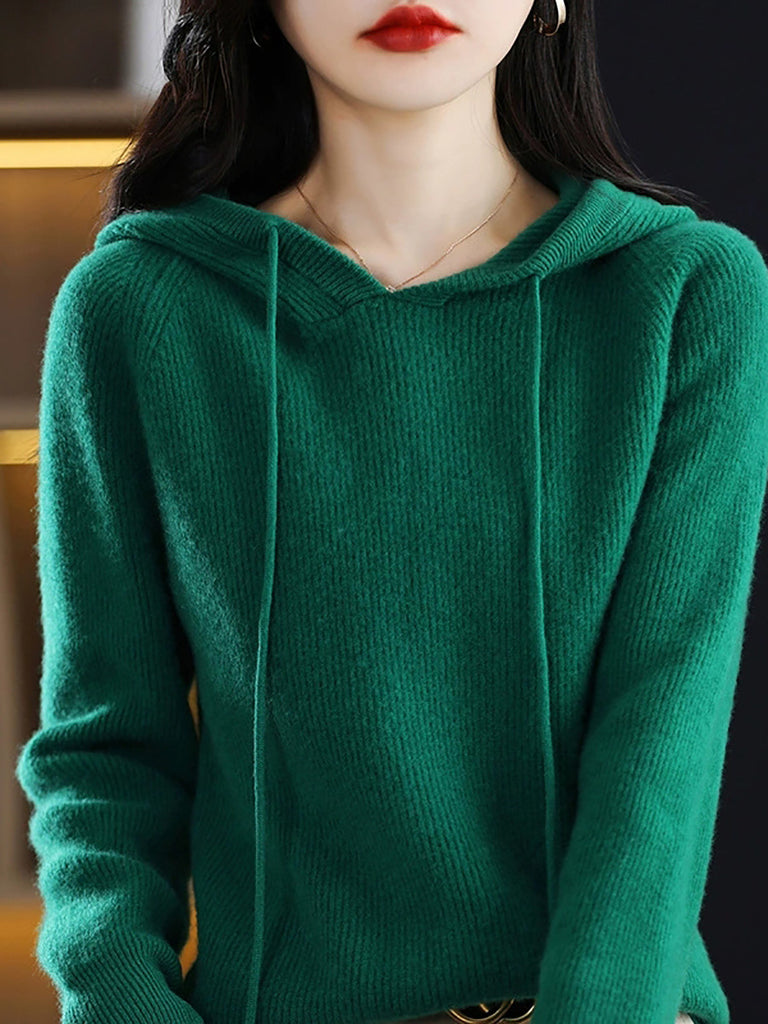 Suéter con capucha de color liso para mujer, estilo casual de otoño