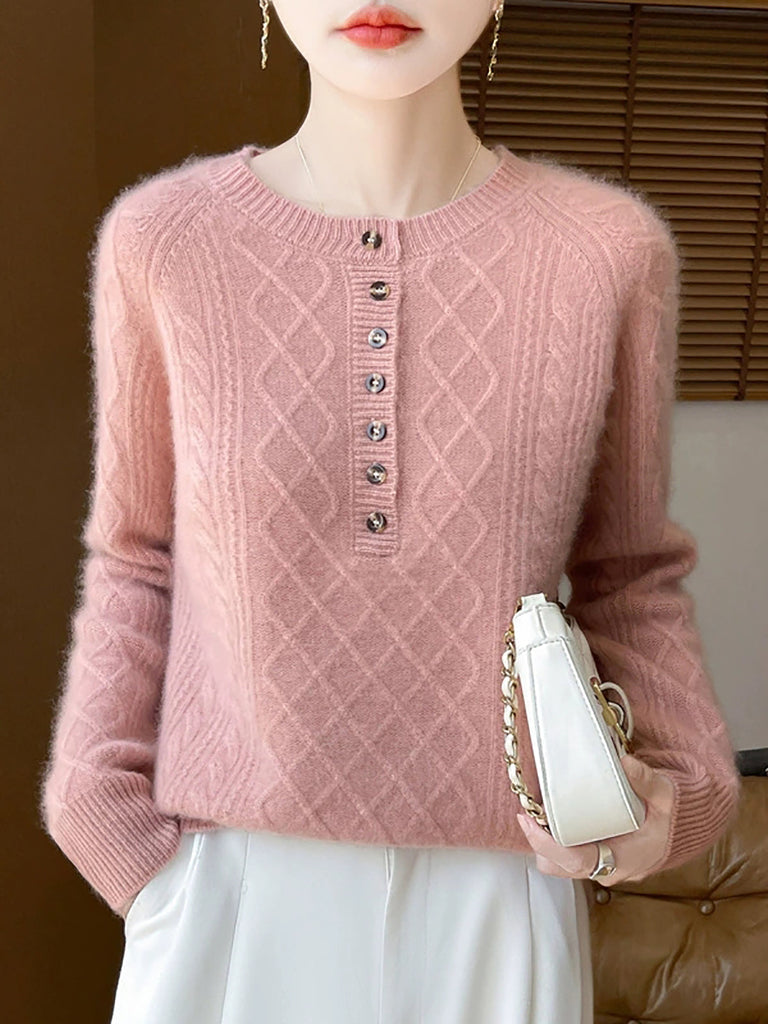 Suéter de lana con cuello redondo y romboides vintage de otoño para mujer