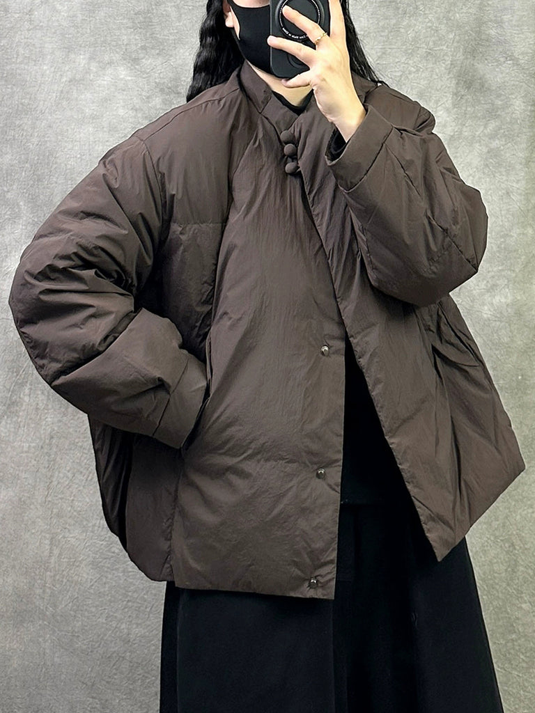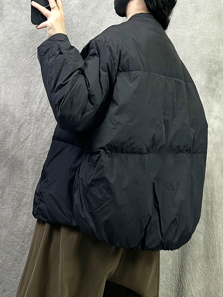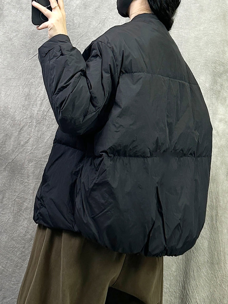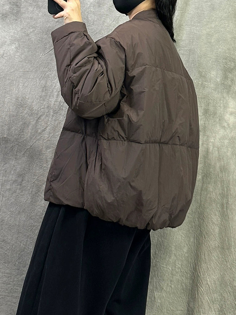 Abrigo acolchado informal de invierno para mujer, de color liso y cuello alto.