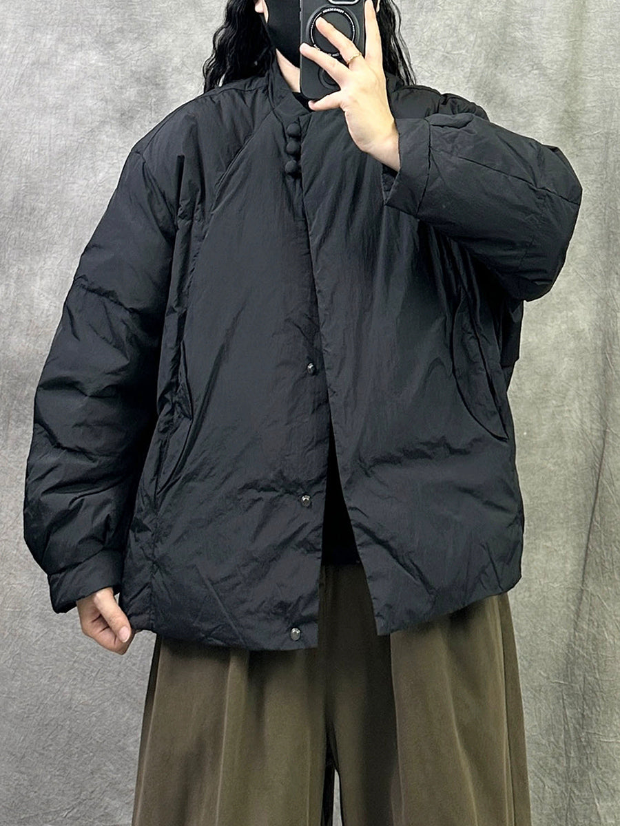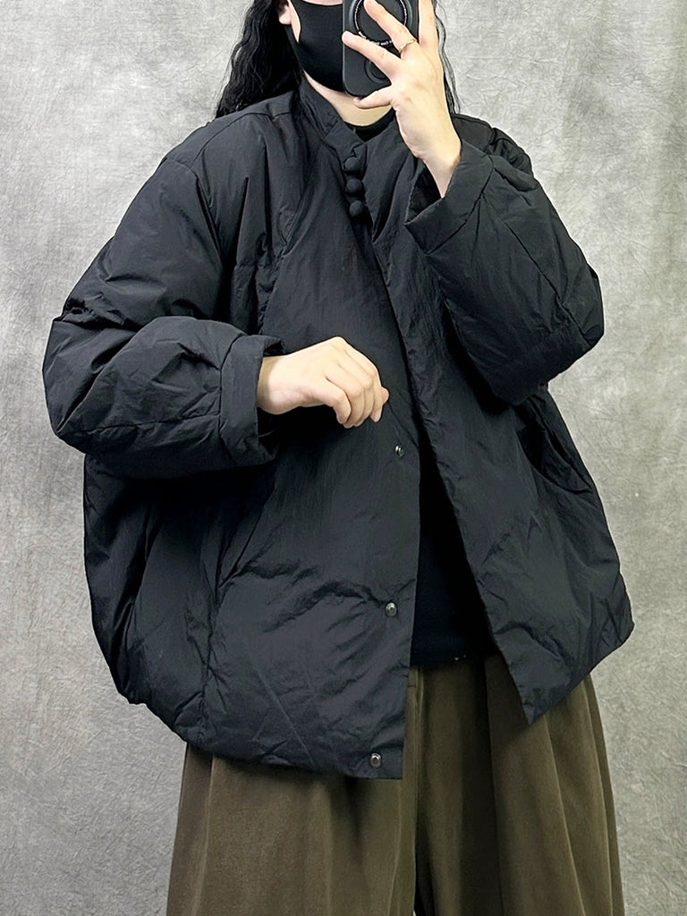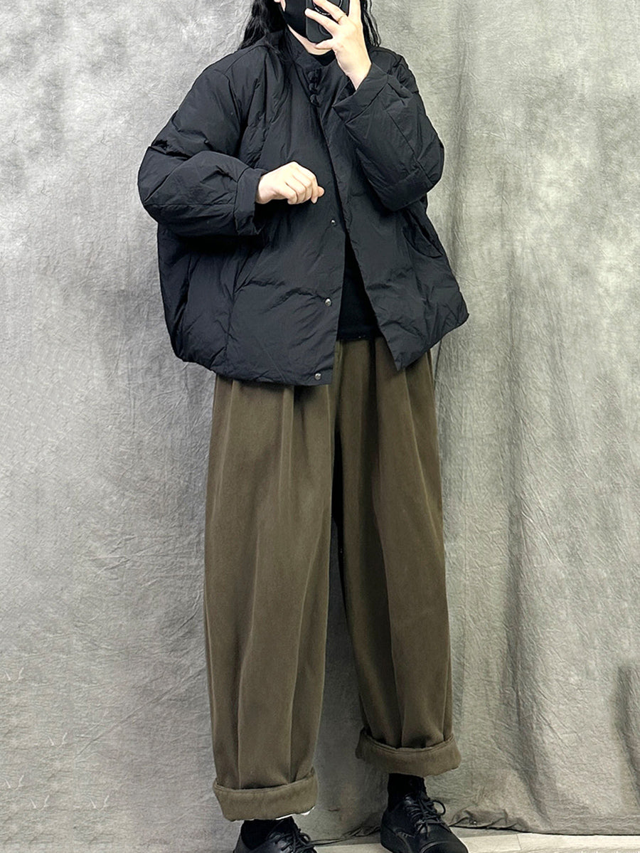 Abrigo acolchado informal de invierno para mujer, de color liso y cuello alto.